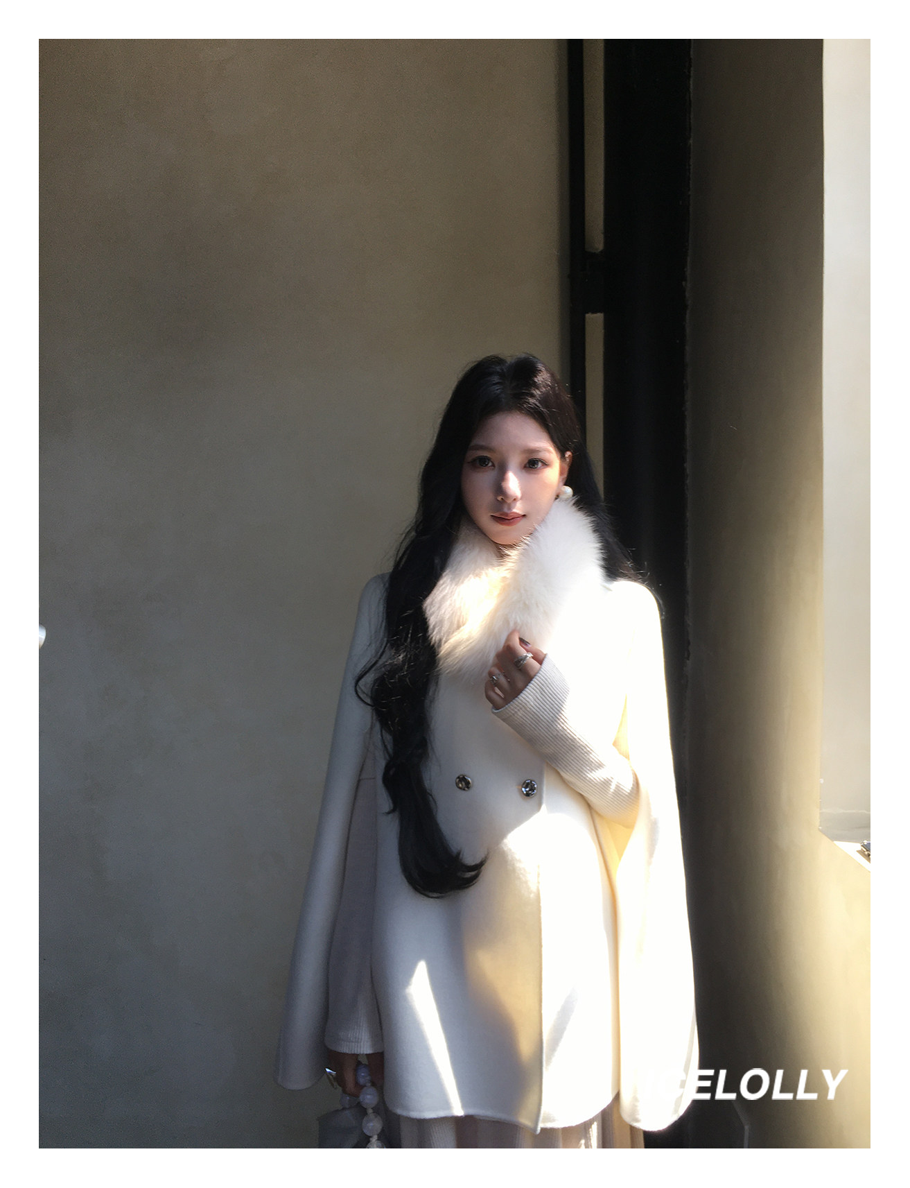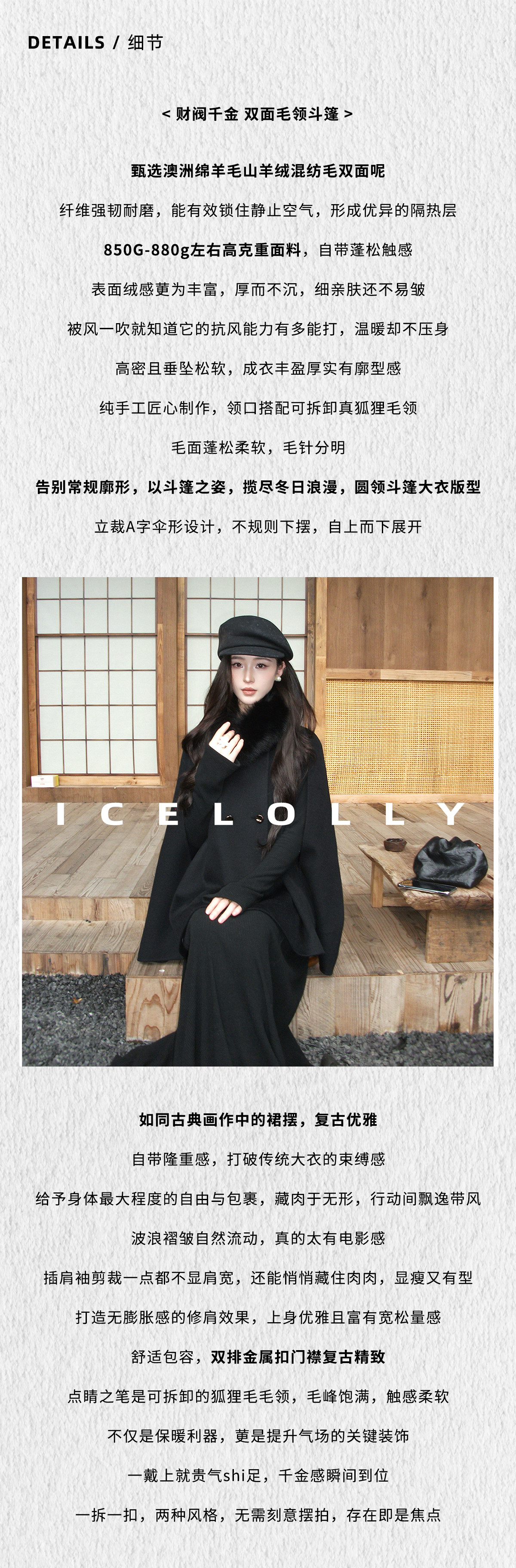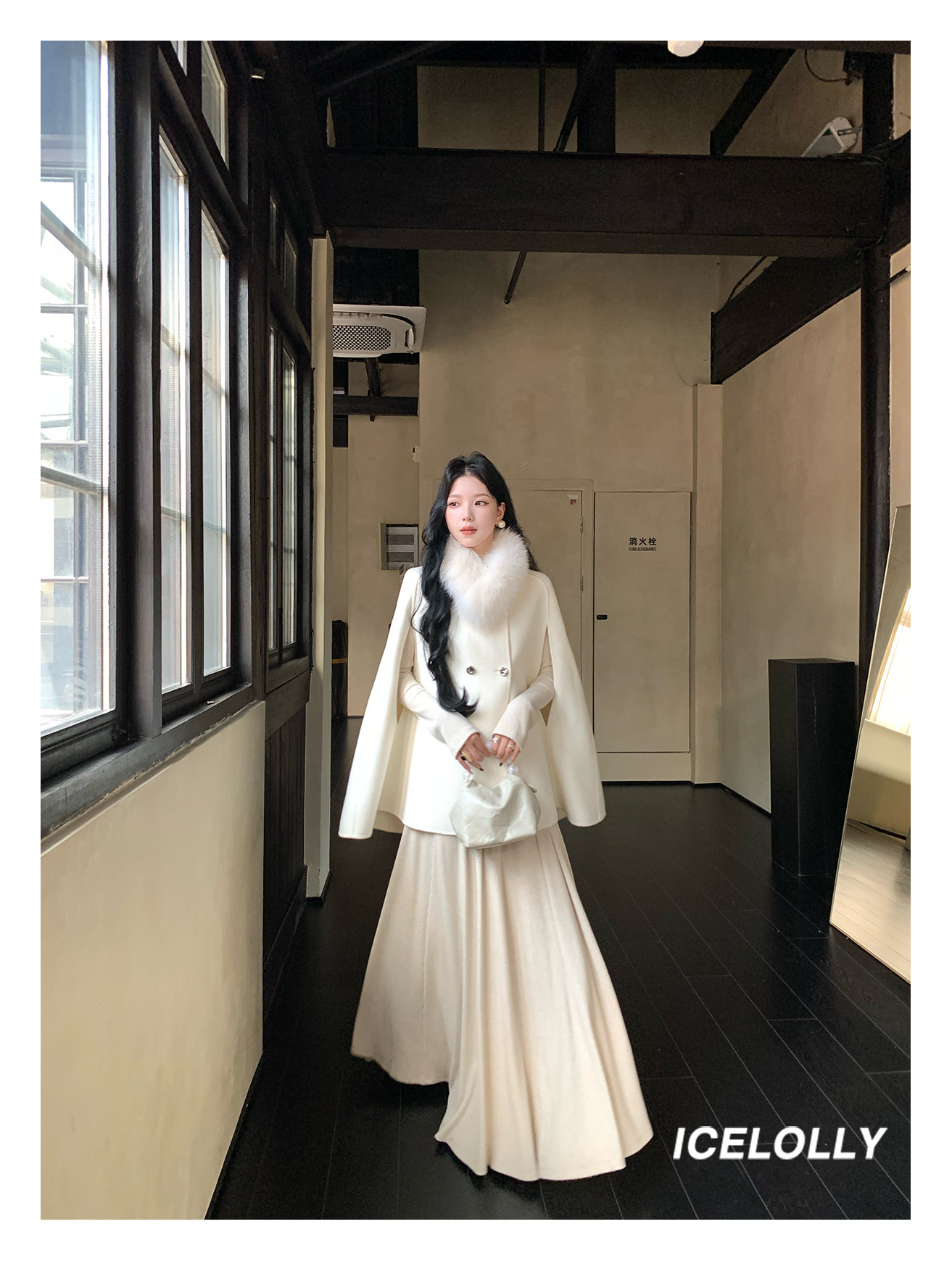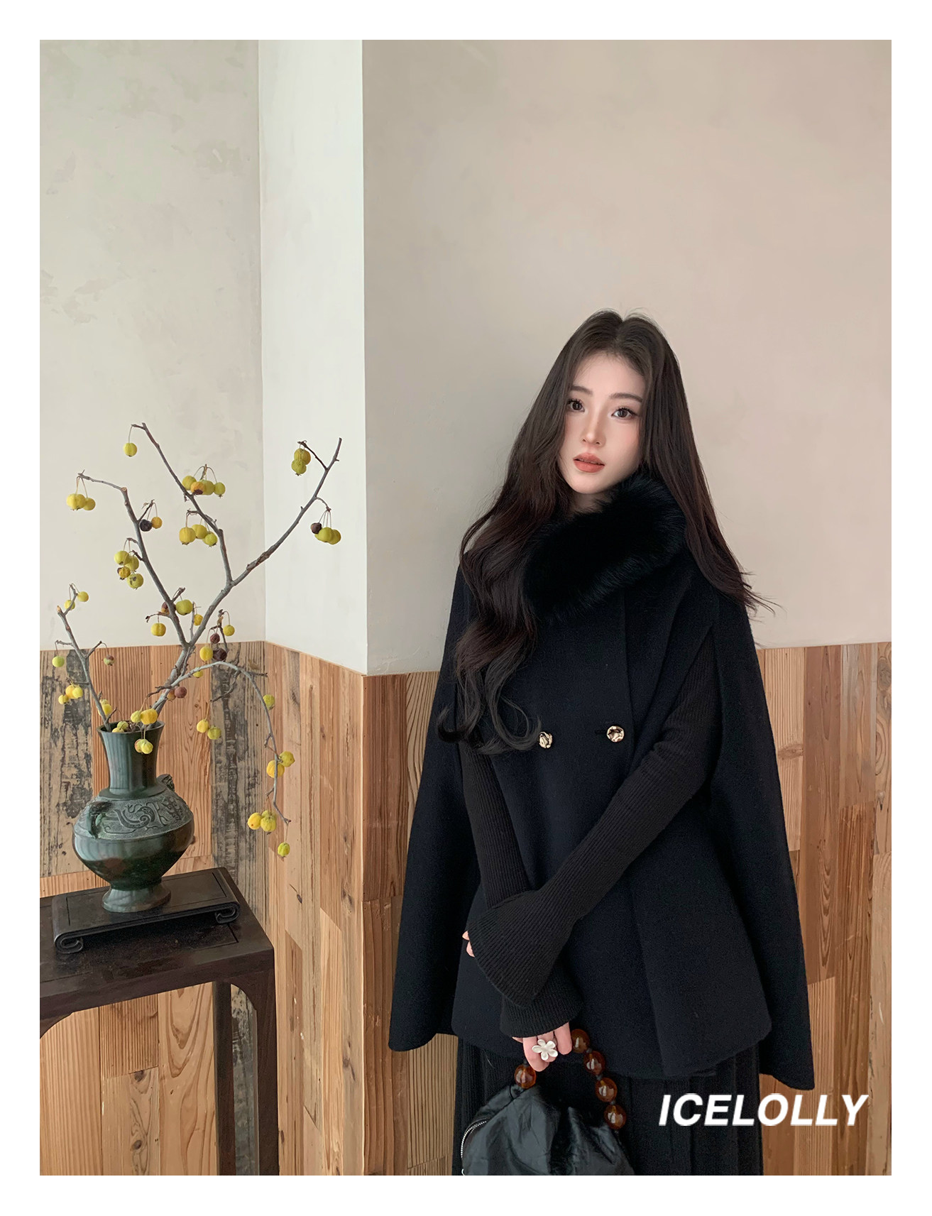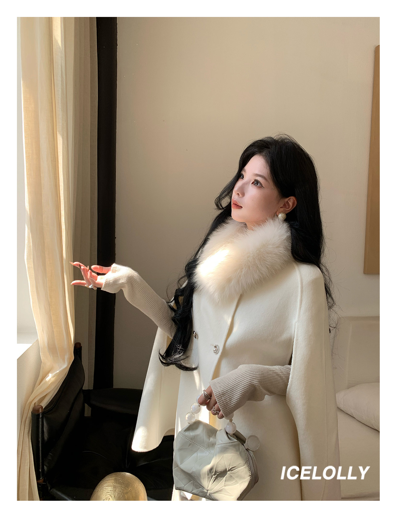 Icelolly Wool Double-Sided Woolen Cape Coat for Women 2025 New Autumn and Winter Fox Fur Collar Short Woolen Coat