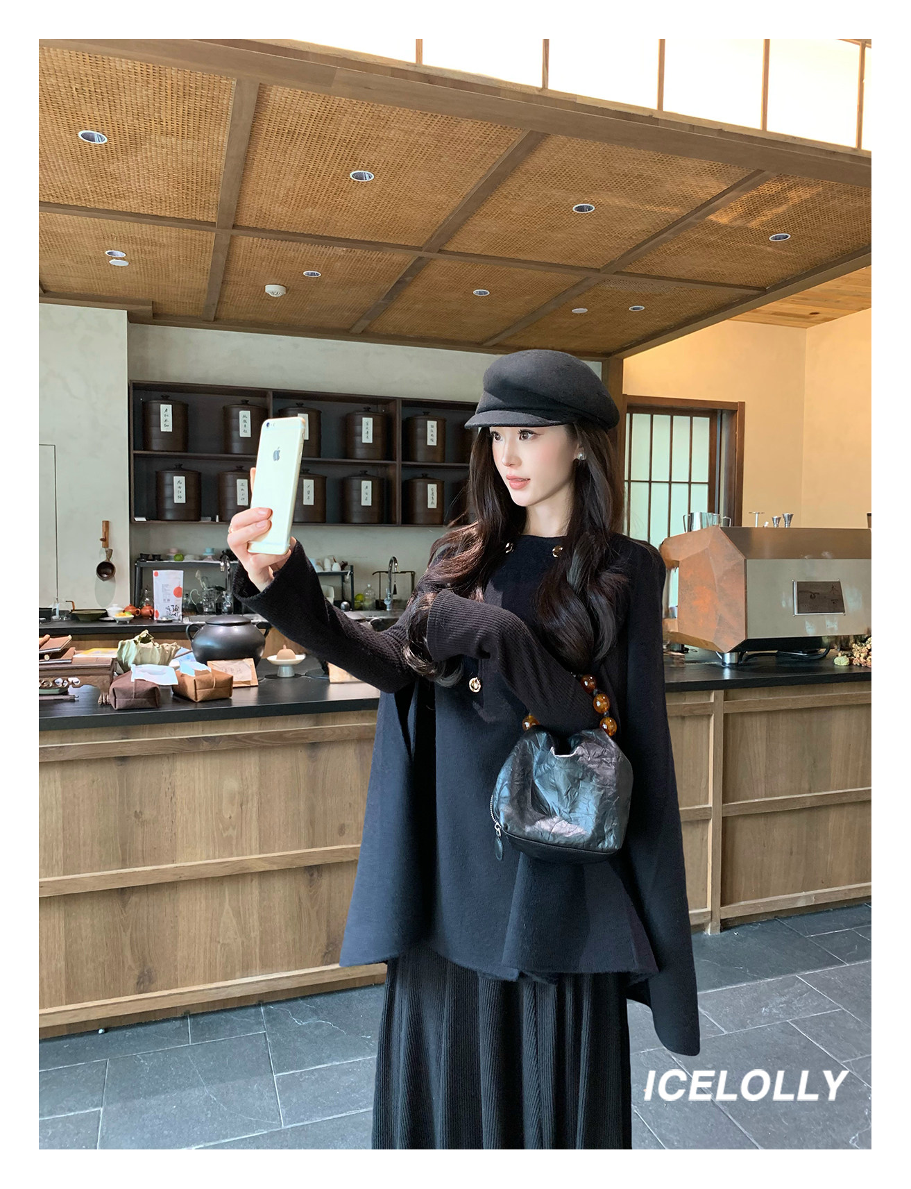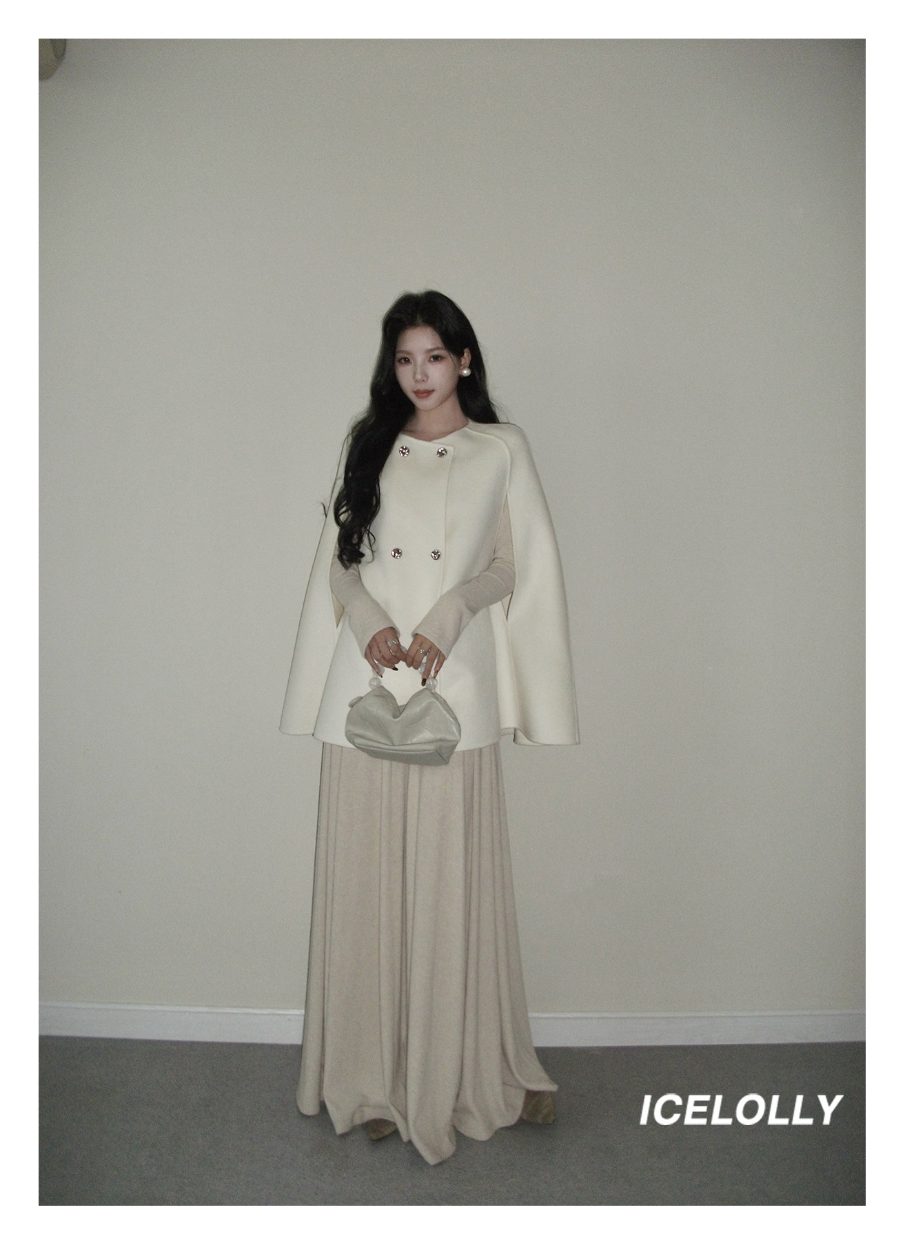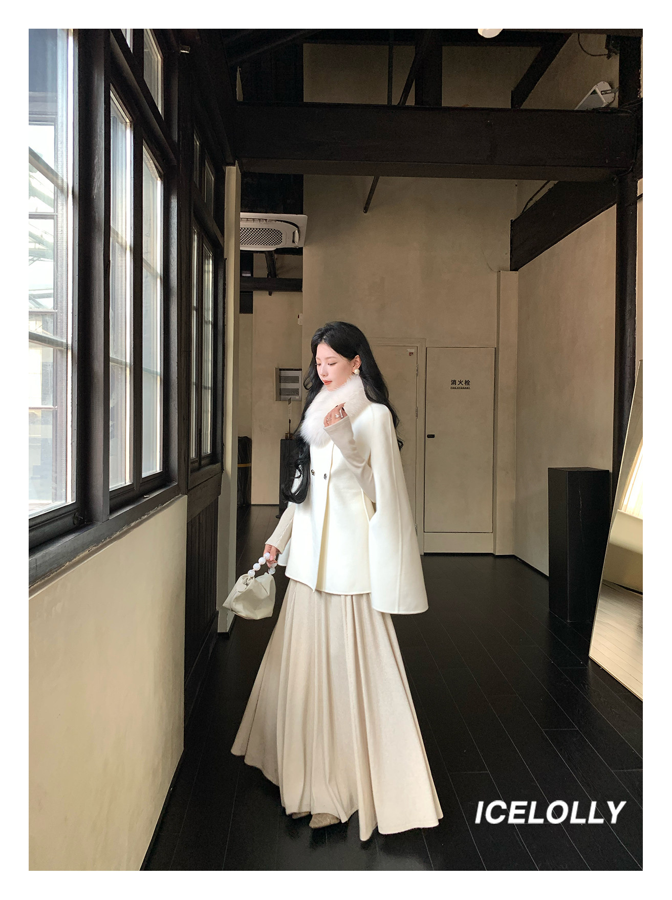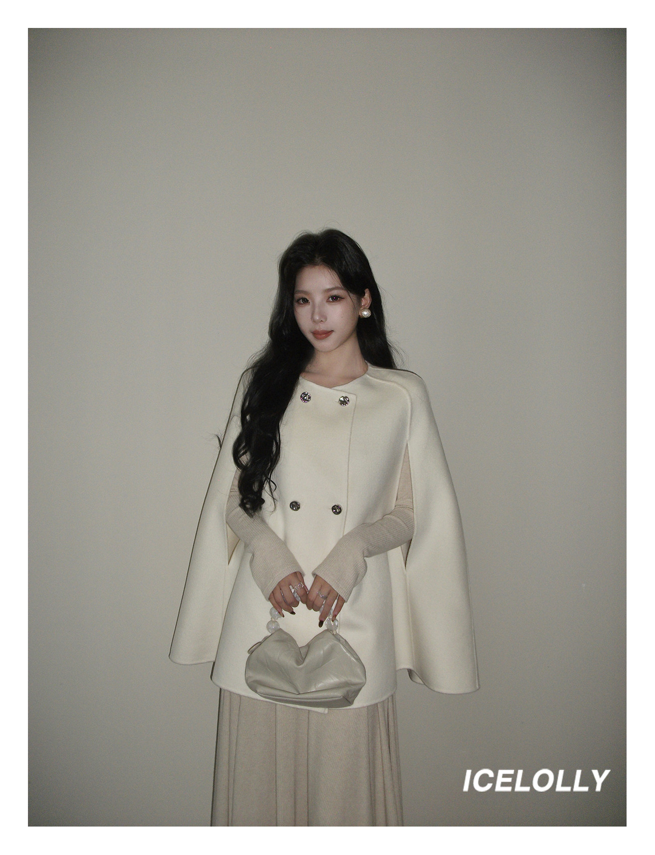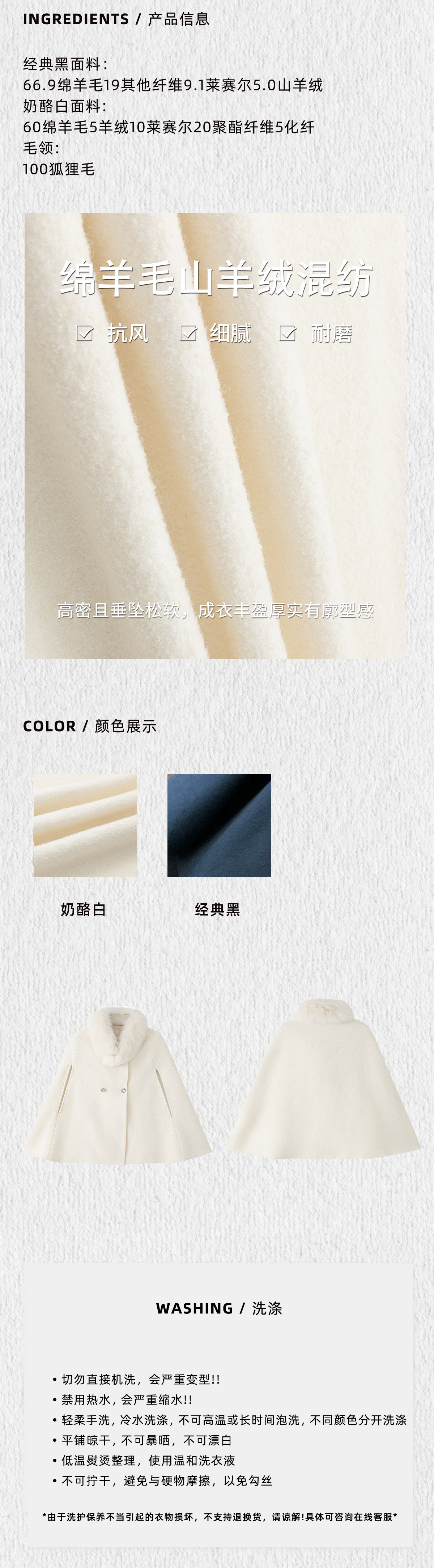 Icelolly Wool Double-Sided Woolen Cape Coat for Women 2025 New Autumn and Winter Fox Fur Collar Short Woolen Coat