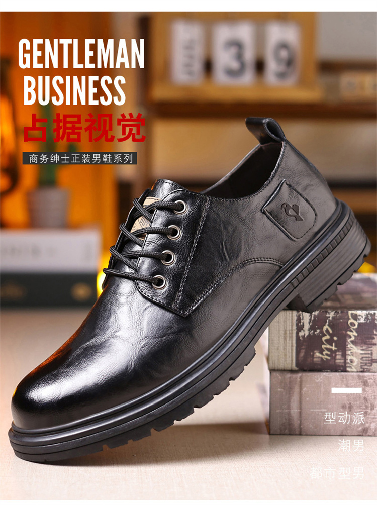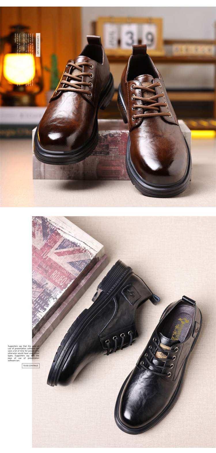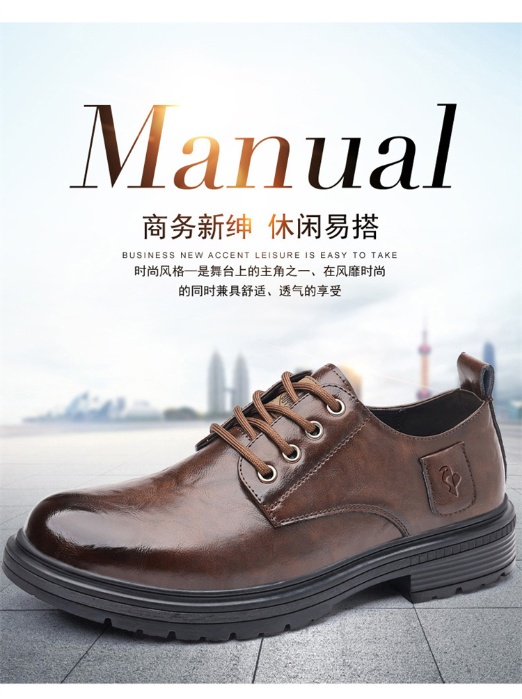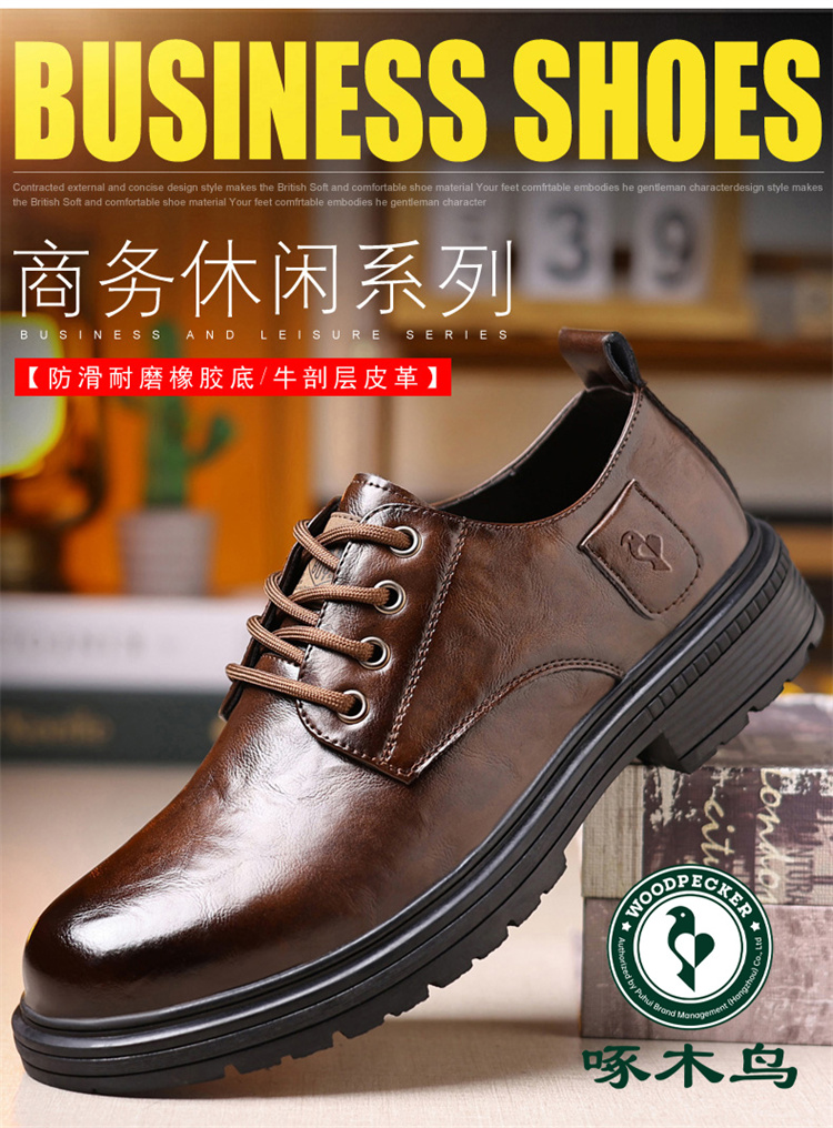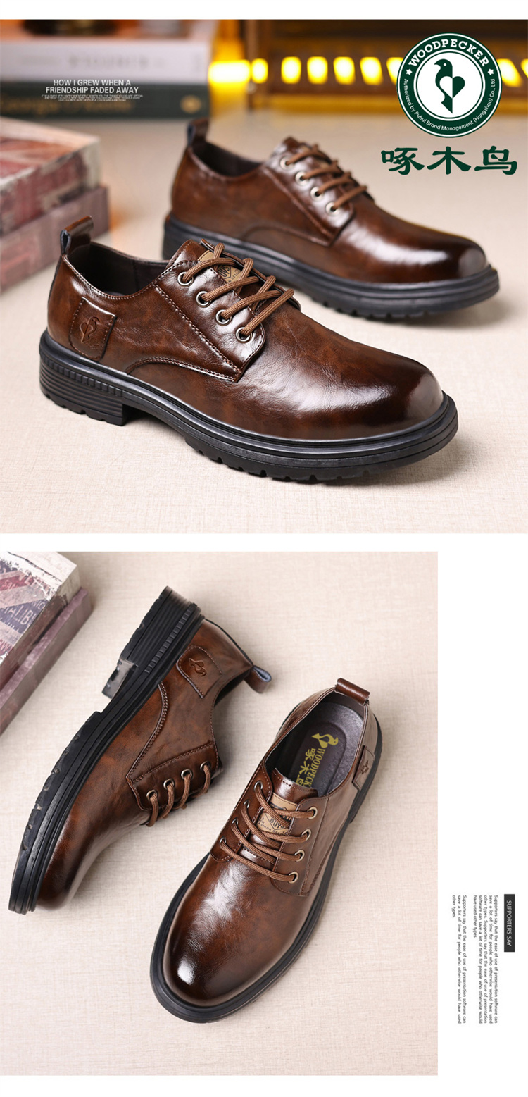 Woodpecker leather shoes men's autumn genuine leather breathable business casual shoes Thick Sole increased Low Ankle Men parka shoes tide