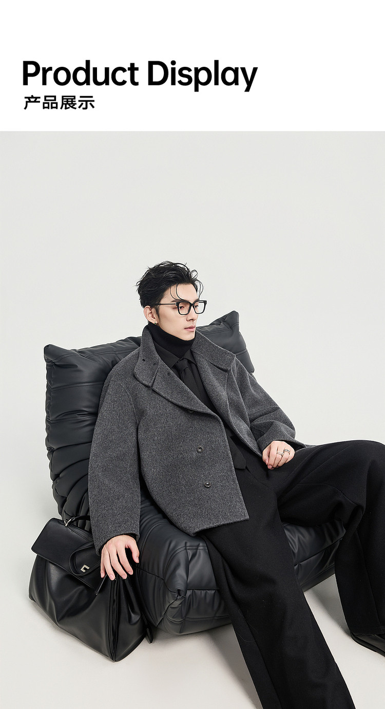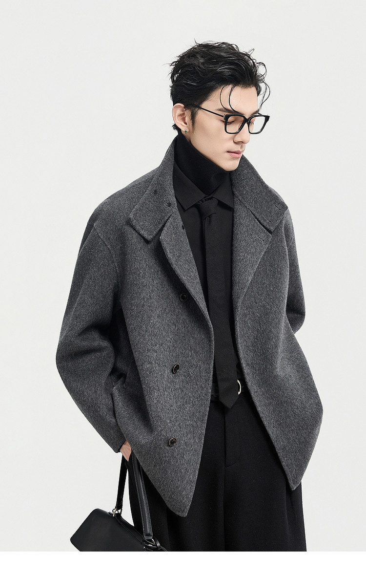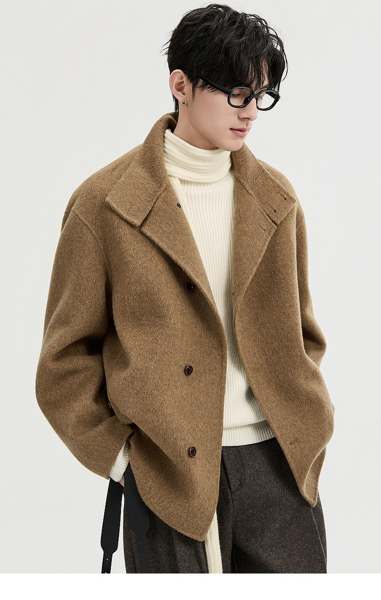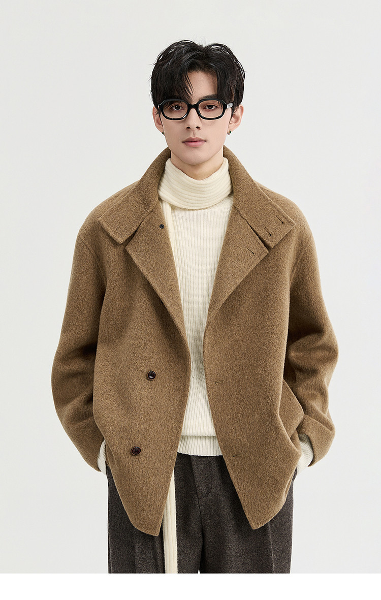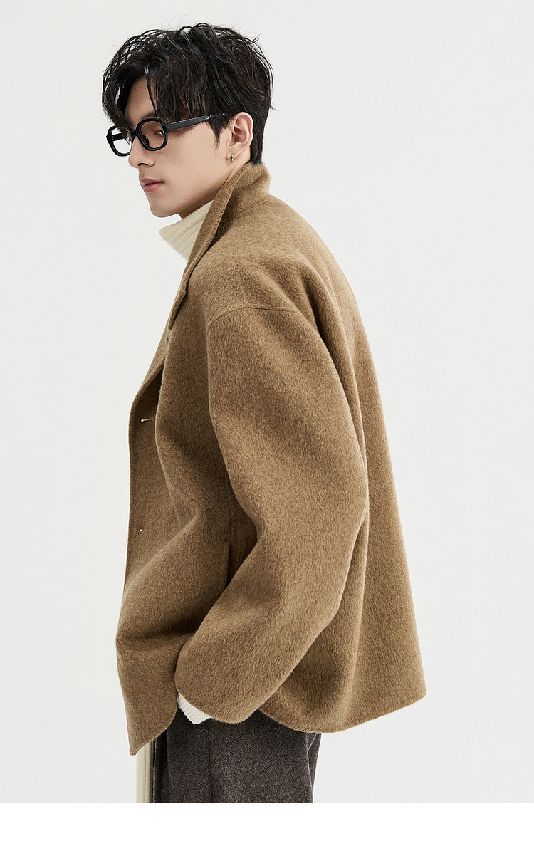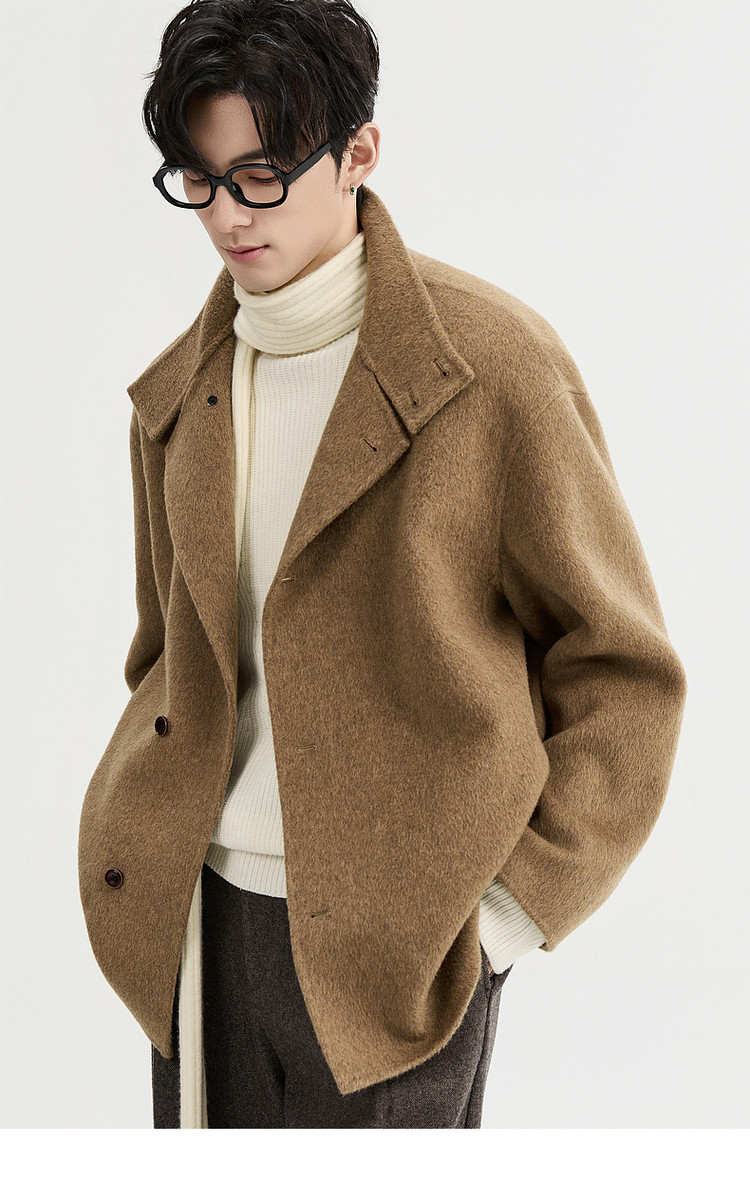 All-Wool Goose down Lining, Stand-Up Collar Design, 25 Winter Double-Sided Woolen Coat, Men's Short Coat