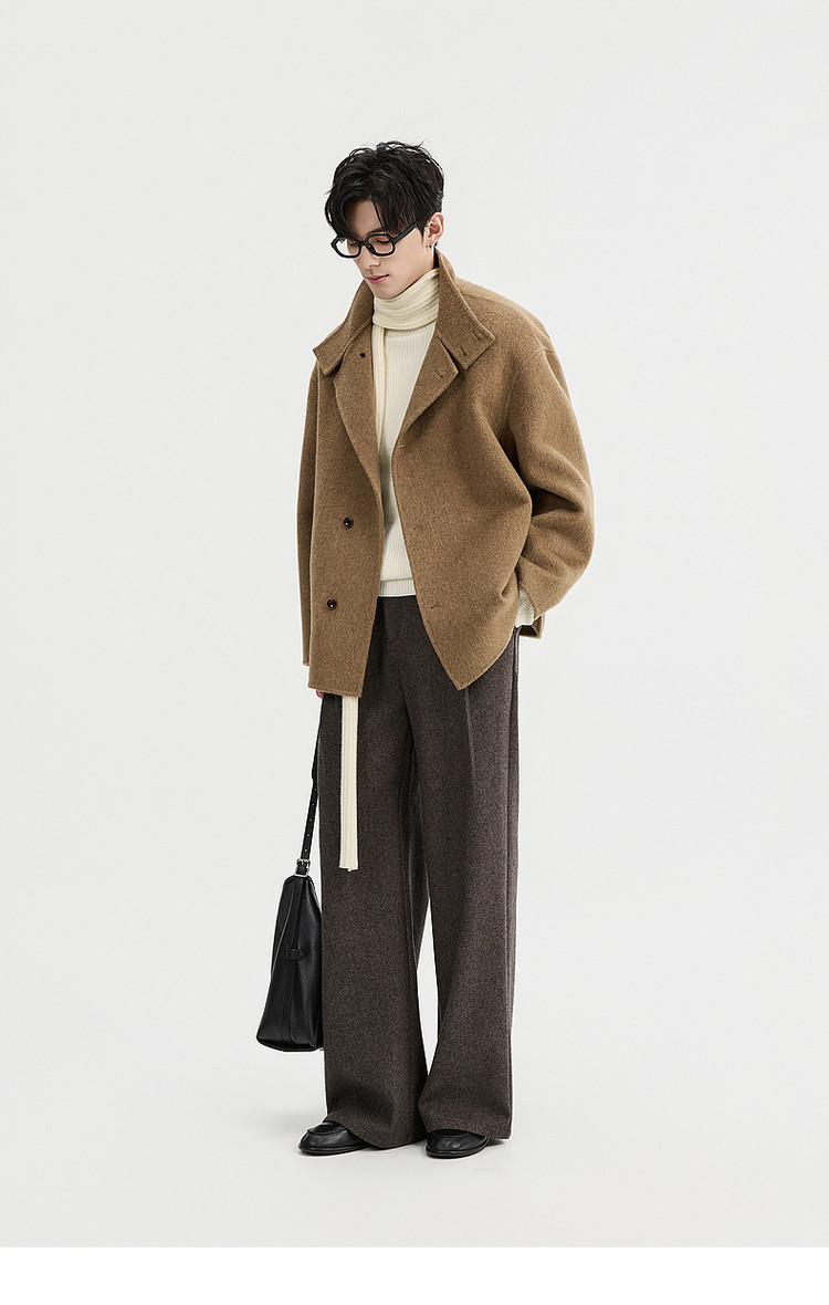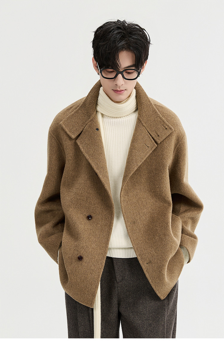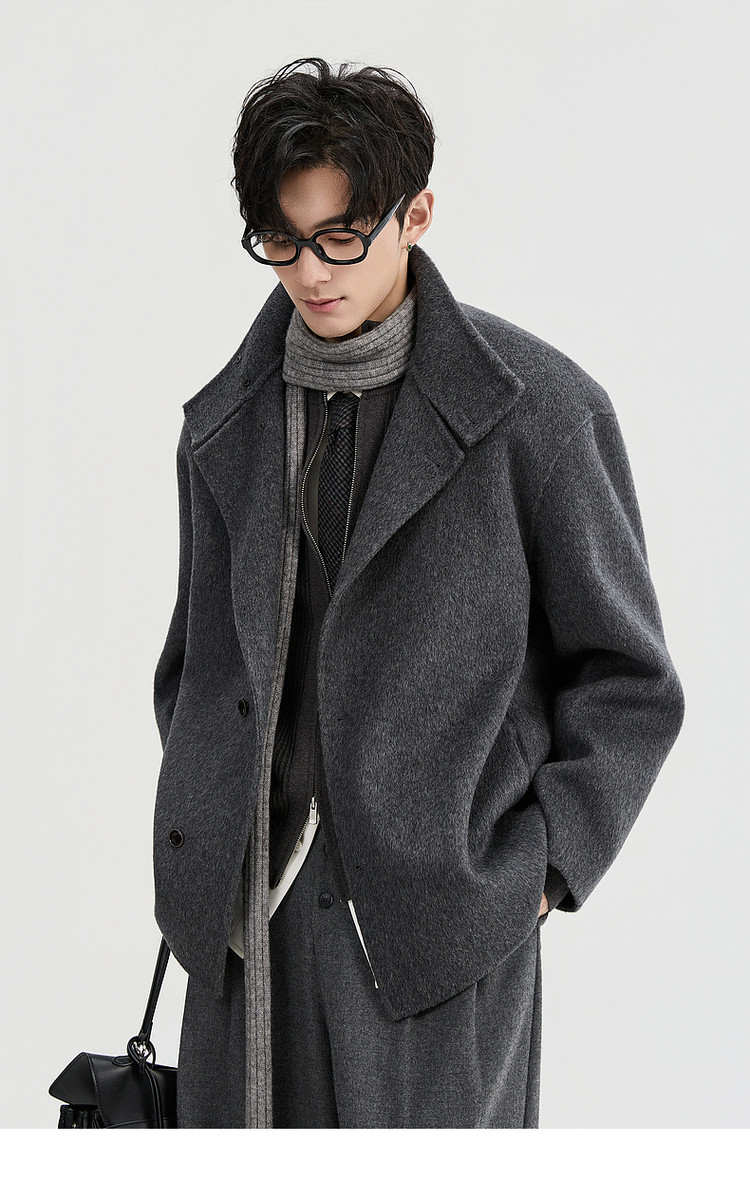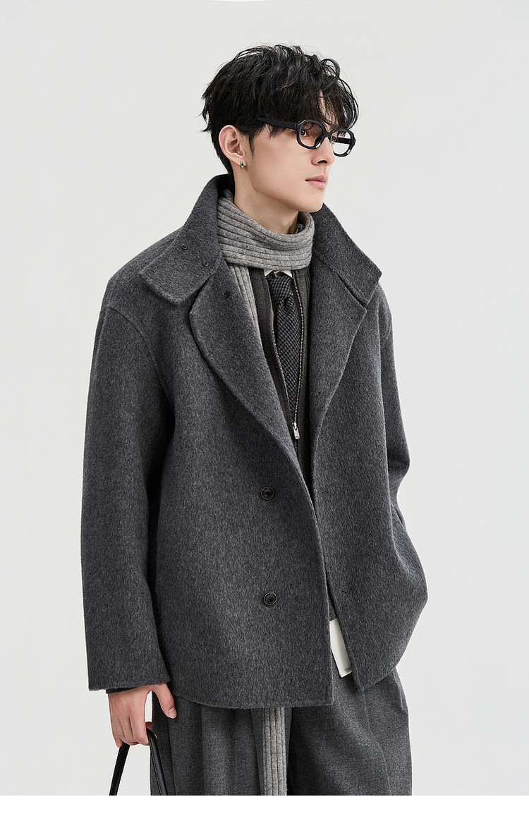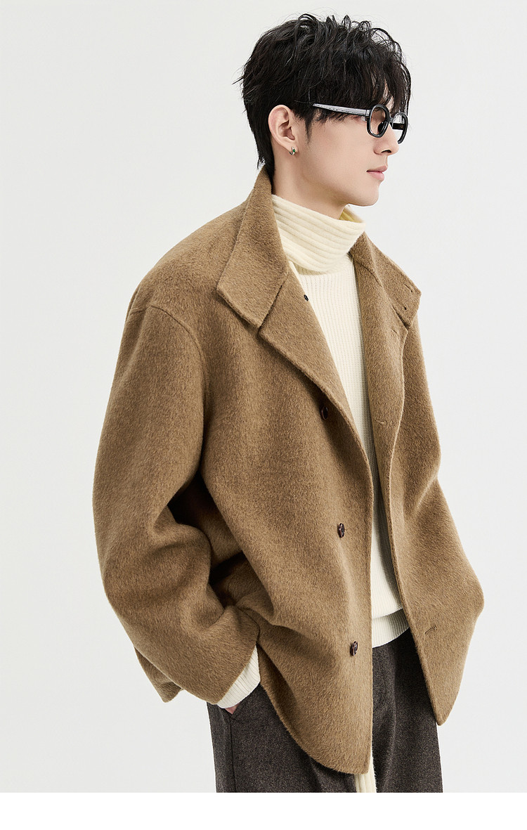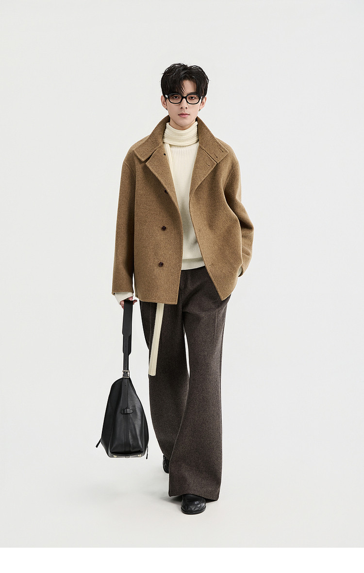 All-Wool Goose down Lining, Stand-Up Collar Design, 25 Winter Double-Sided Woolen Coat, Men's Short Coat