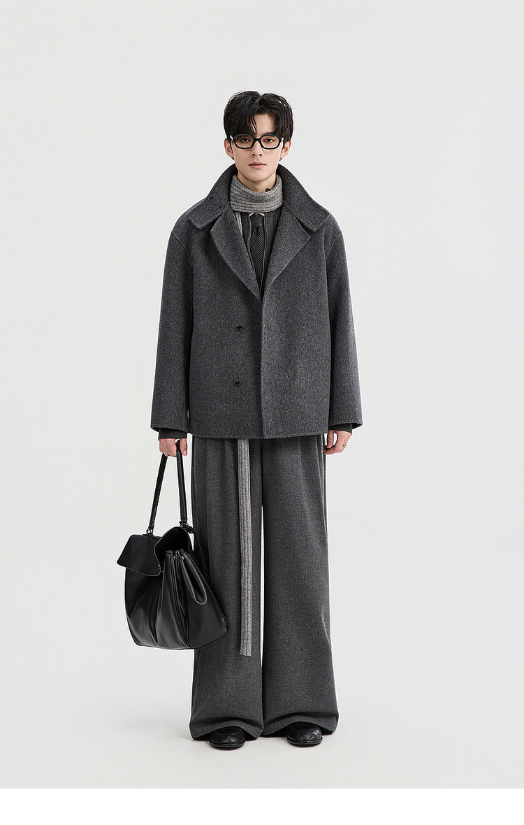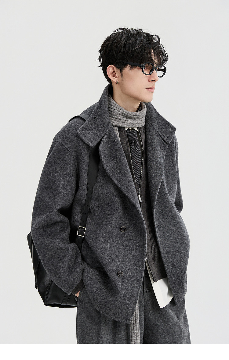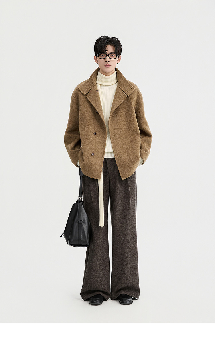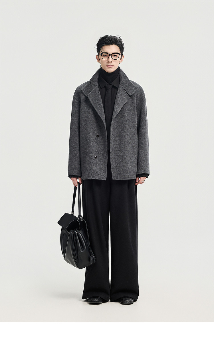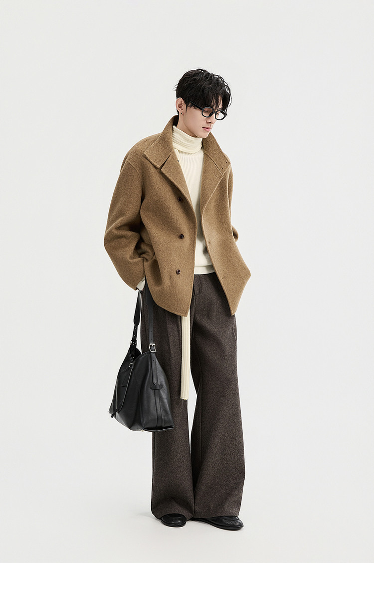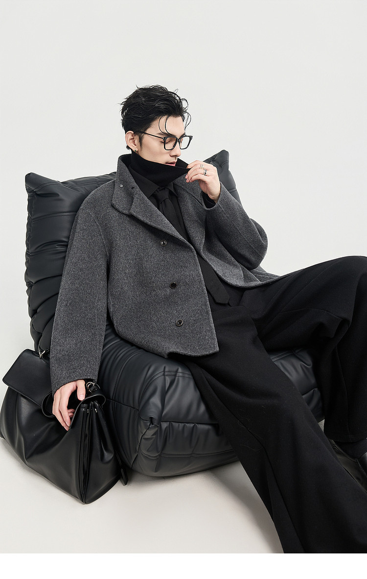 All-Wool Goose down Lining, Stand-Up Collar Design, 25 Winter Double-Sided Woolen Coat, Men's Short Coat