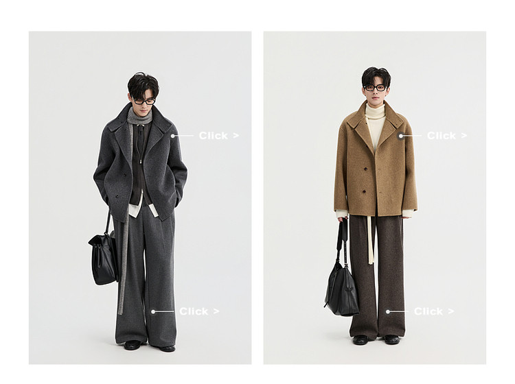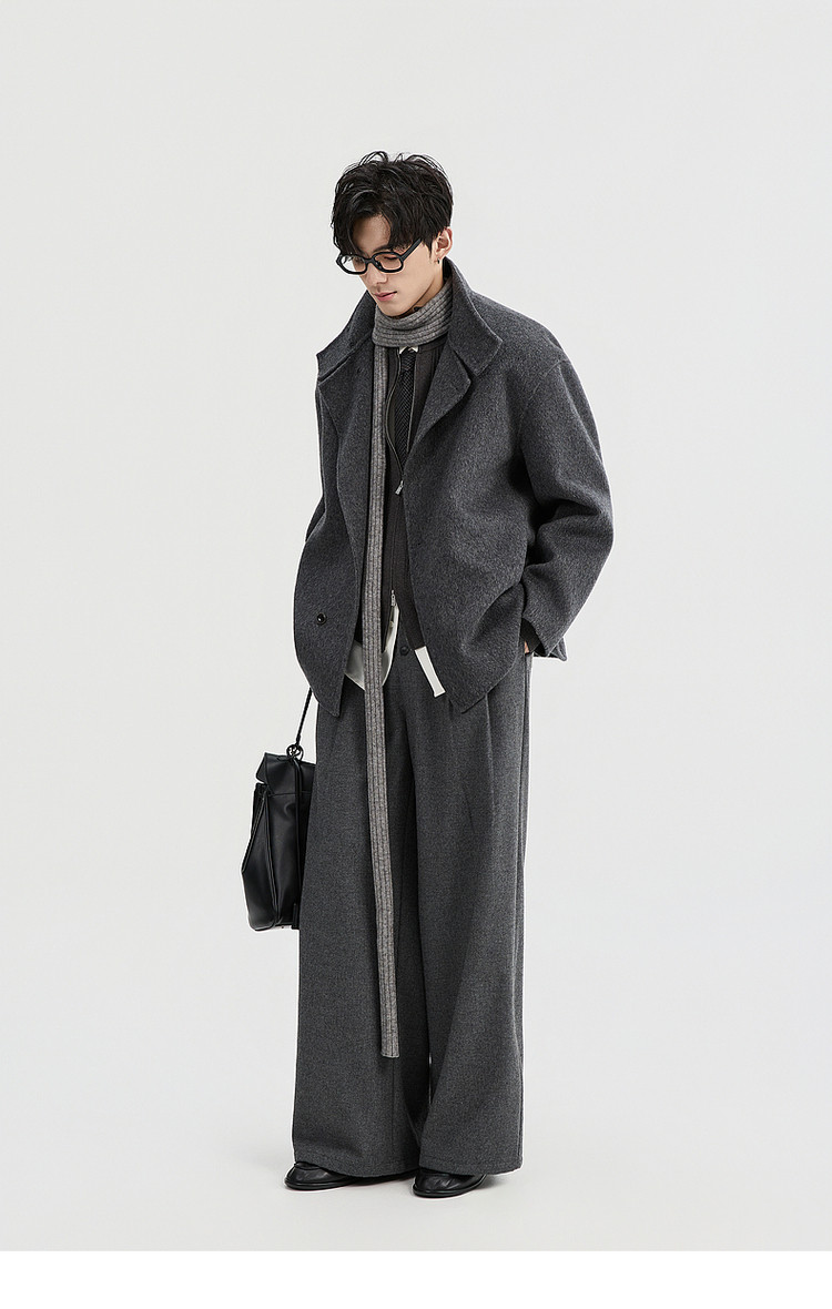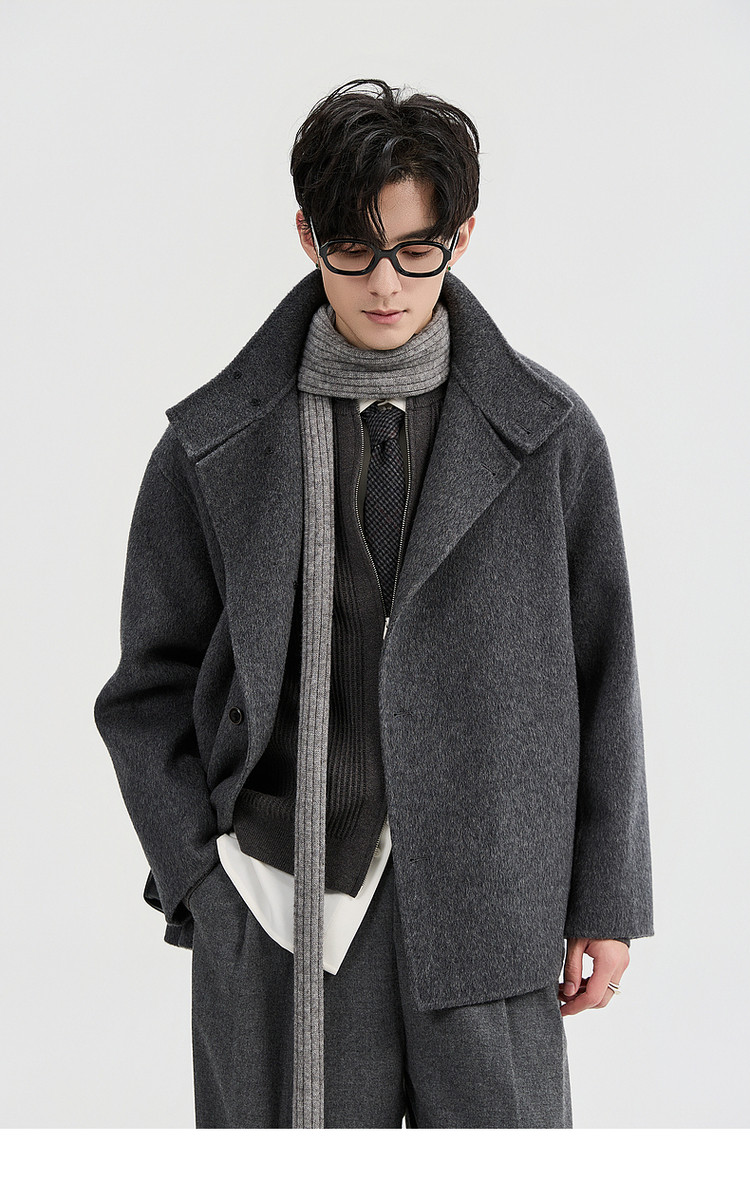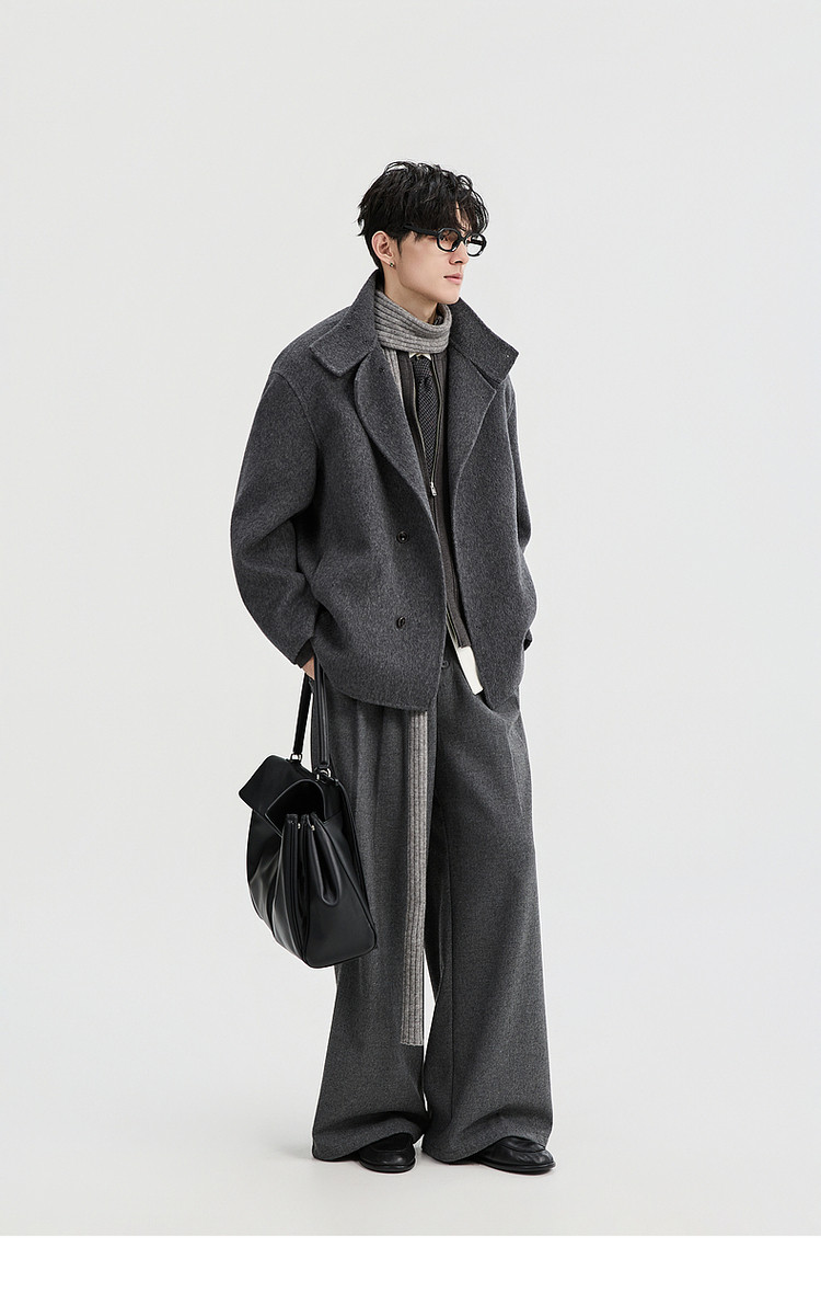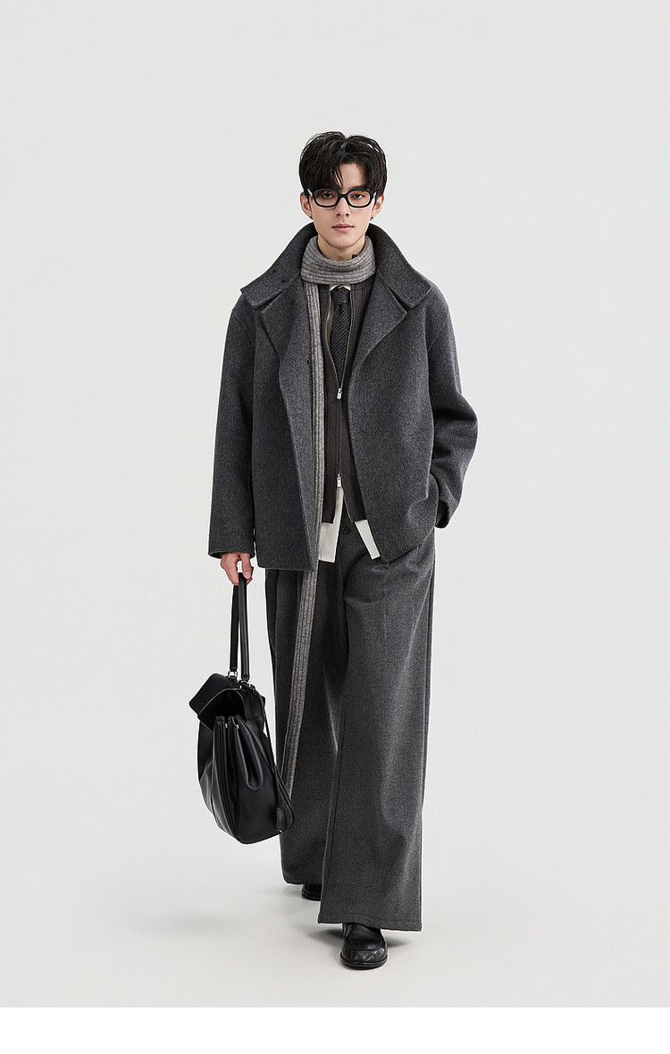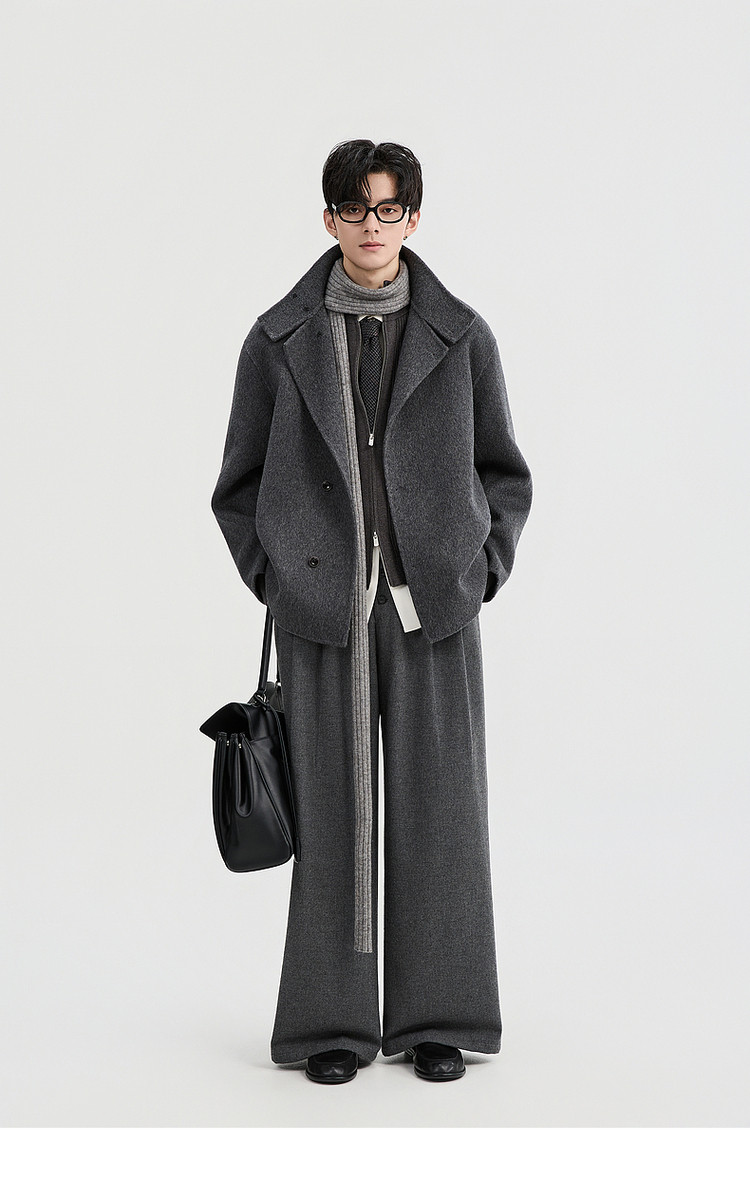 All-Wool Goose down Lining, Stand-Up Collar Design, 25 Winter Double-Sided Woolen Coat, Men's Short Coat