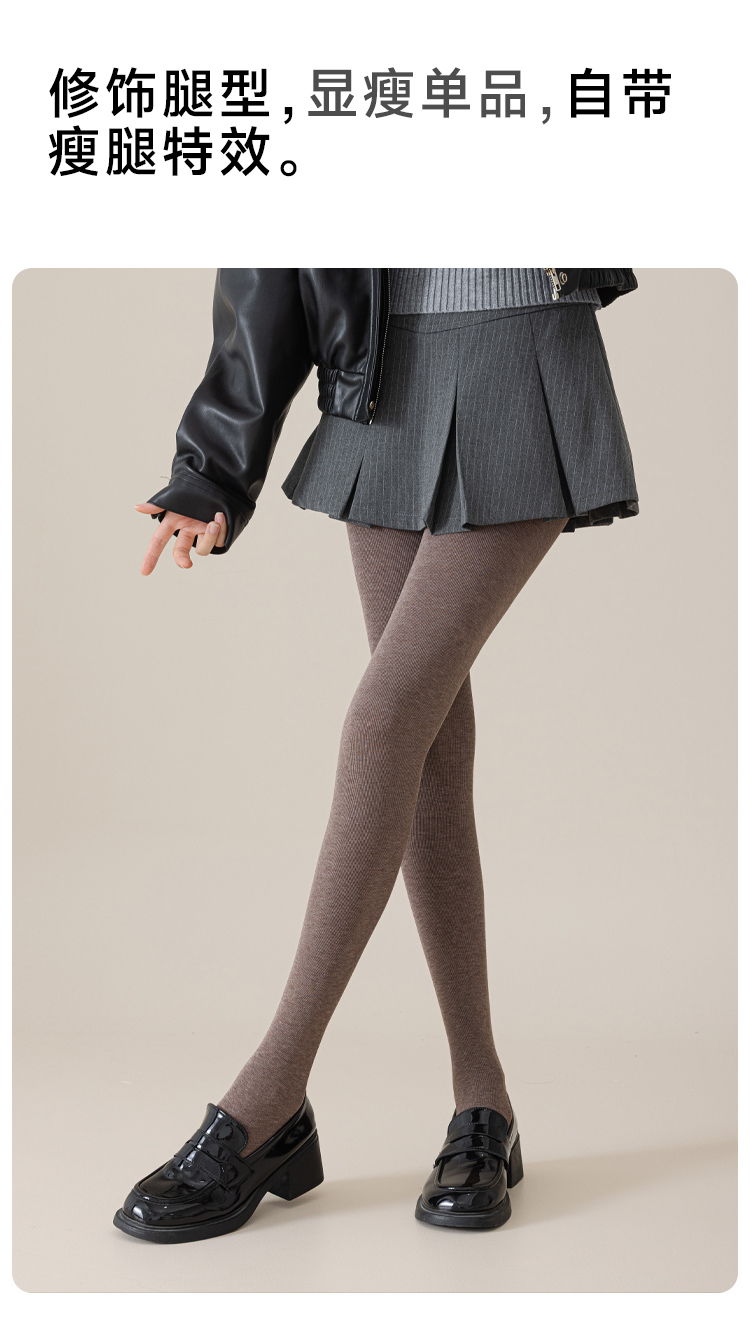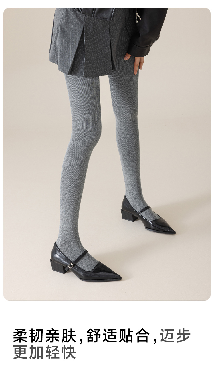 Catman Gray Wool Leggings for Women, Autumn Outerwear, Pantyhose with Pressure for Slimming, Non-Slip, Fleece-Lined Footed Leggings for Winter