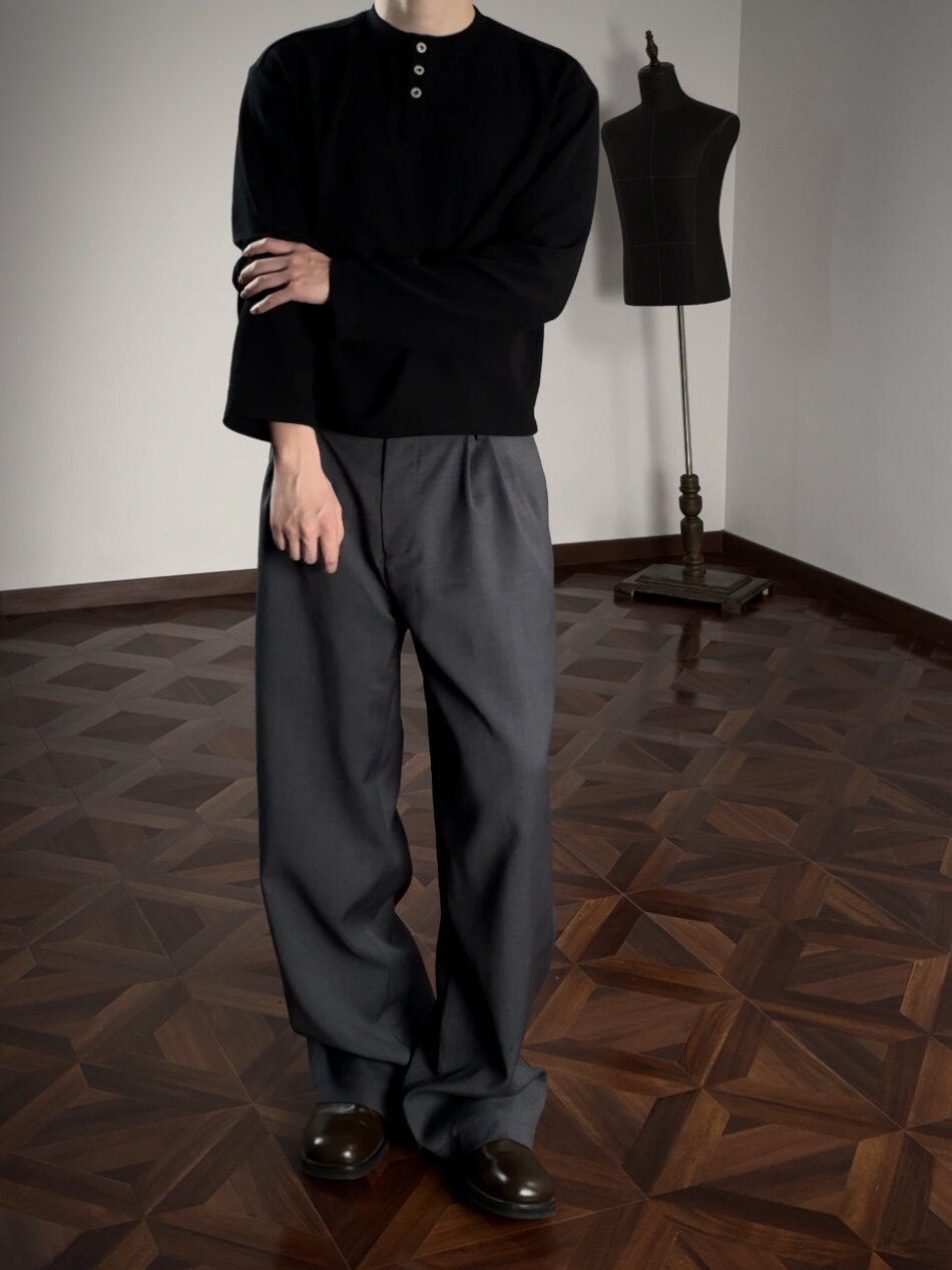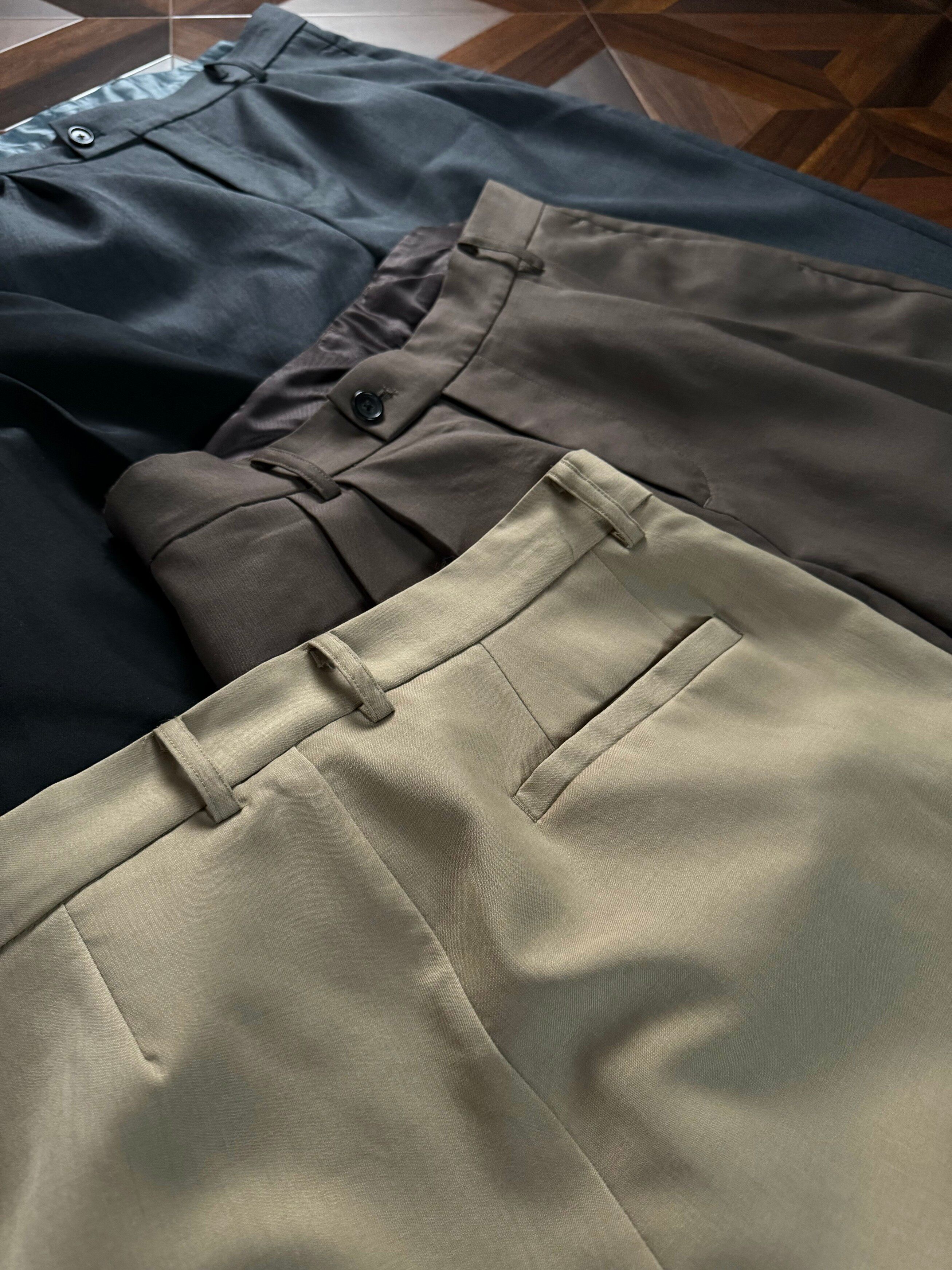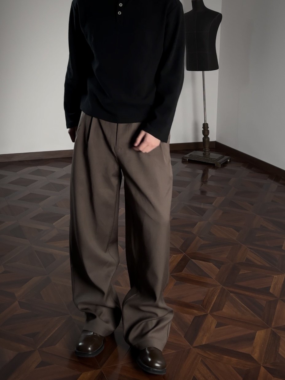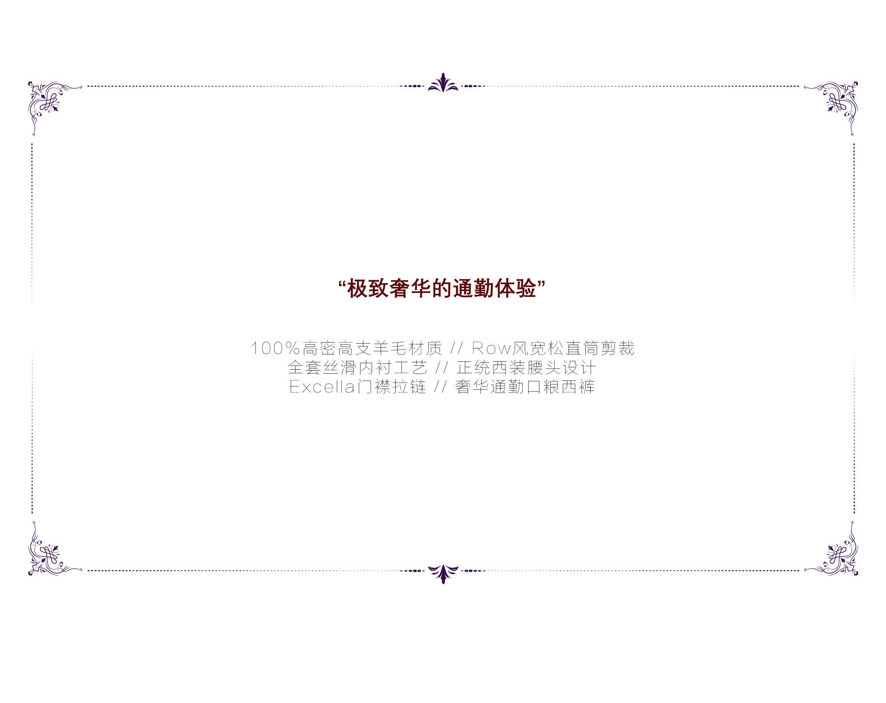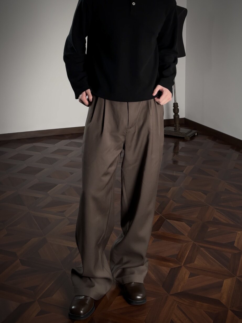 Oclin 100% Wool Luxurious Full Lining Straight-Leg Loose Fit Trousers Row Style Purple Label Series