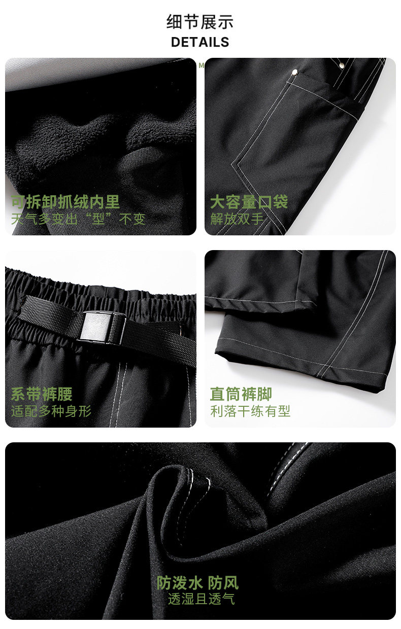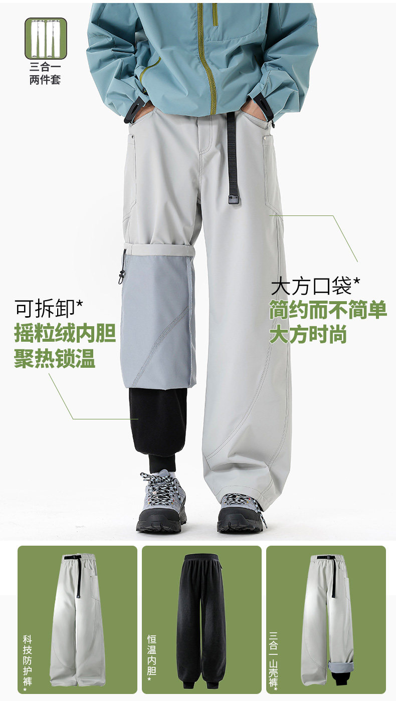 Wassup Cmkpo Men's Winter Fleece-Lined Thickened Windproof and Waterproof Outdoor Three-In-One Hiking Cargo Pants