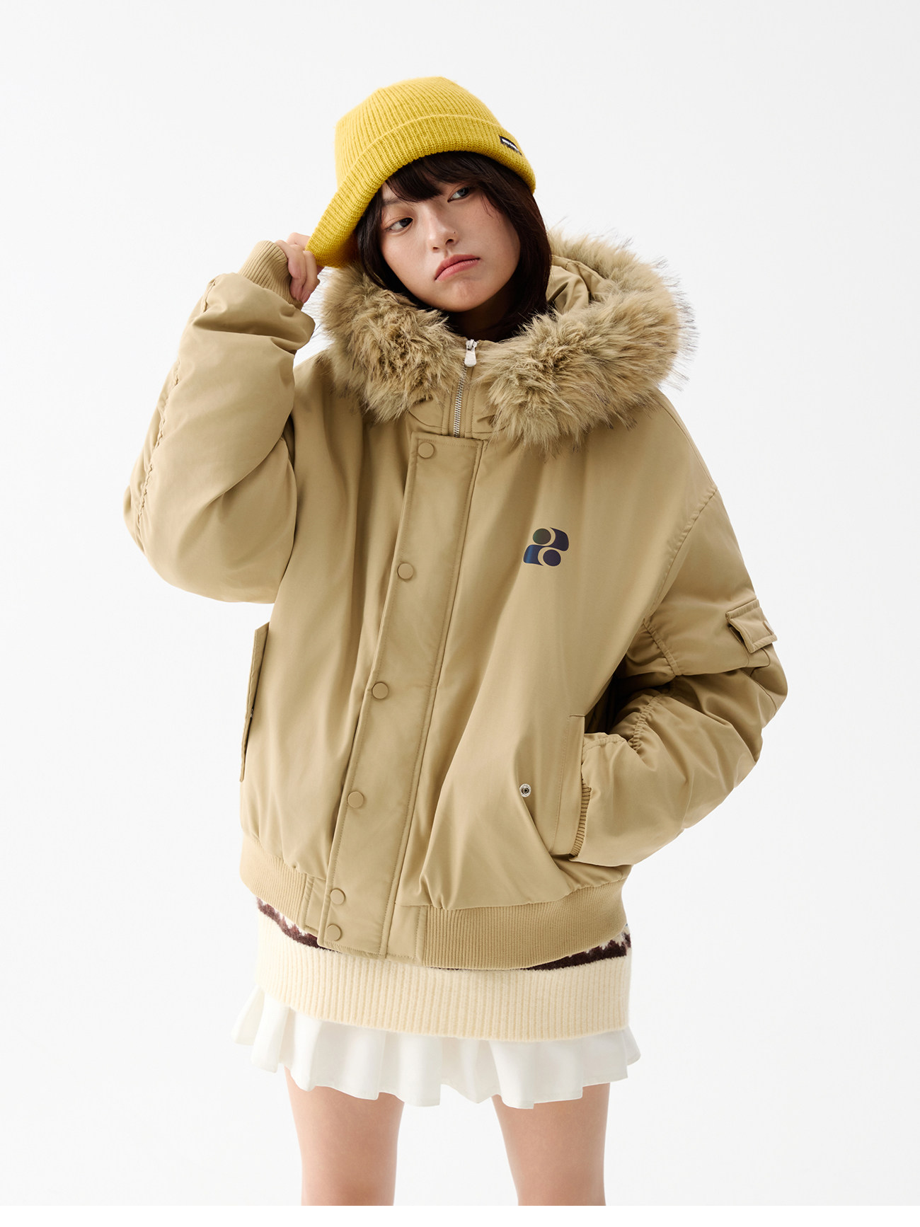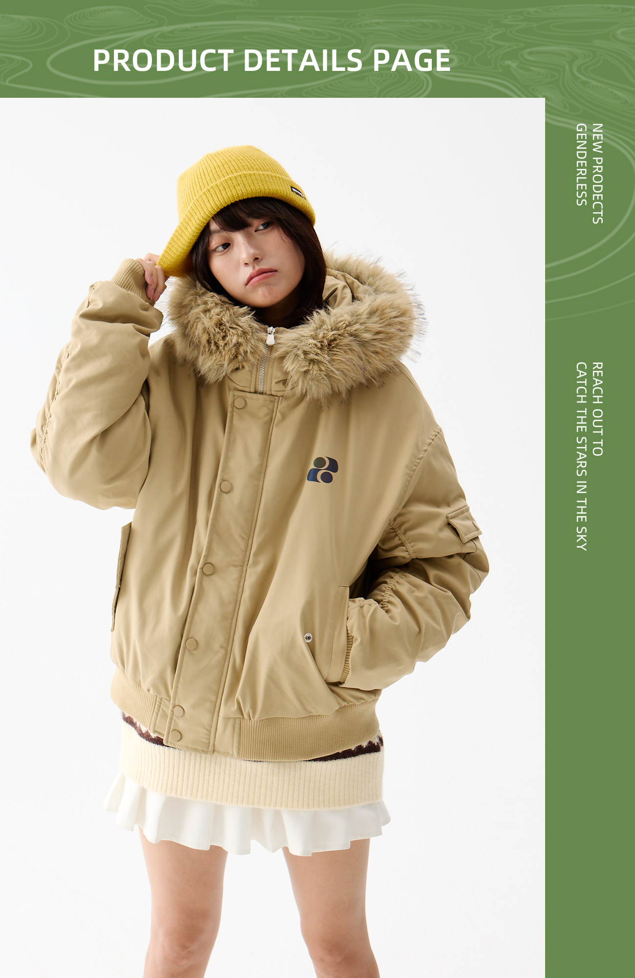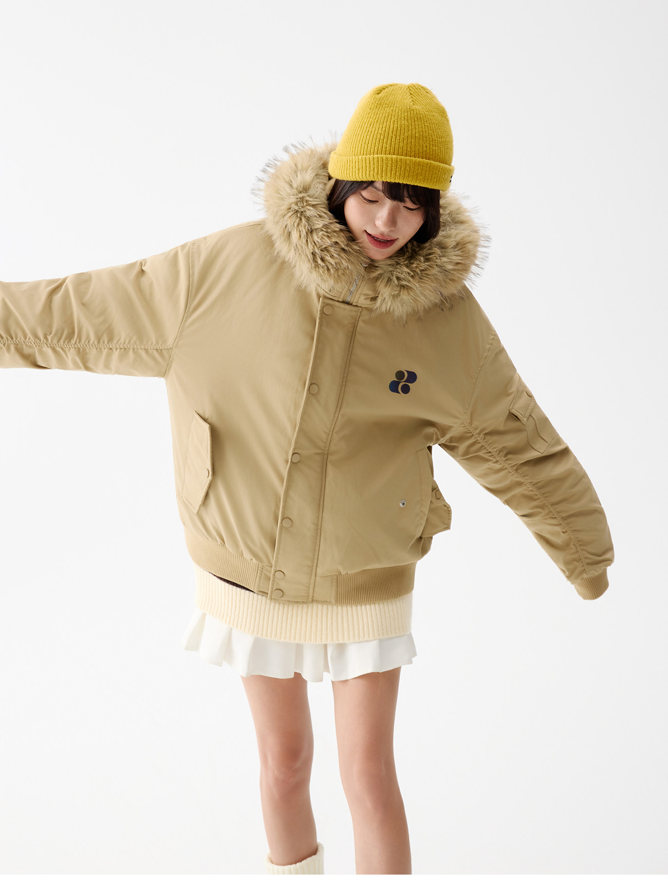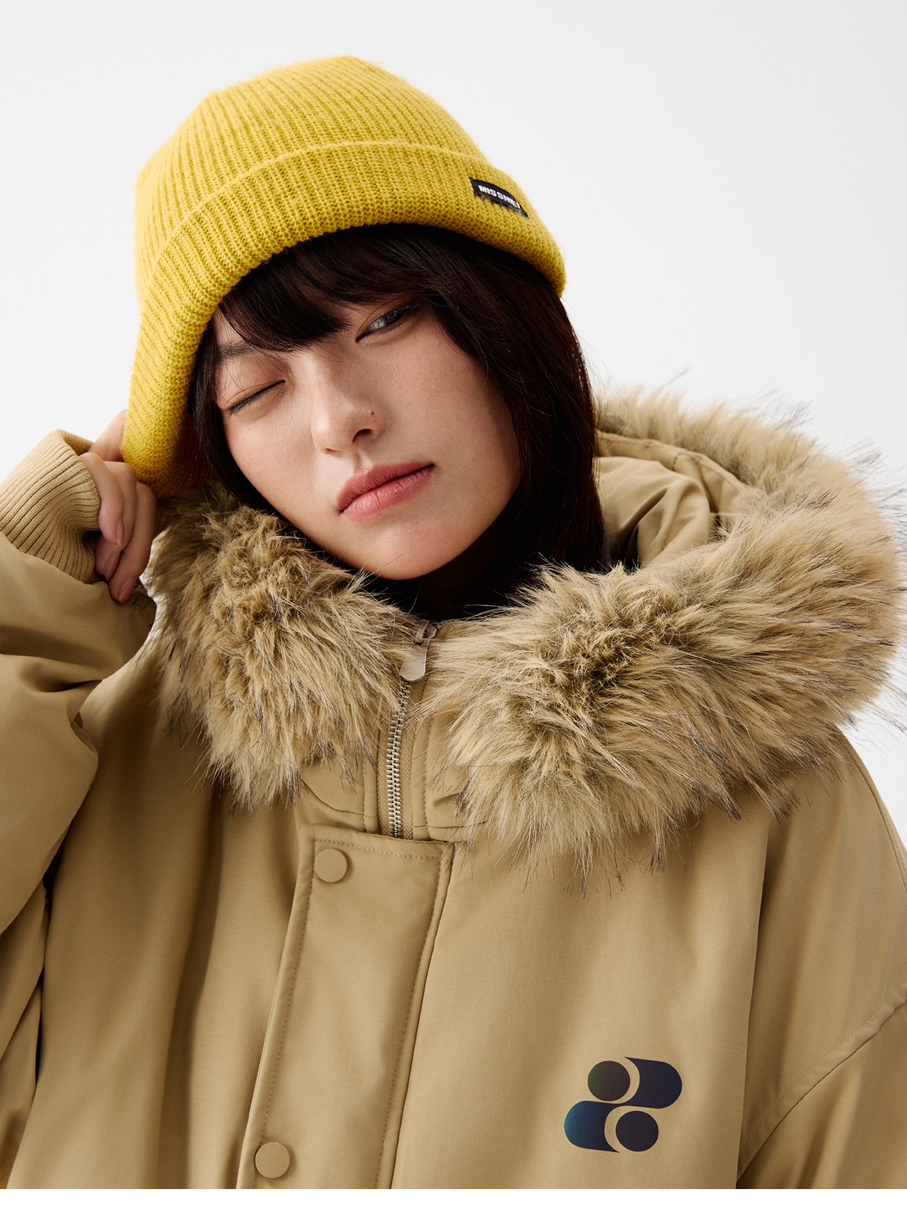 Owox Outdoor Water-Repellent Parka with Fur Collar, Hooded Warm Cotton Jacket for Women, Winter Thickened Jacket, Cotton Coat