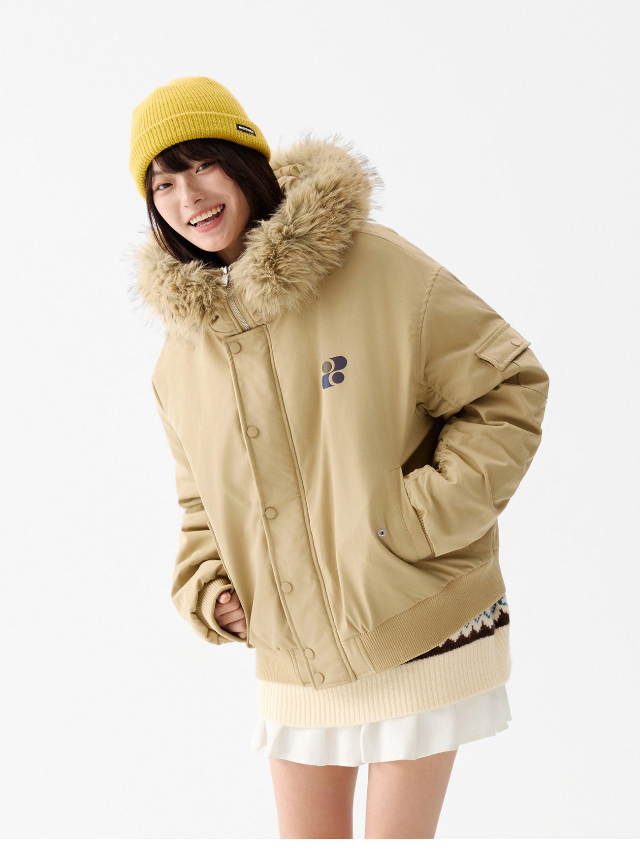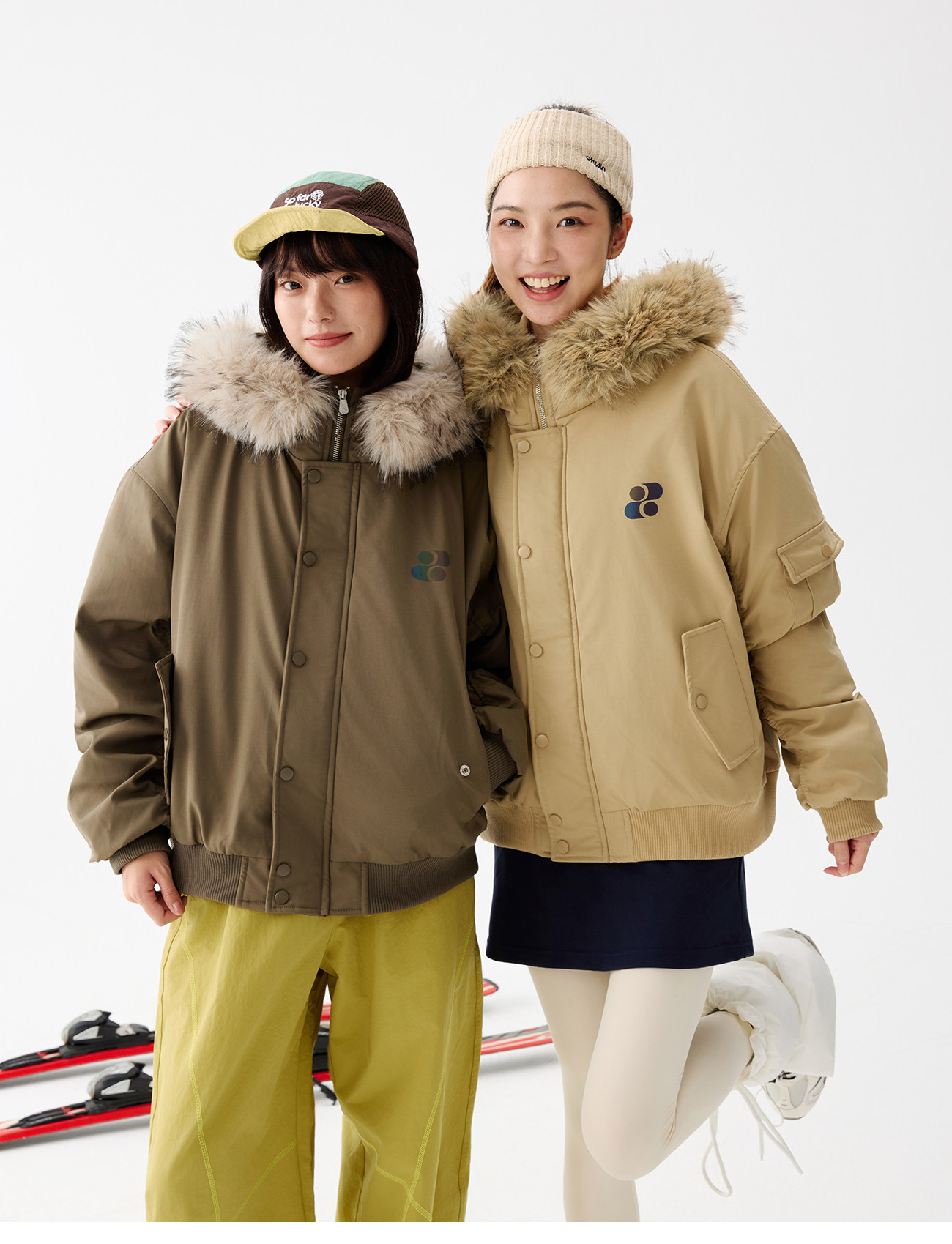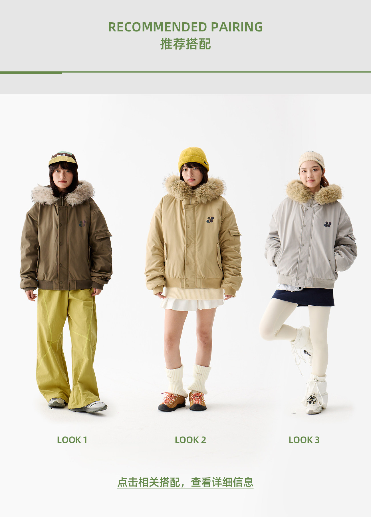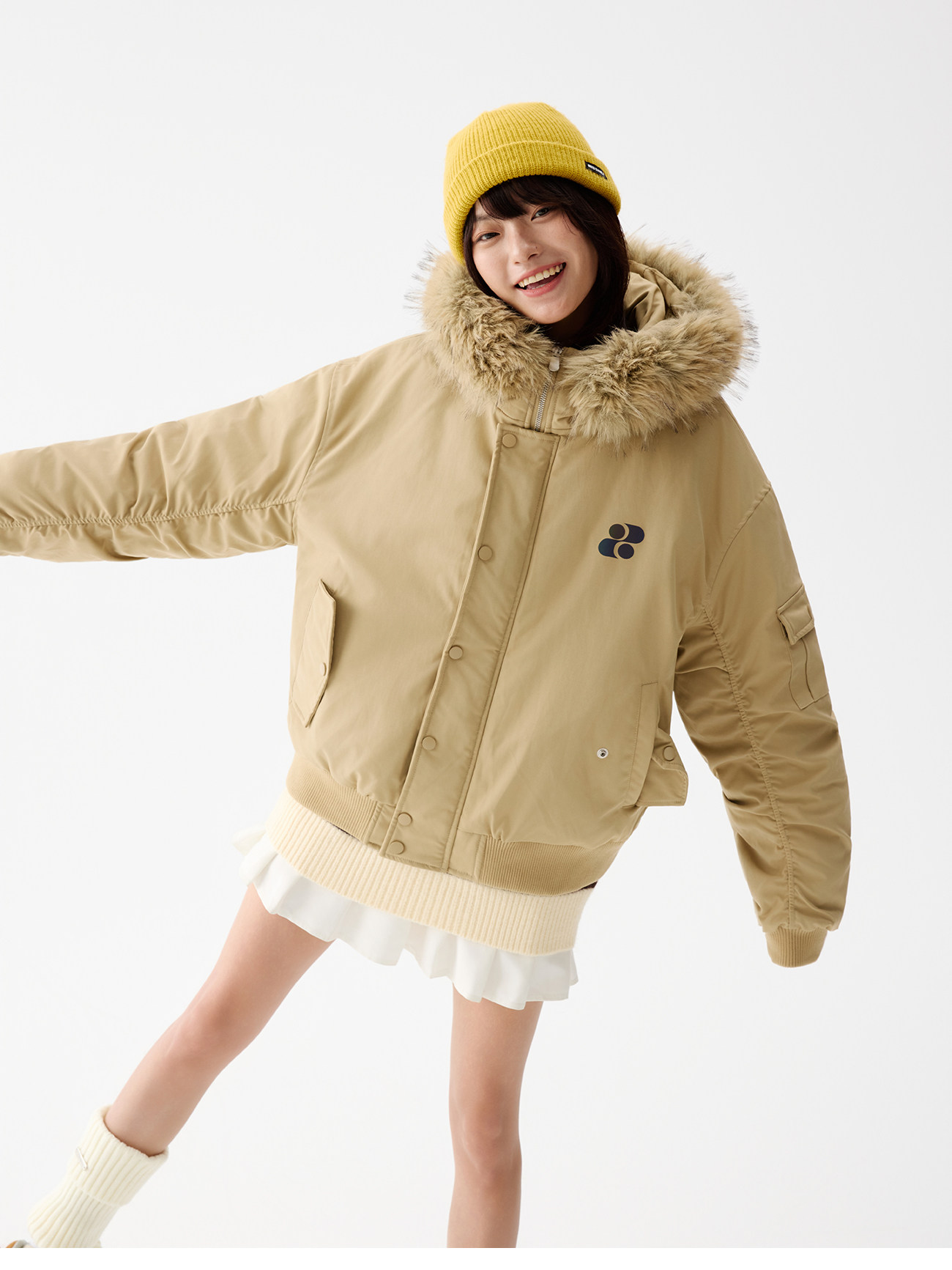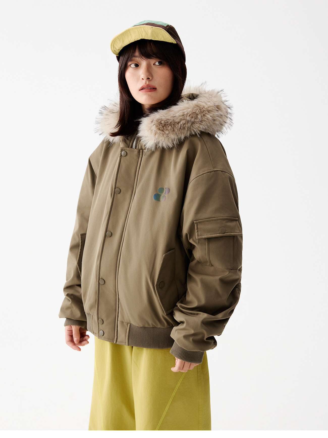 Owox Outdoor Water-Repellent Parka with Fur Collar, Hooded Warm Cotton Jacket for Women, Winter Thickened Jacket, Cotton Coat