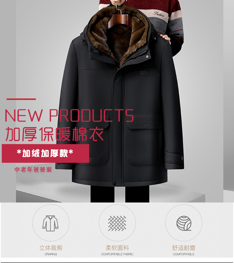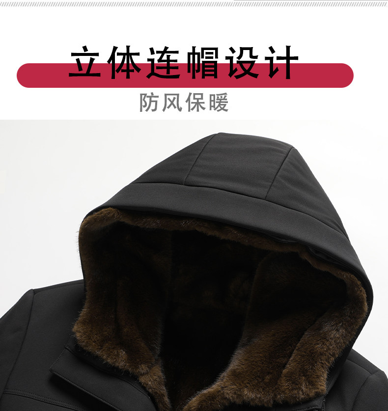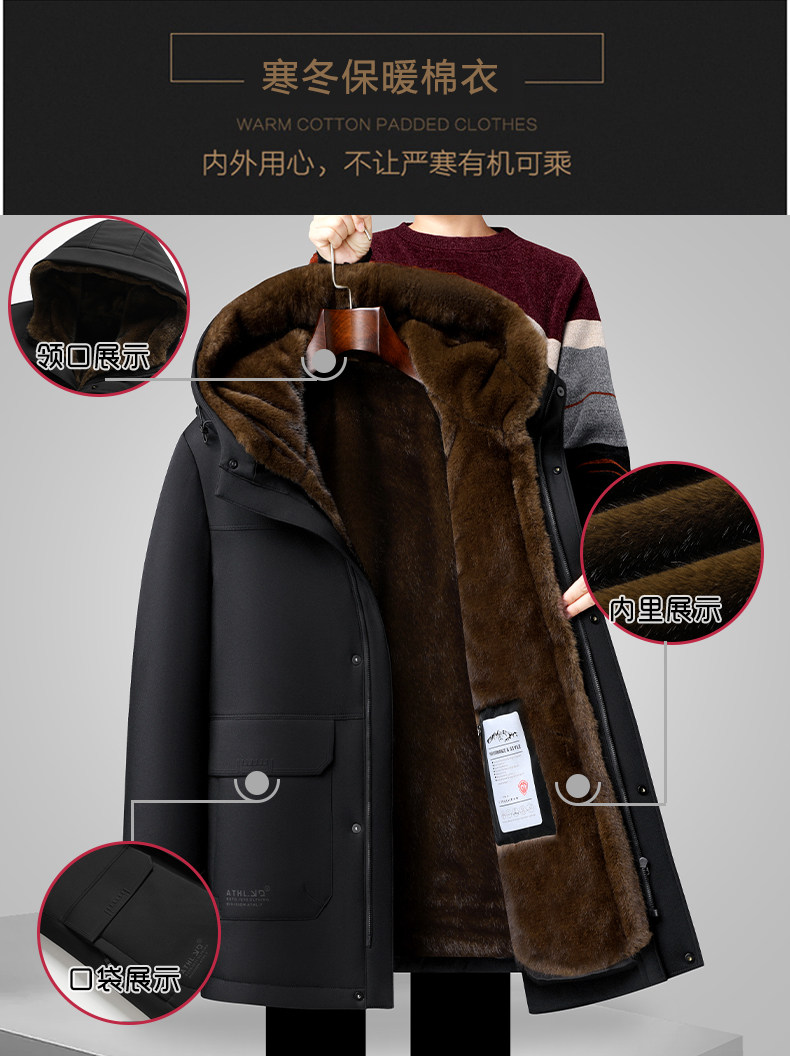 Men's Winter Parka with Removable Liner, Fleece-Lined and Thickened Cotton Jacket for Middle-Aged and Elderly Fathers