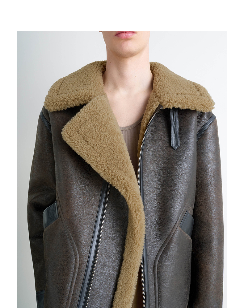 [25 Fall and winter New] LEMAIRE Men Dark Curry Wool Leather Coat