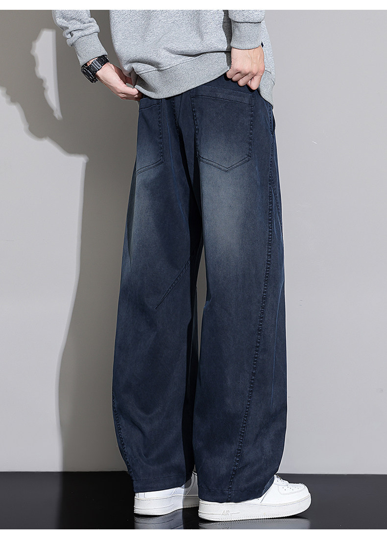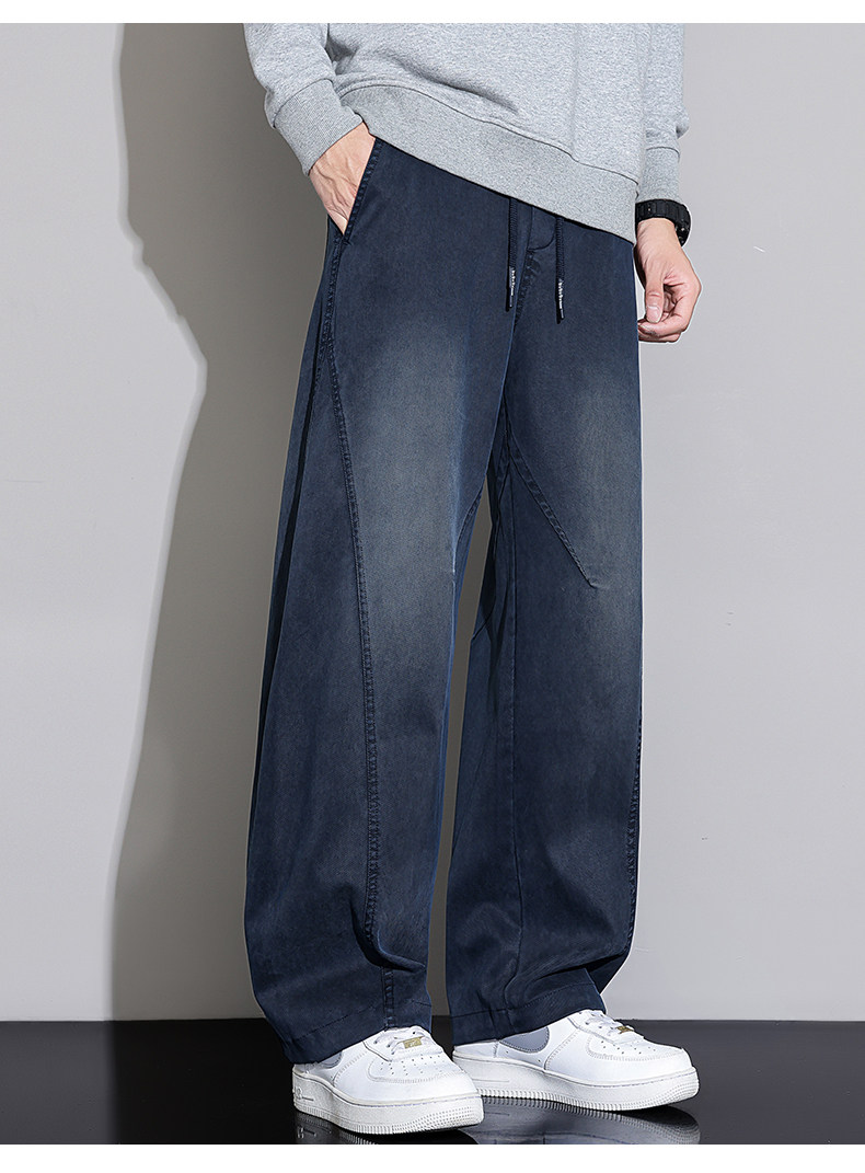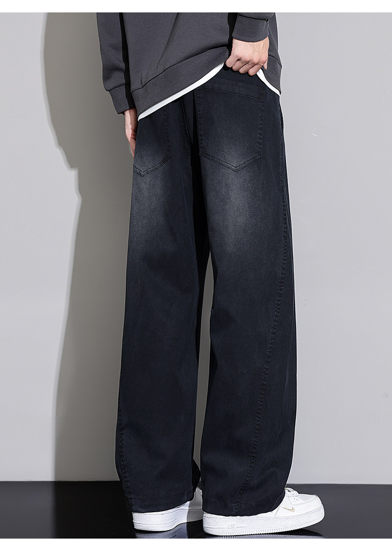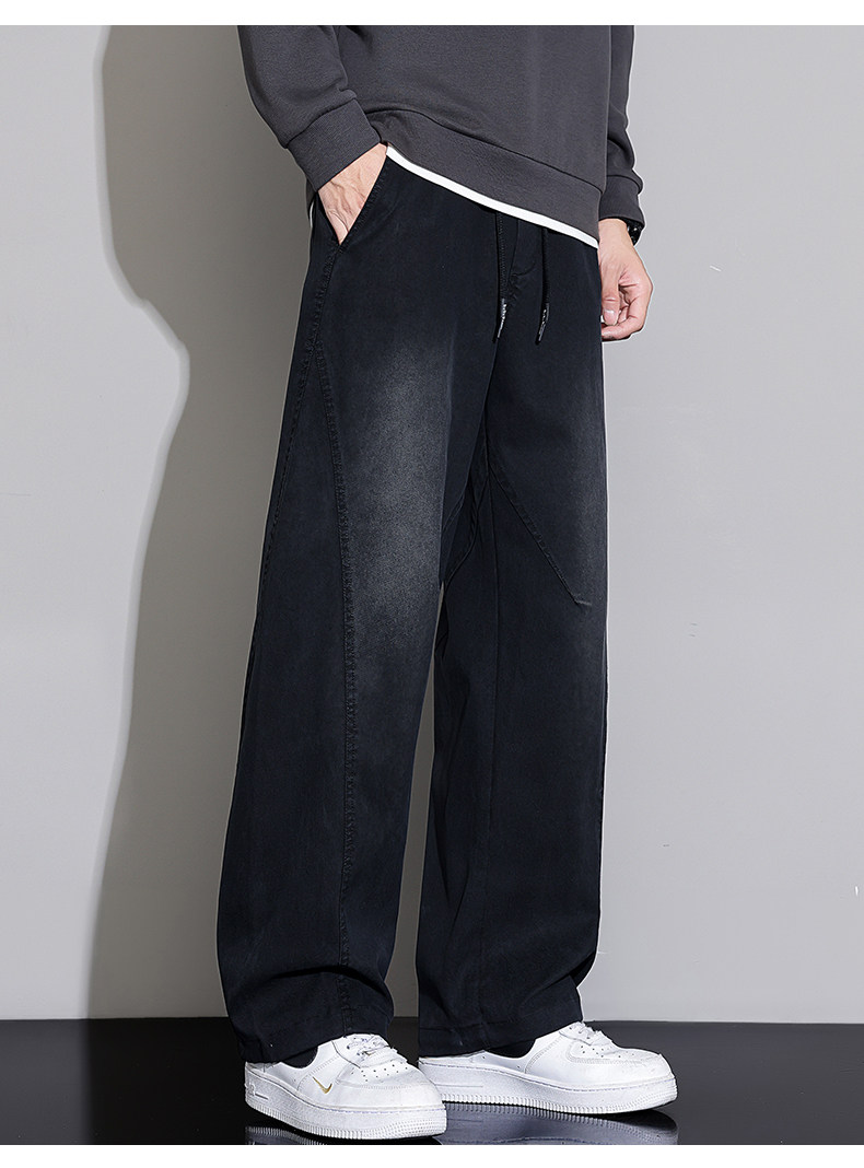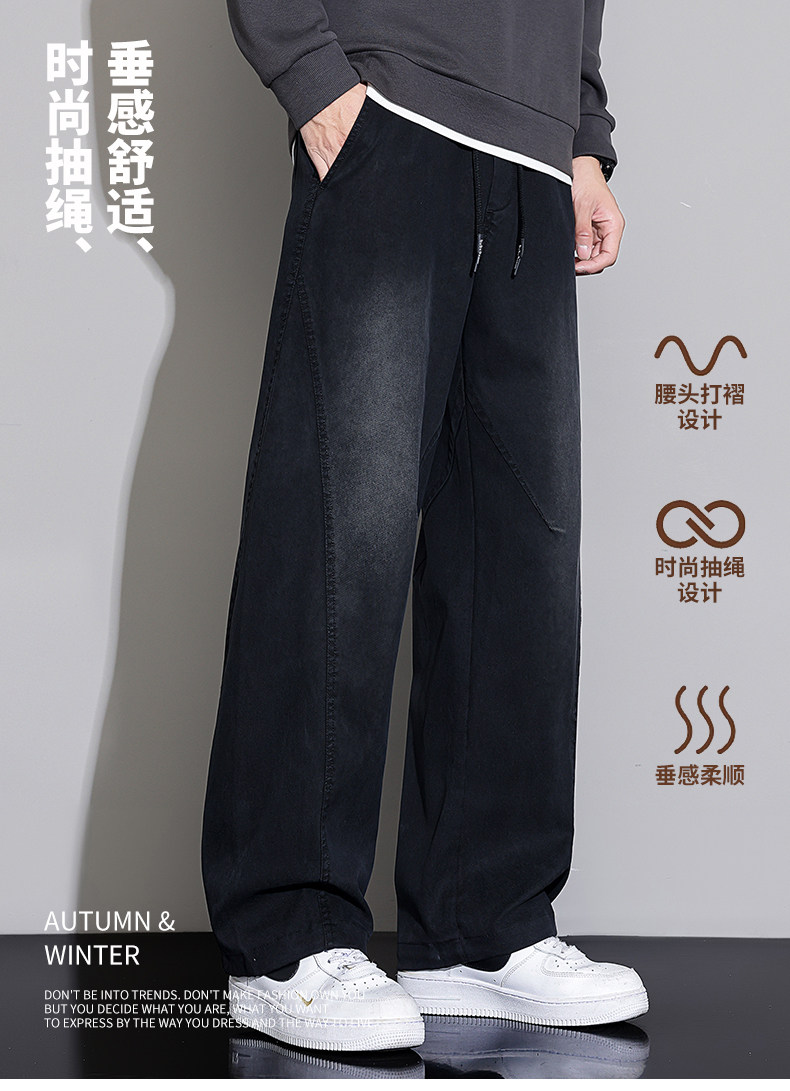 Black Scimitar Jeans for Men, Loose Straight-Leg, 2025 Autumn and Winter New Style, Fleece-Lined and Thickened, American Trendy Brand Casual Long Pants