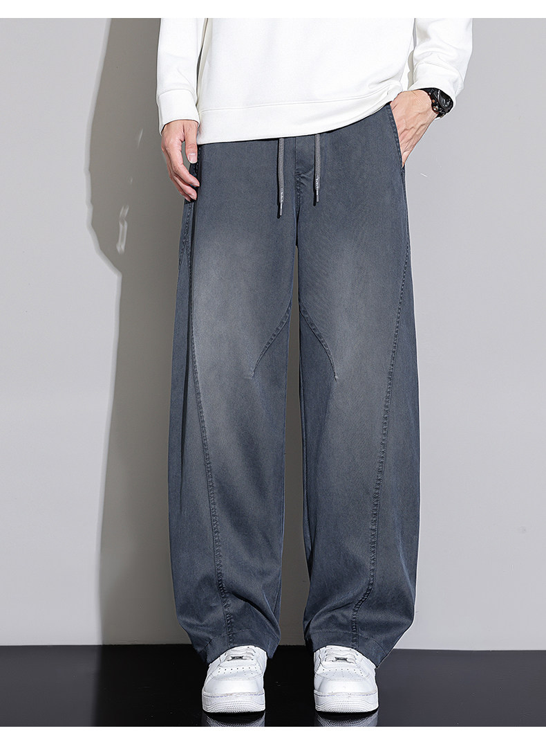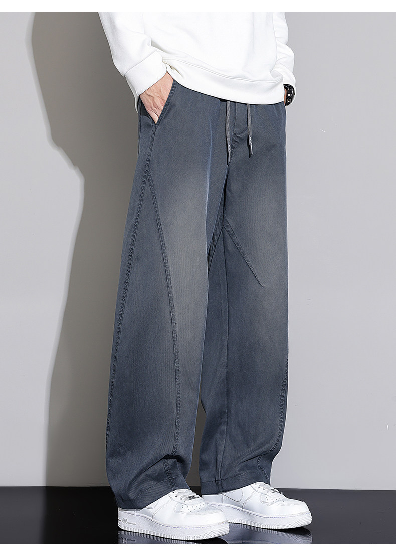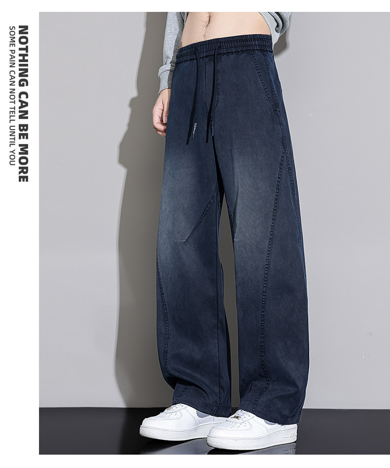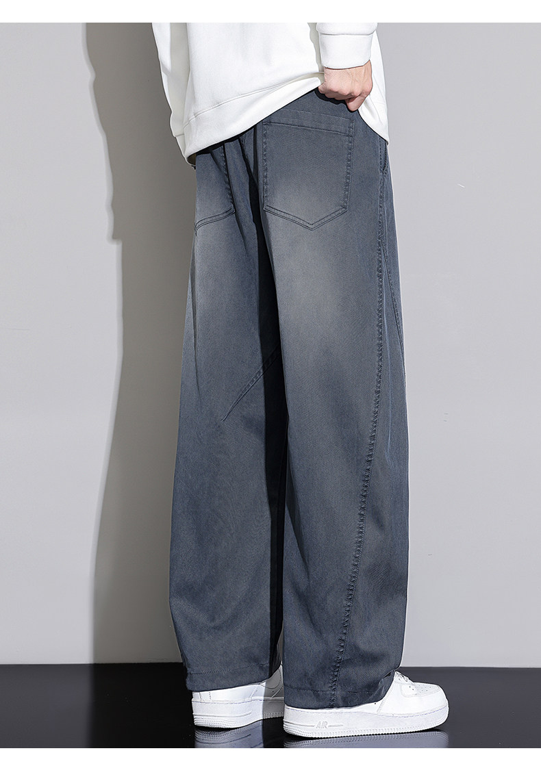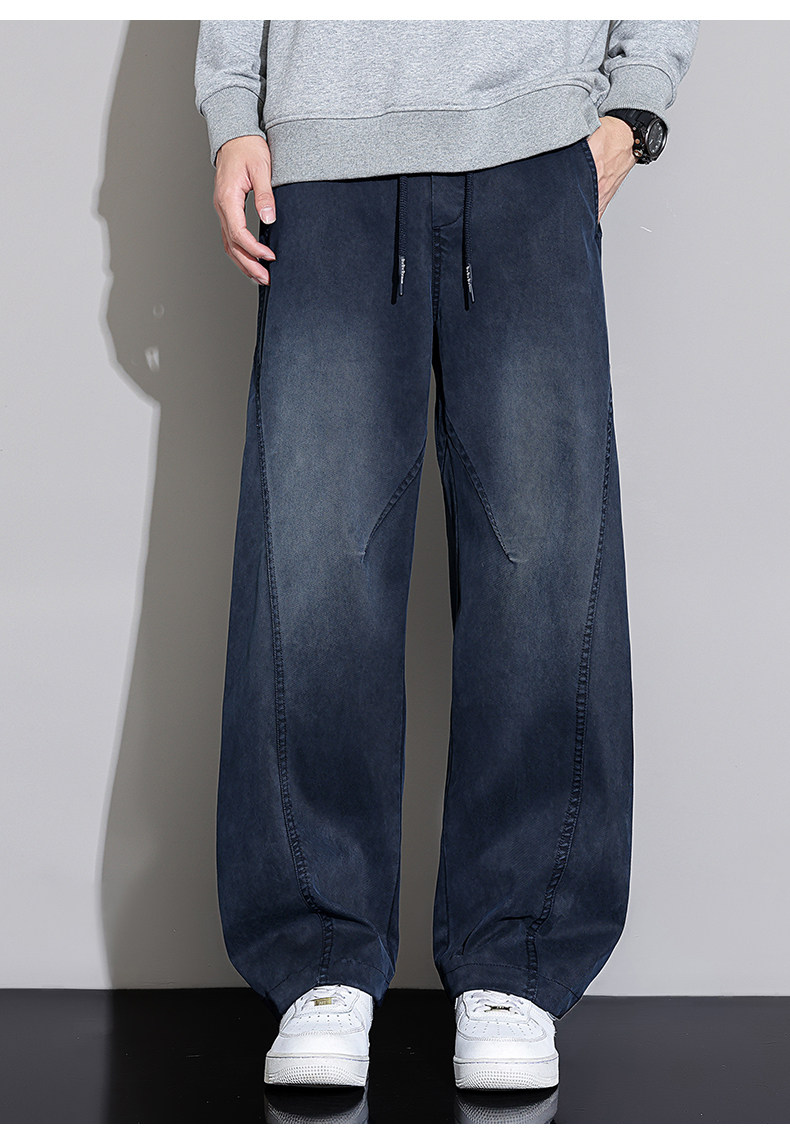 Black Scimitar Jeans for Men, Loose Straight-Leg, 2025 Autumn and Winter New Style, Fleece-Lined and Thickened, American Trendy Brand Casual Long Pants