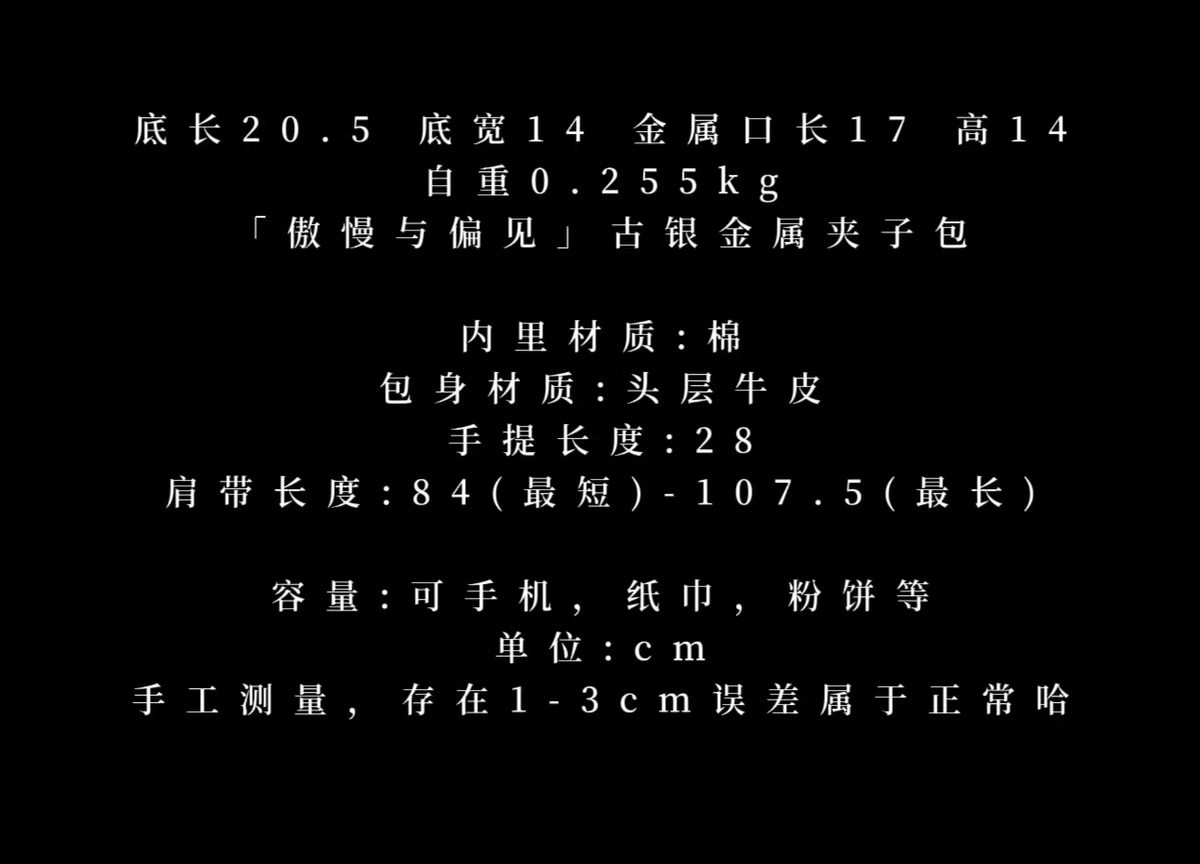 Daewoo Surname Zhang LAOSHU "Pride and Prejudice" Antique Silver Metal Clip Bag with Crossbody Strap