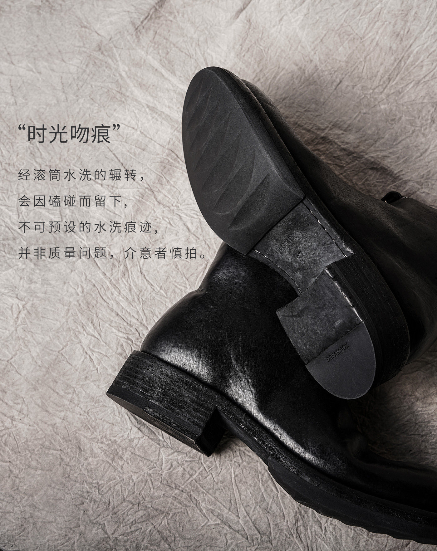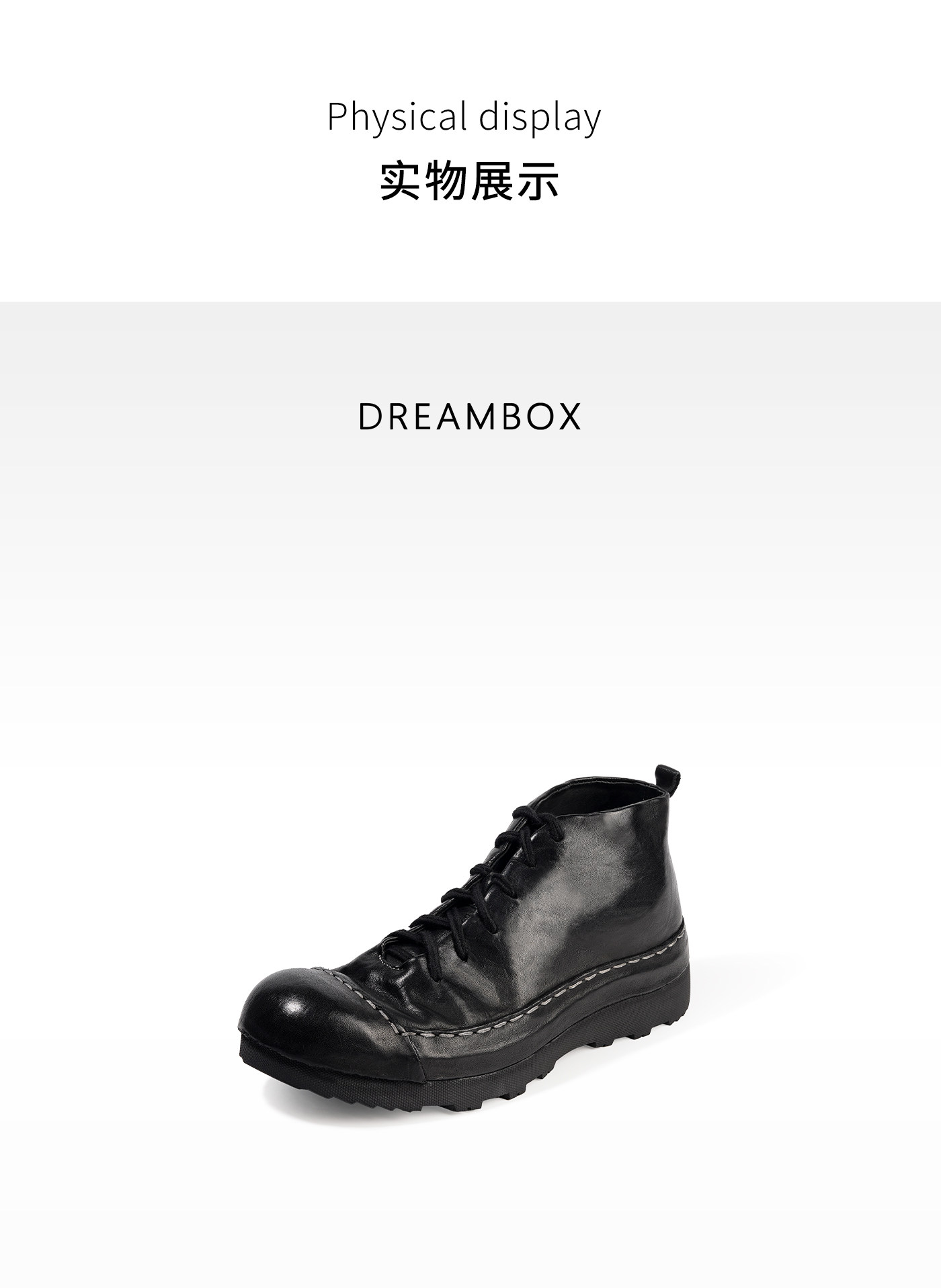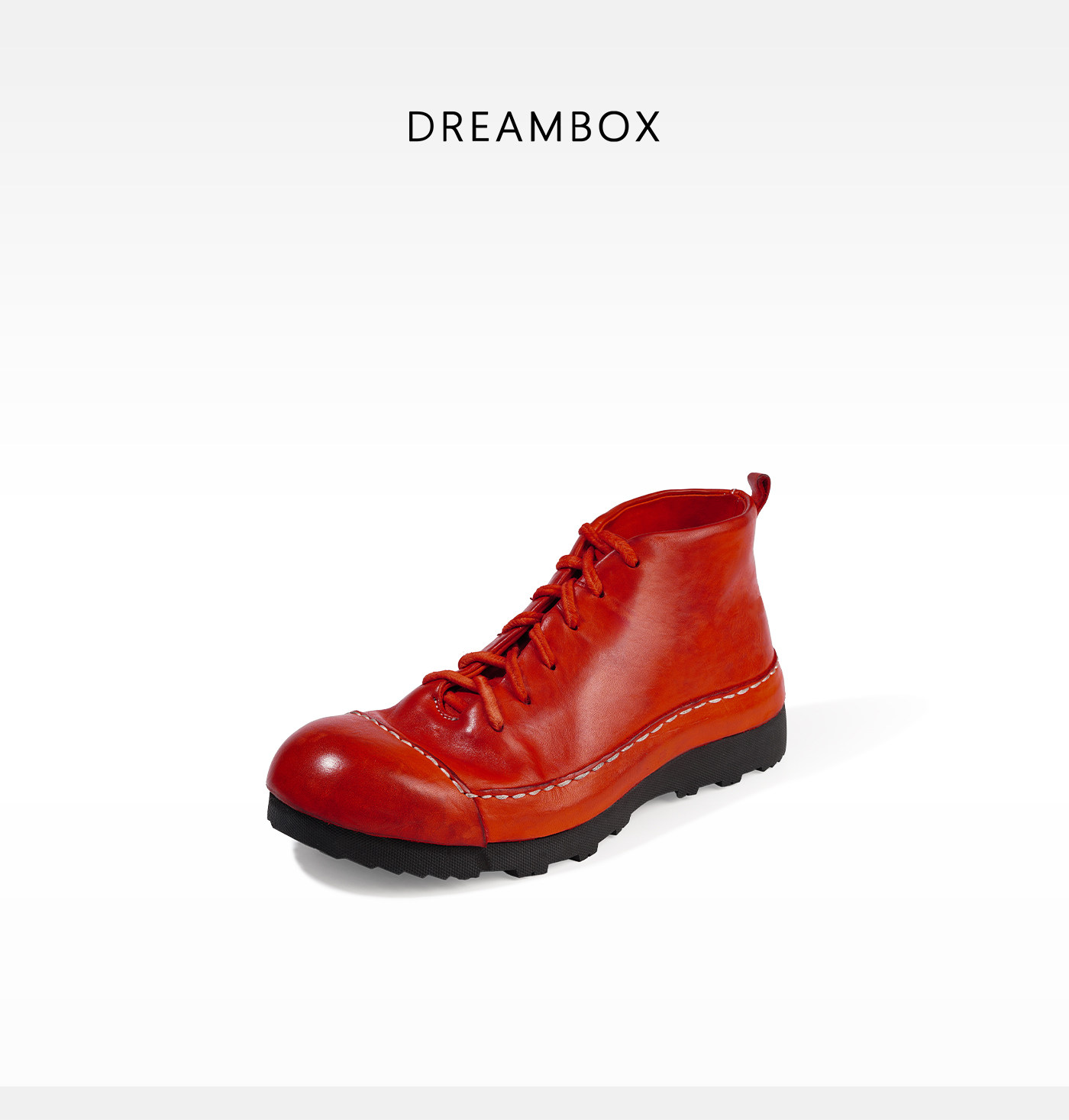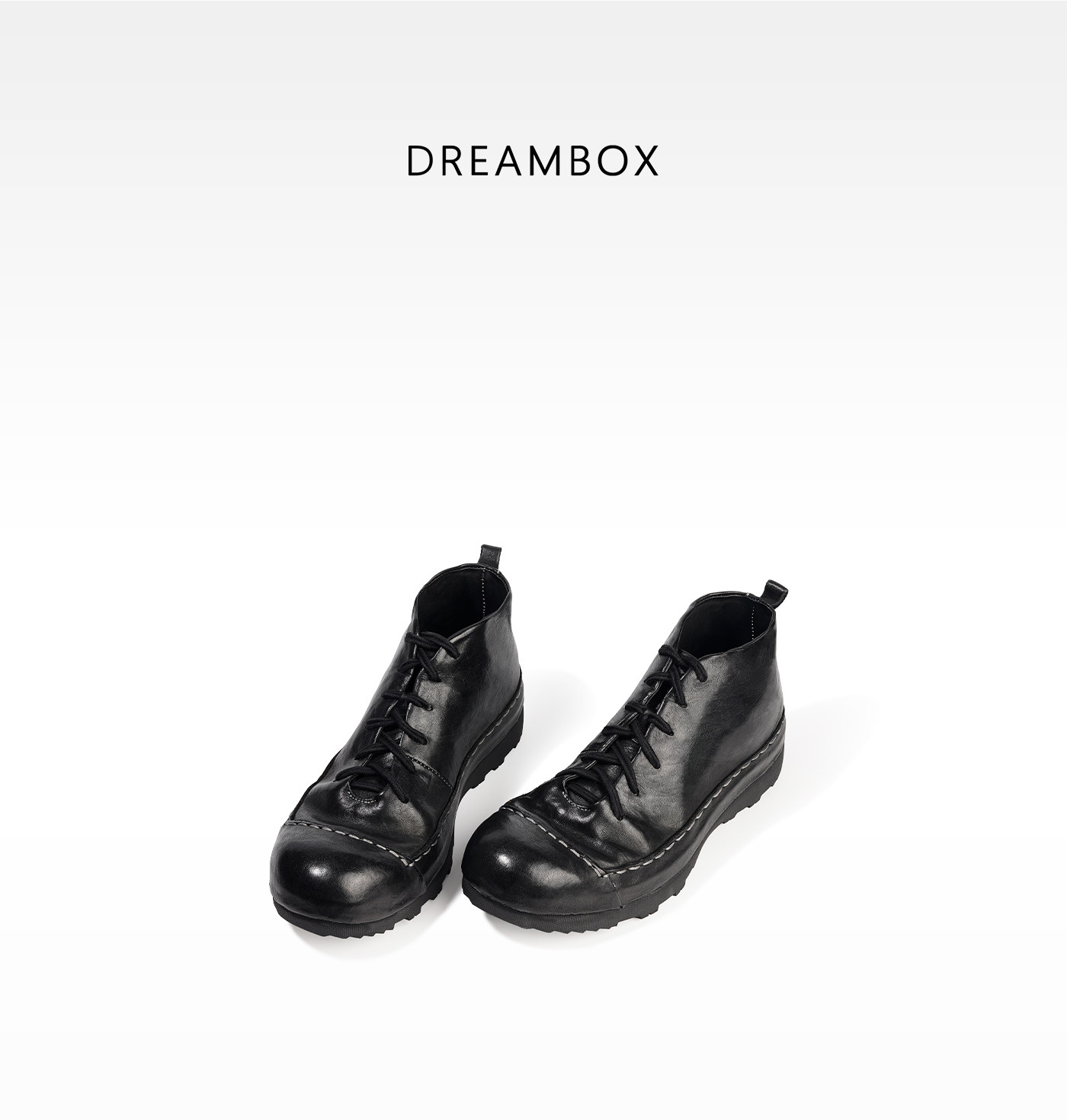 Dreambox Junbo High-Top Women's Shoes with Unique Design, Closed-Toe Short Boots, Washed Vintage Horse Leather, Stylish Martin Boots