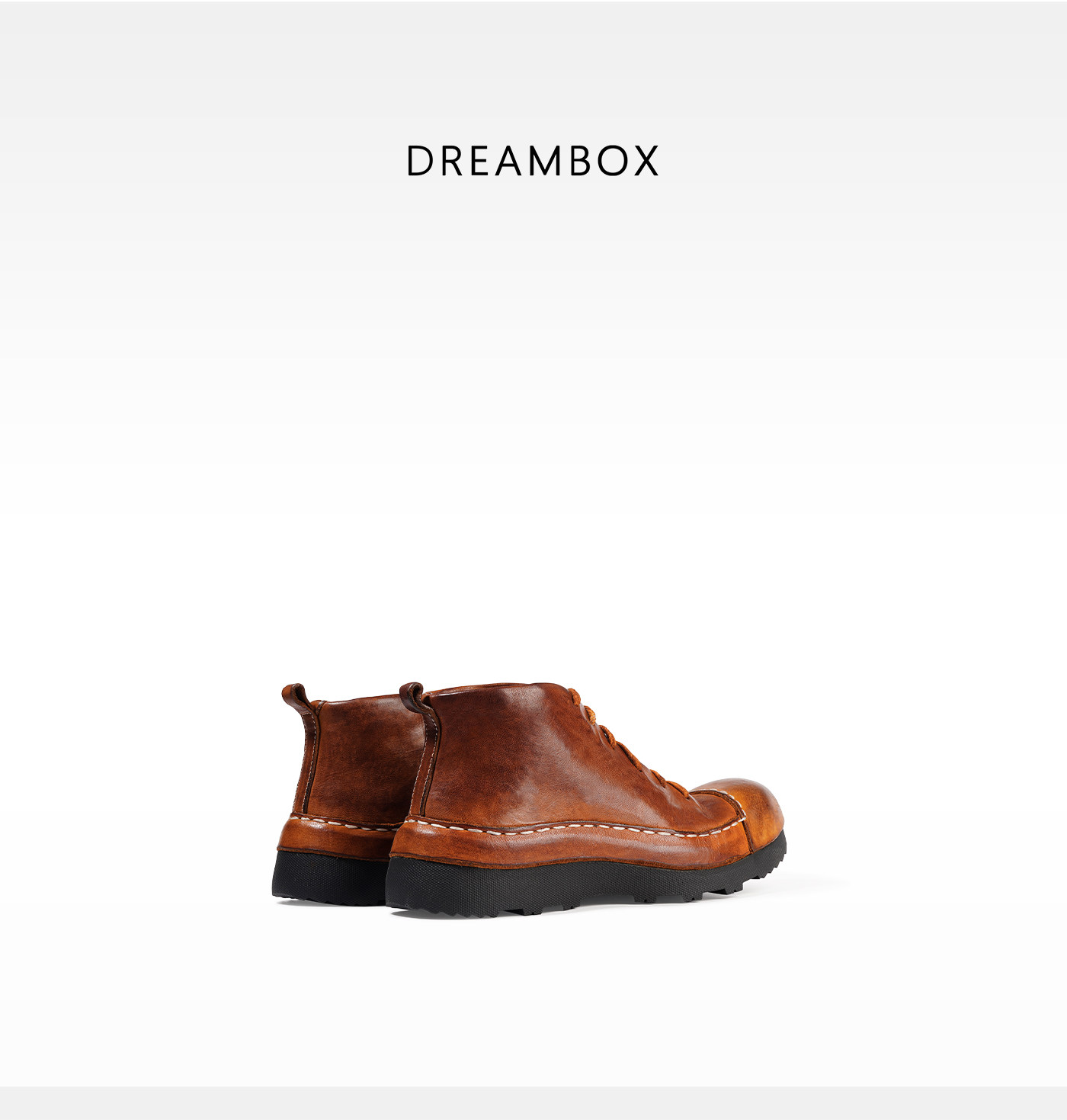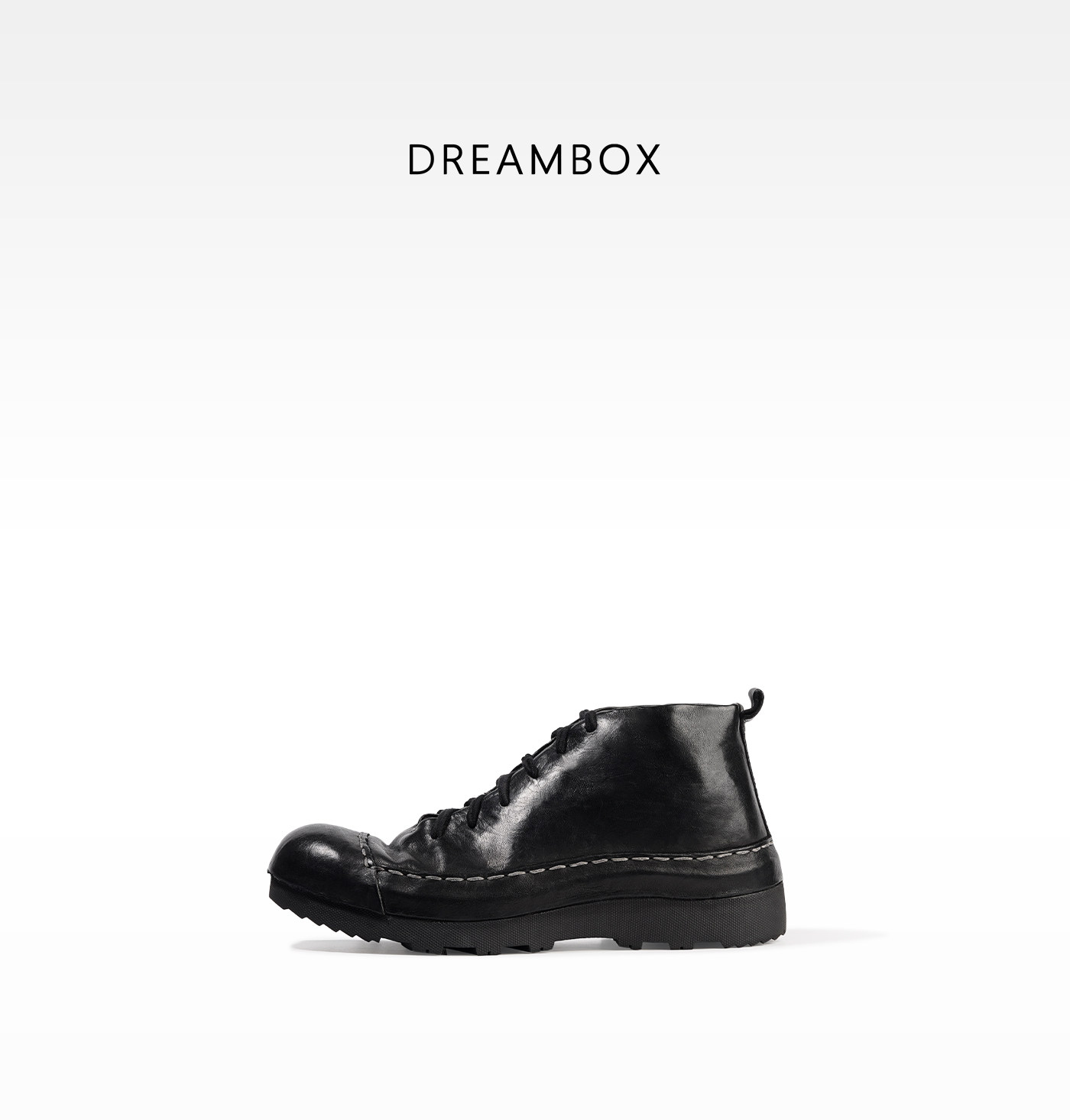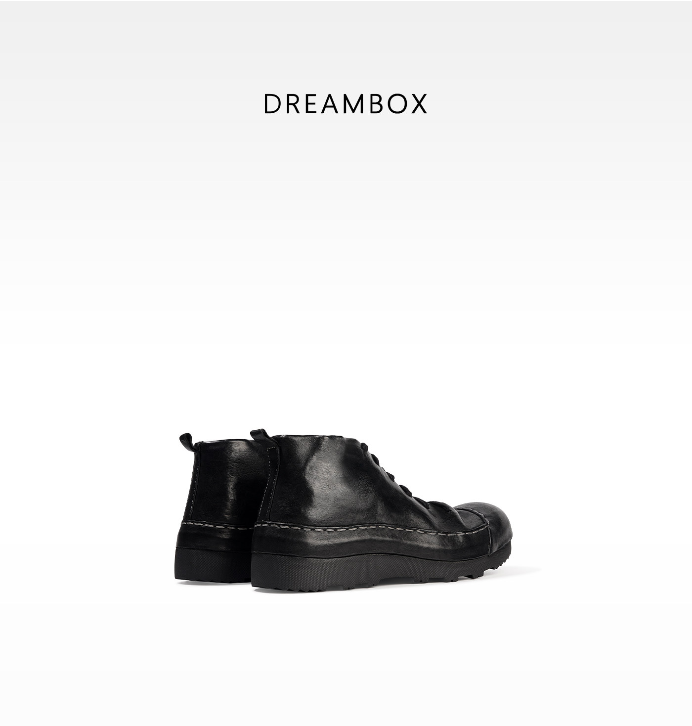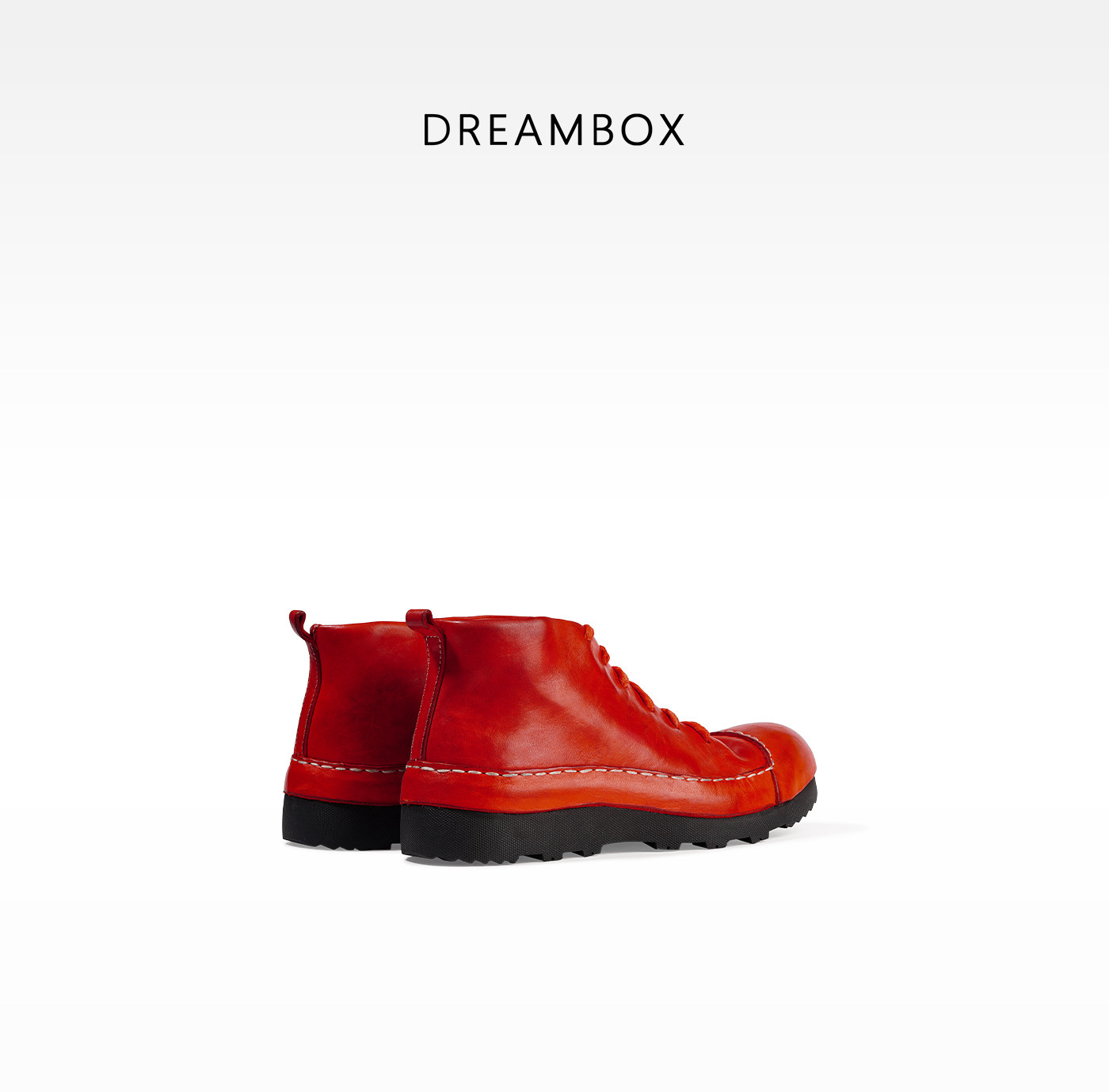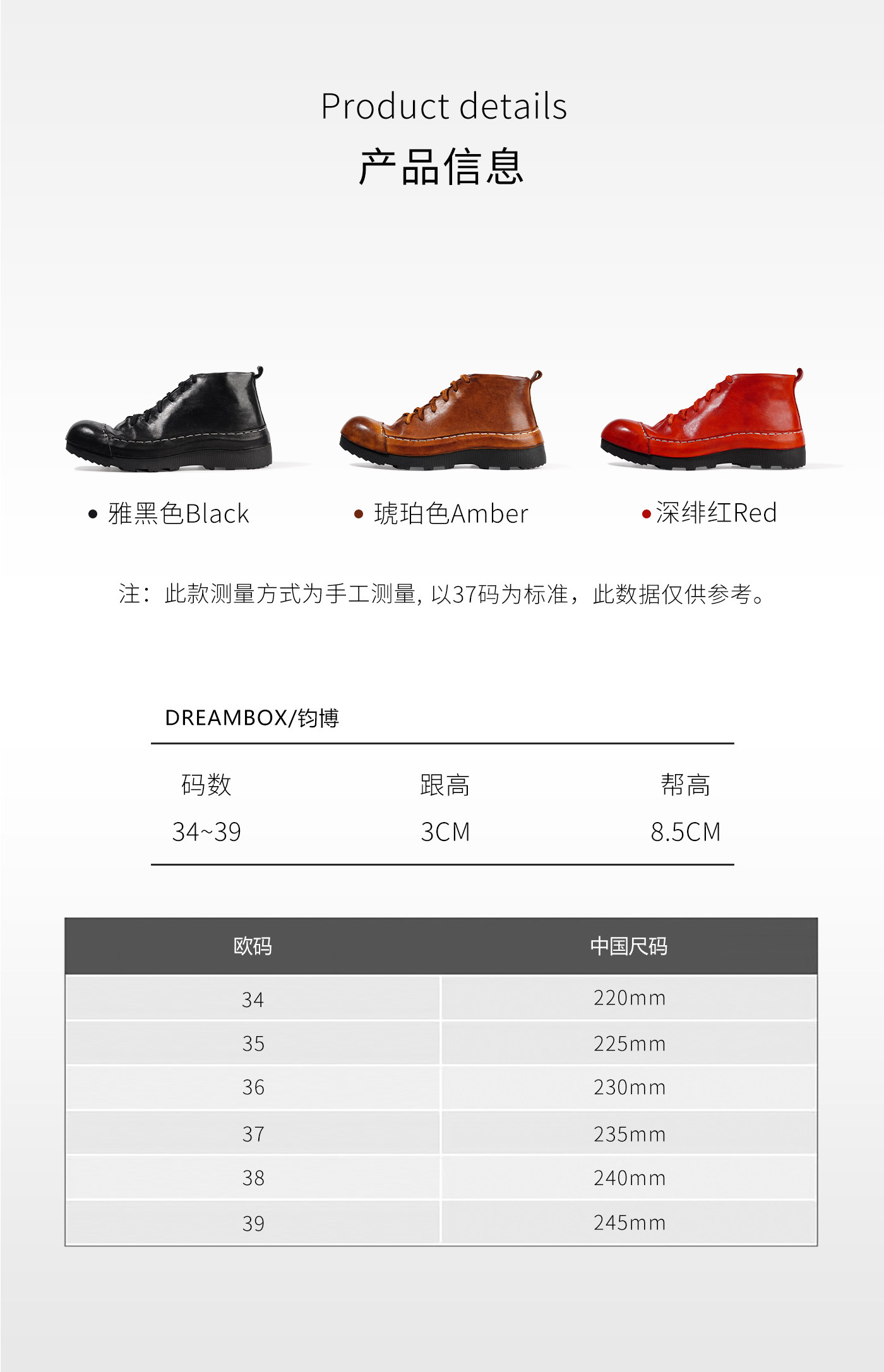 Dreambox Junbo High-Top Women's Shoes with Unique Design, Closed-Toe Short Boots, Washed Vintage Horse Leather, Stylish Martin Boots