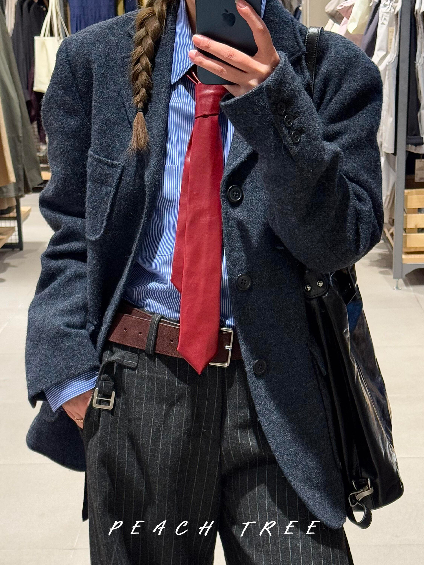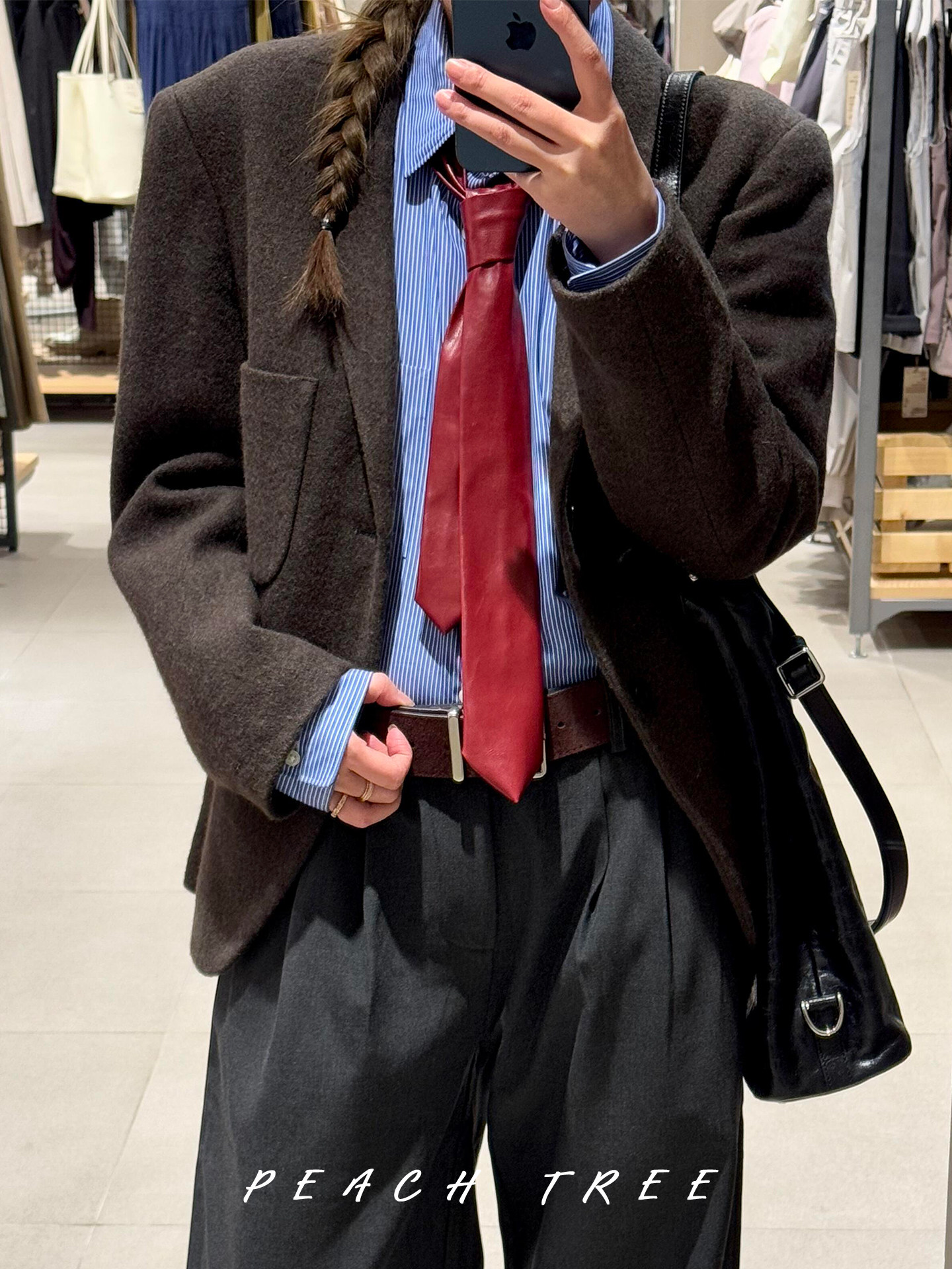 American Retro Burgundy Pu Leather Tie, Solid Color Hand-Tied Narrow Neck Scarf, Fashionable Casual Versatile Neck Accessory for Women