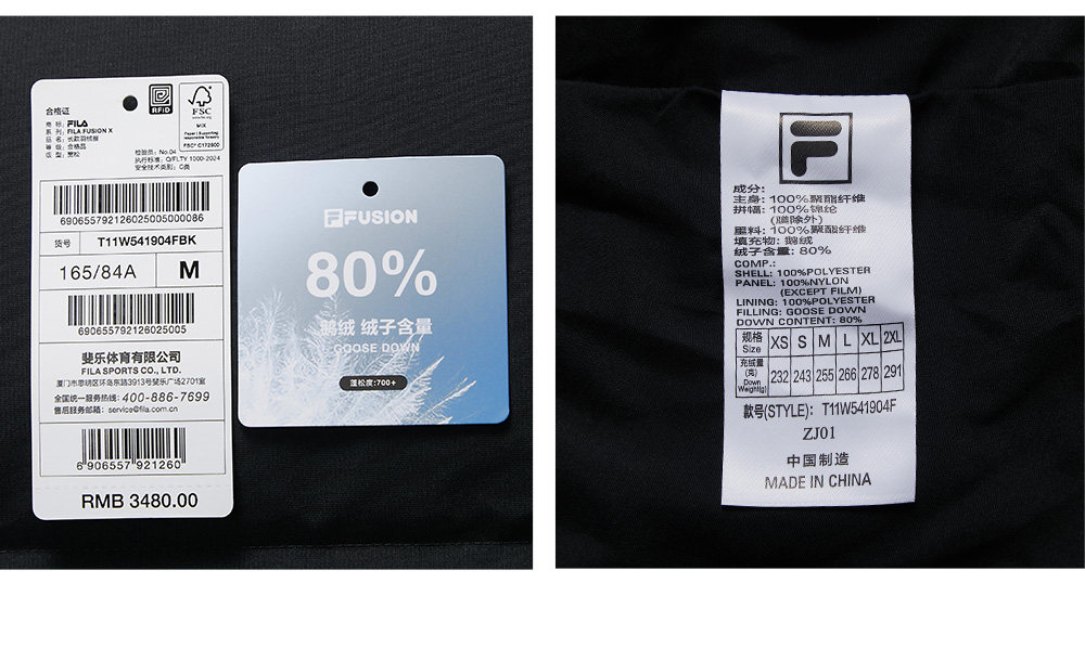 Goose down Fila Fusion Trendy Brand Long down Jacket for Women 2025 Winter New Warm Hooded Coat