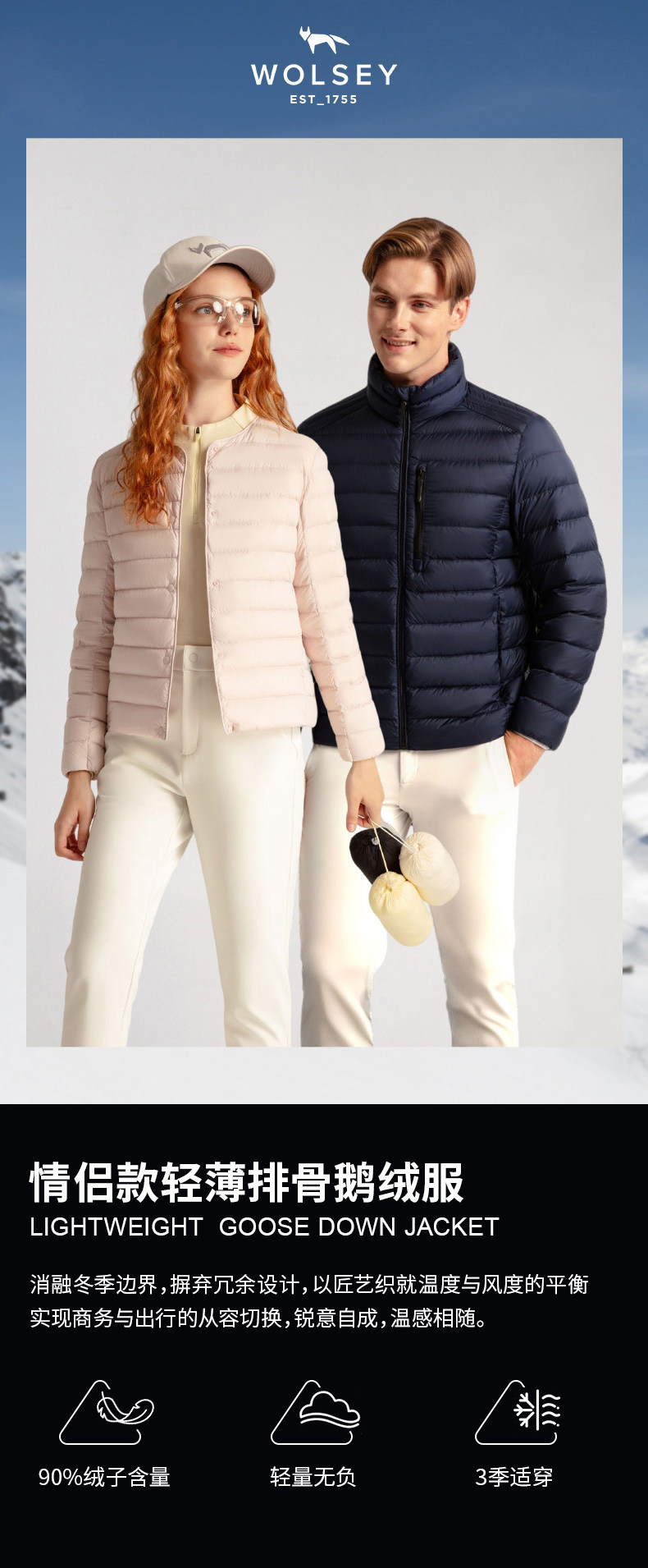 【Add to Cart! Pre-Order for February 24Th】Wolsey Floating Cloud 90% Goose down Lightweight Ribbed down Jacket for Men and Women
