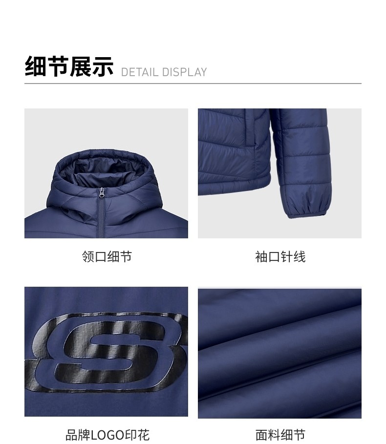 Skechers Official Outlets New Autumn and Winter Unisex Warm Slim-Fit Woven Quilted Cotton Jacket