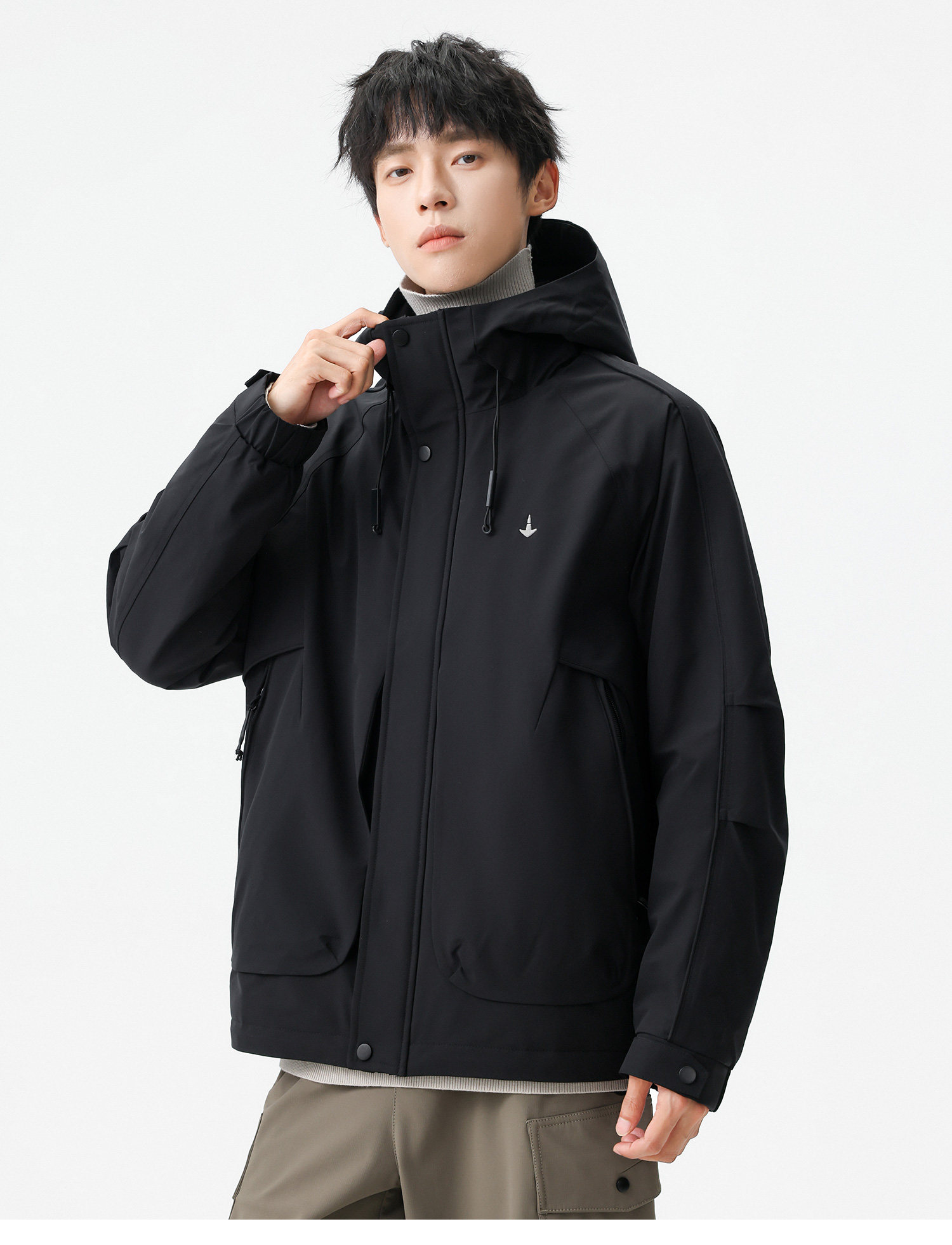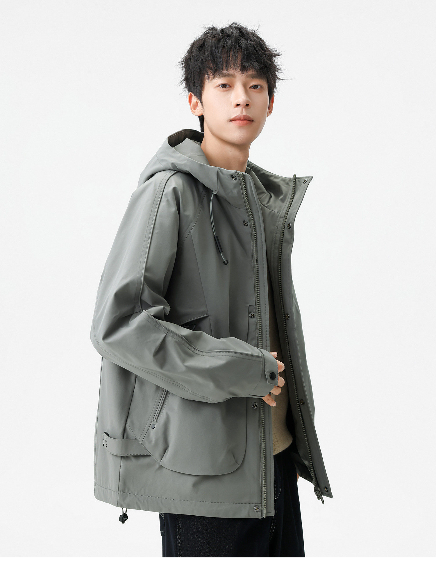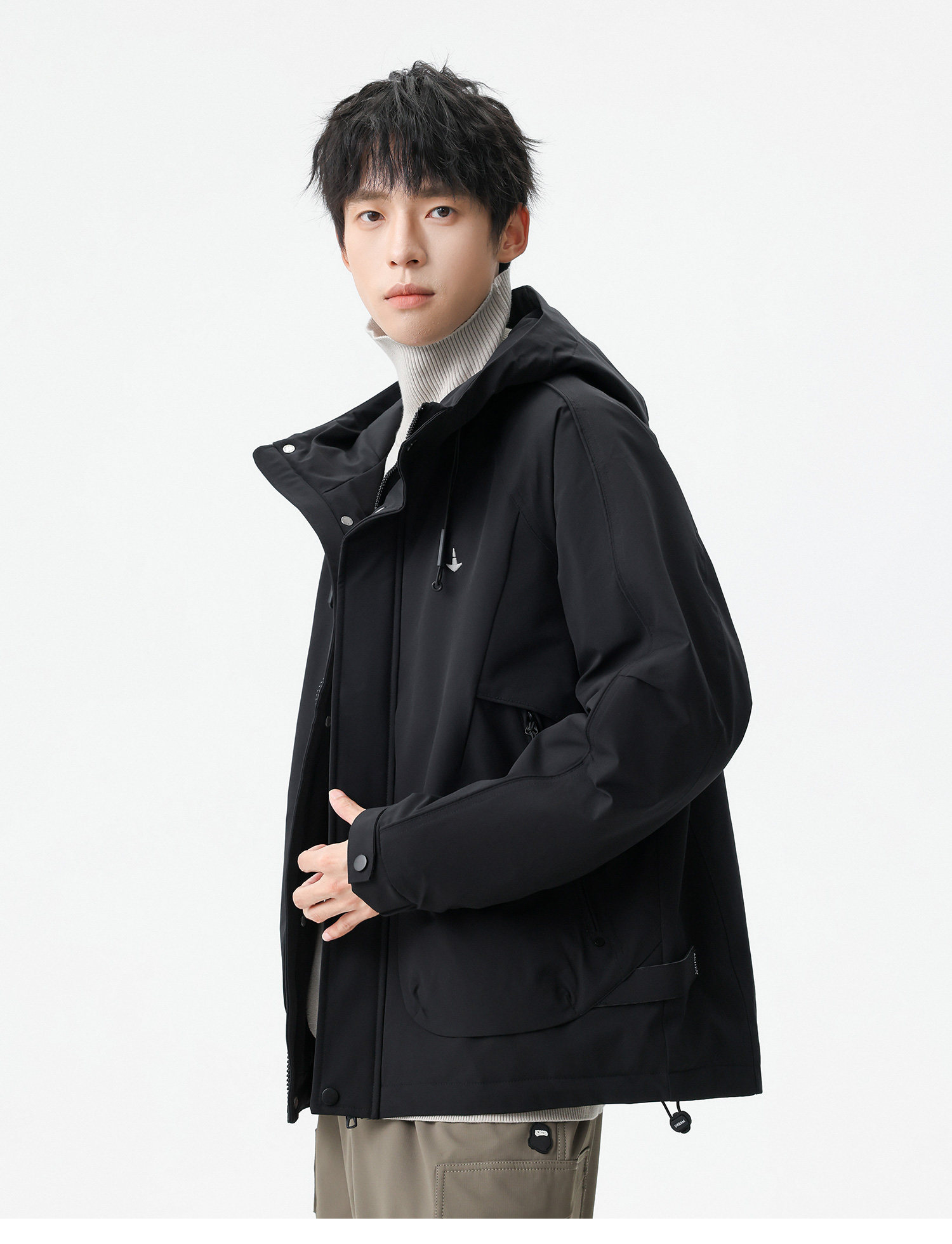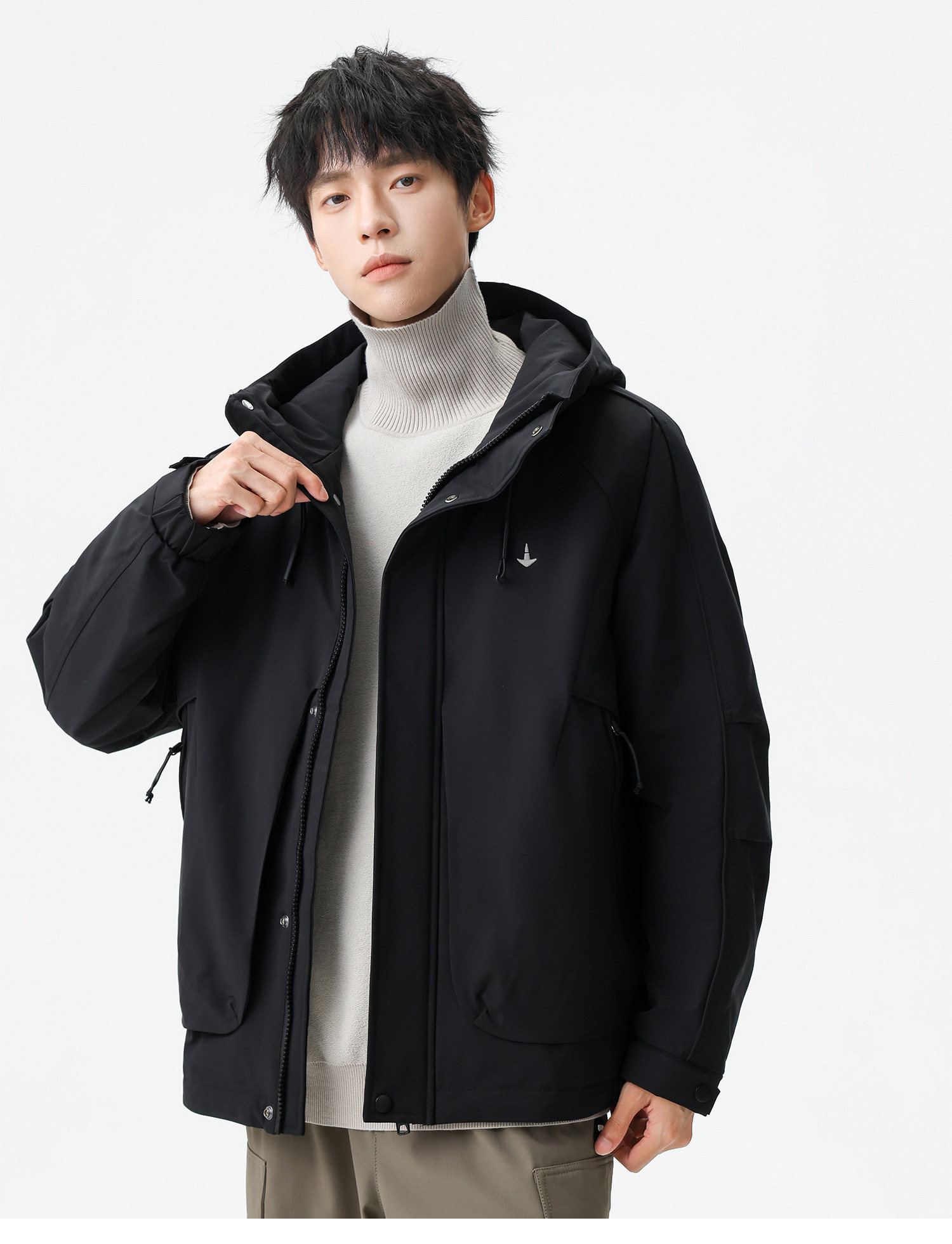 Men's Short Hooded Cotton Jacket in Workwear Style, Functional and Trendy Brand Clothing