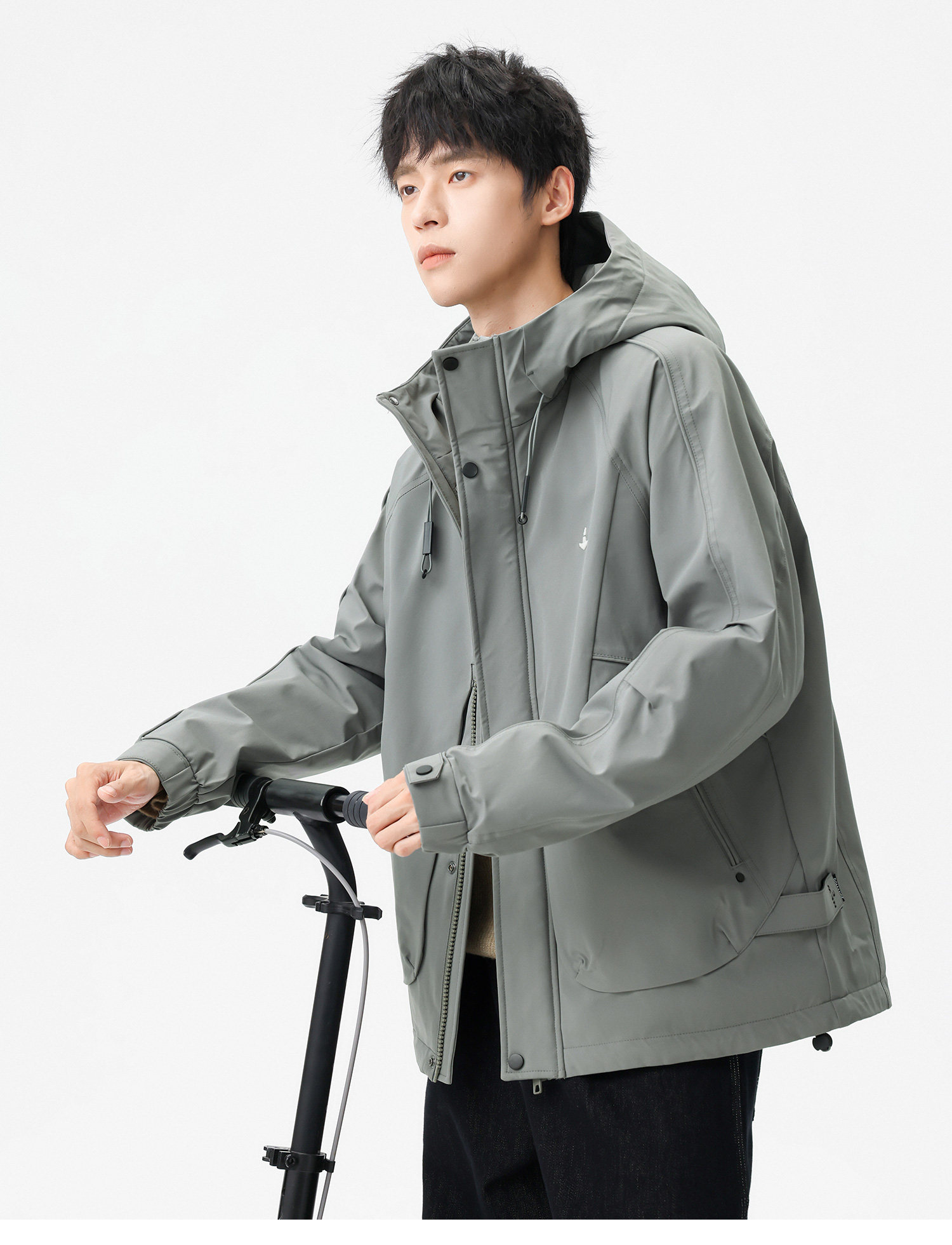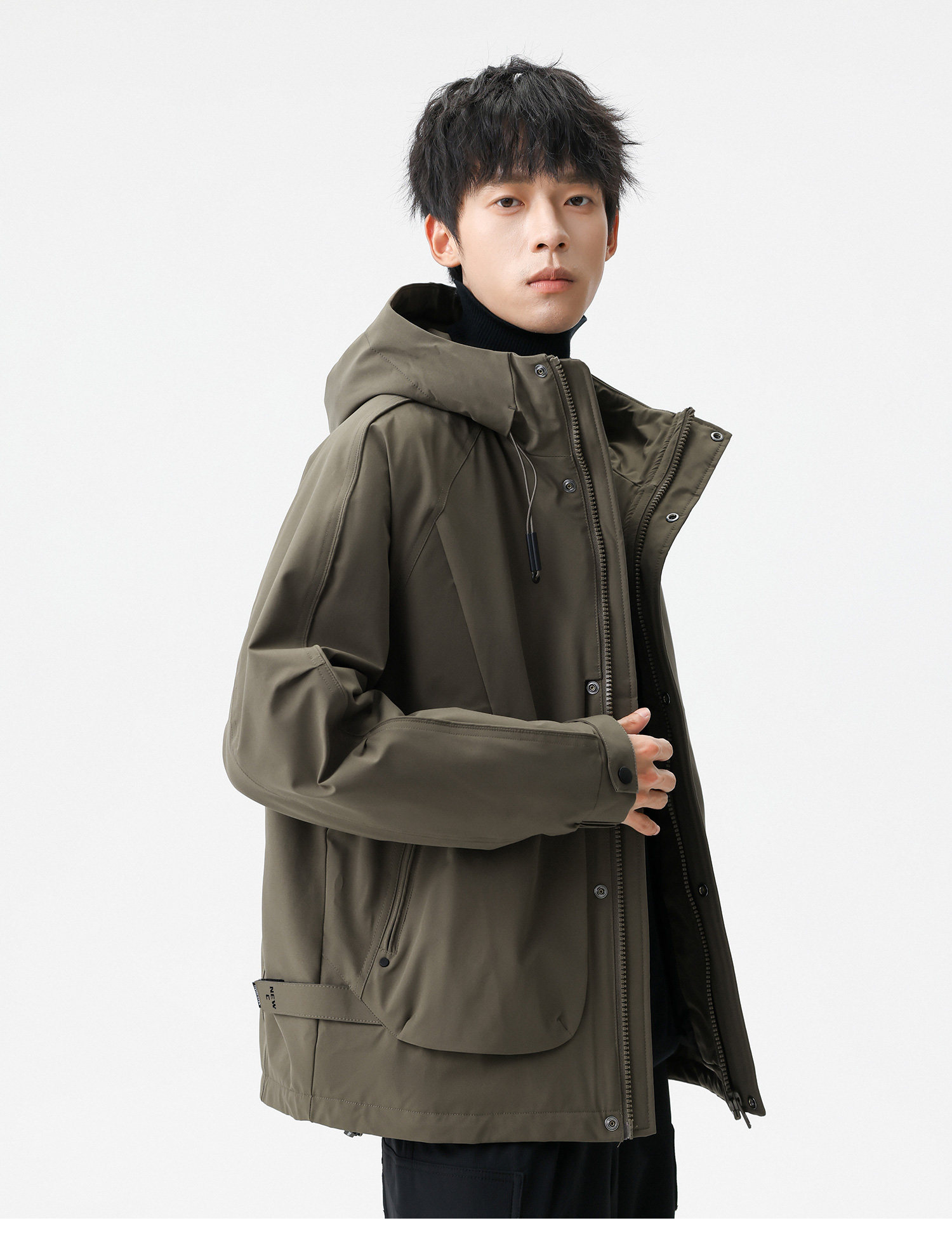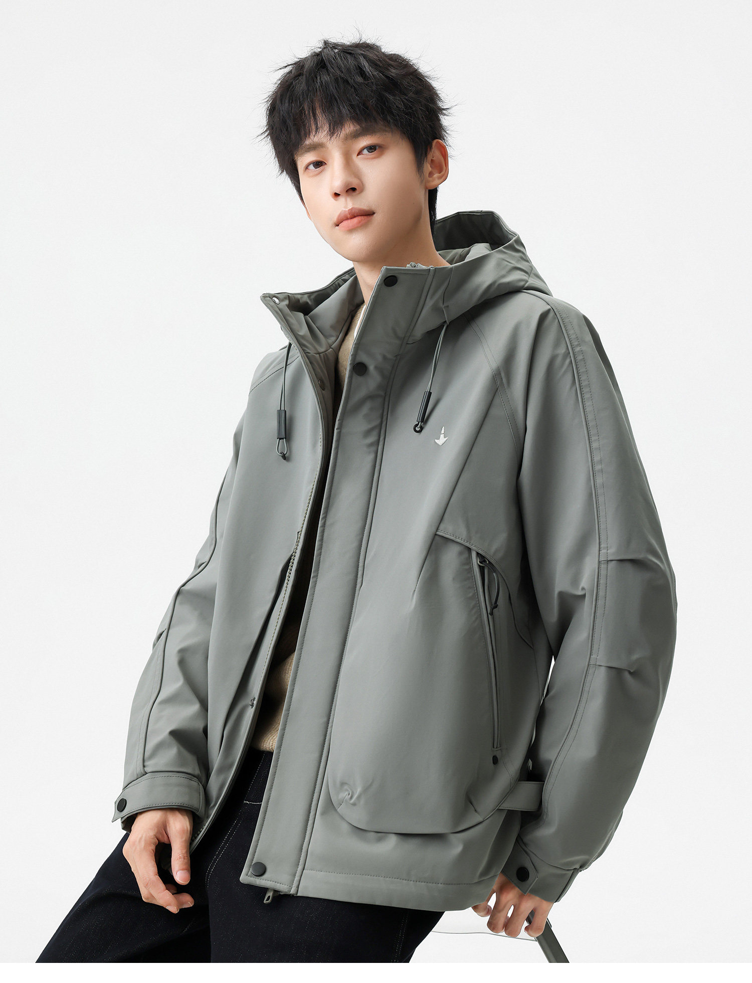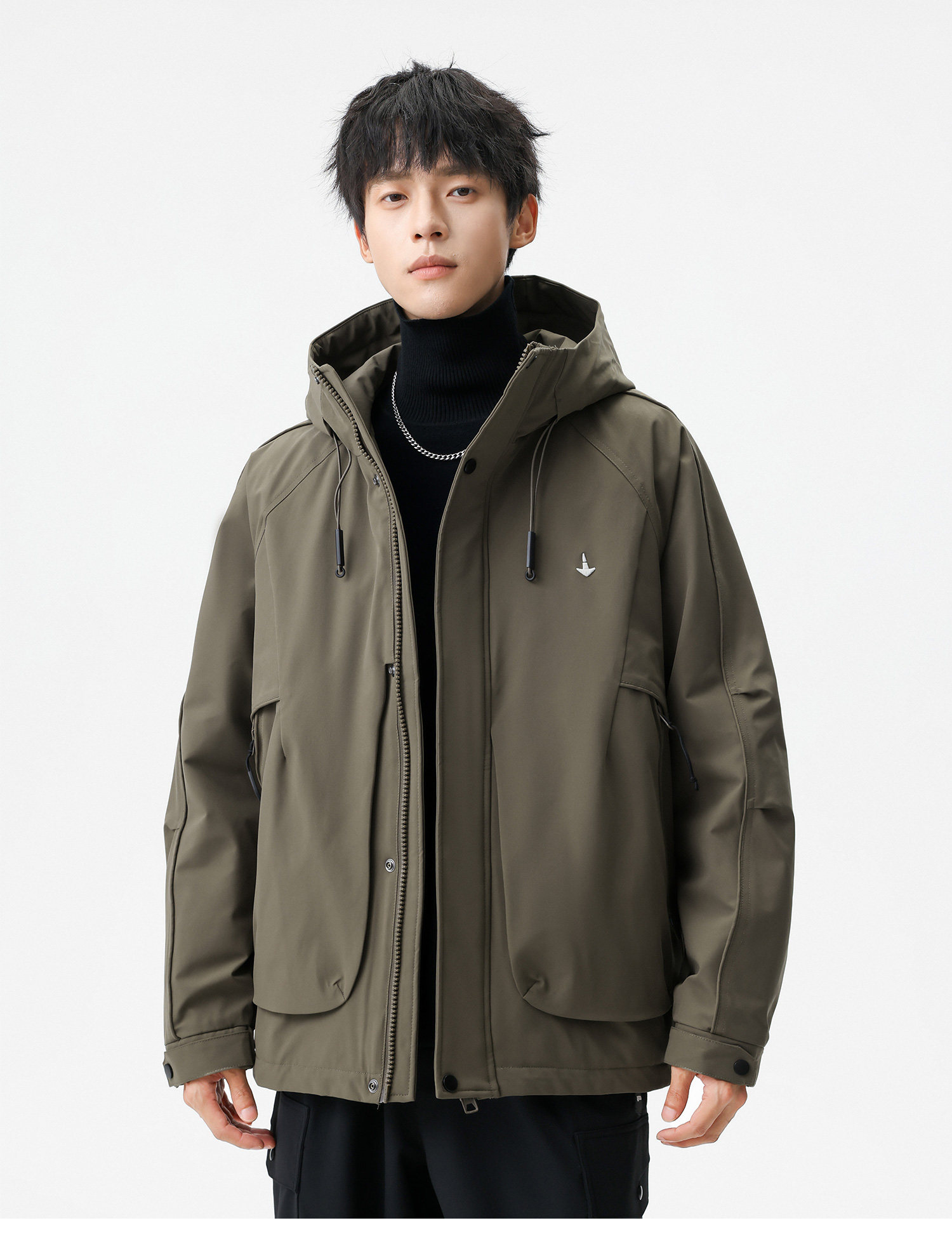 Men's Short Hooded Cotton Jacket in Workwear Style, Functional and Trendy Brand Clothing