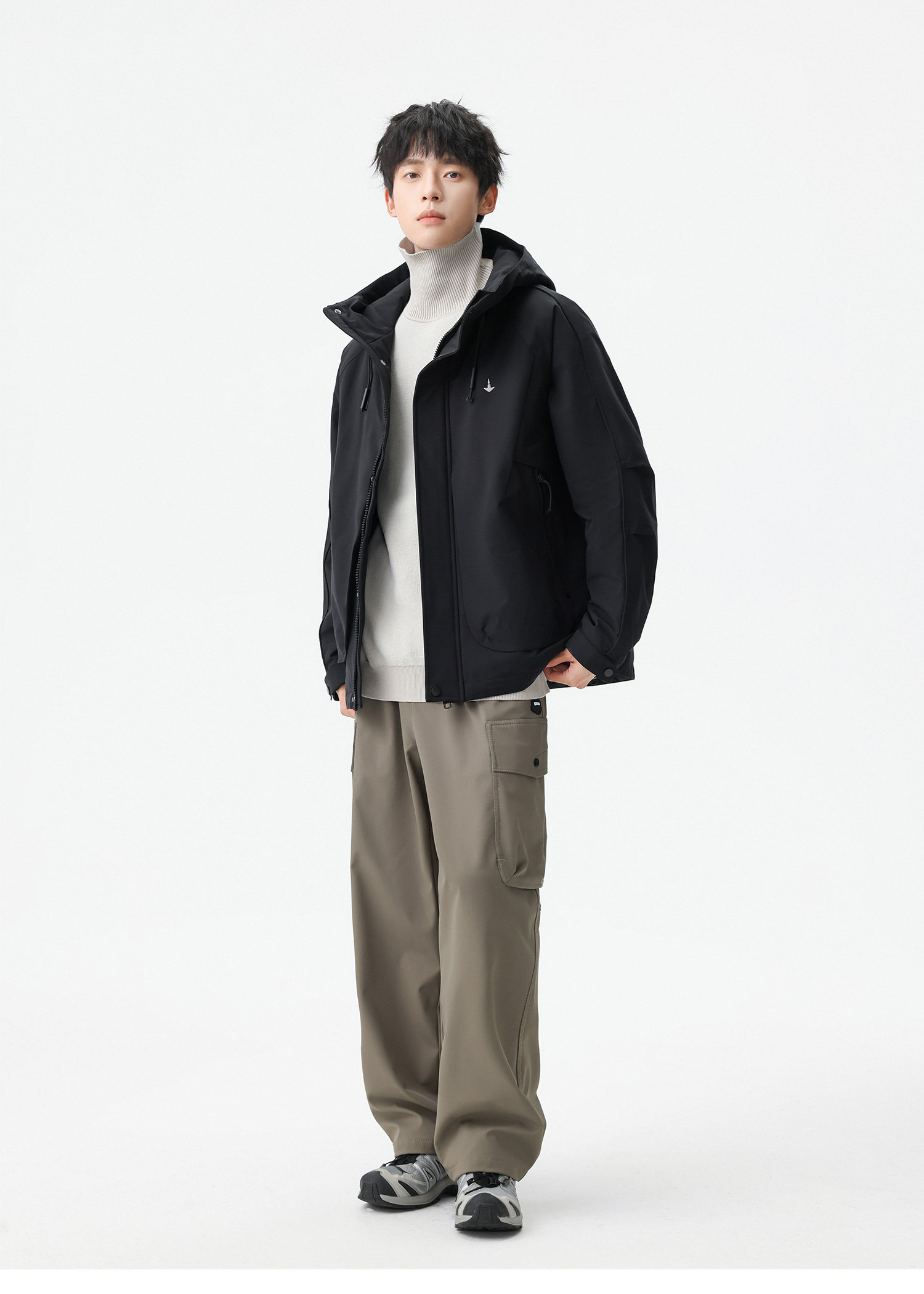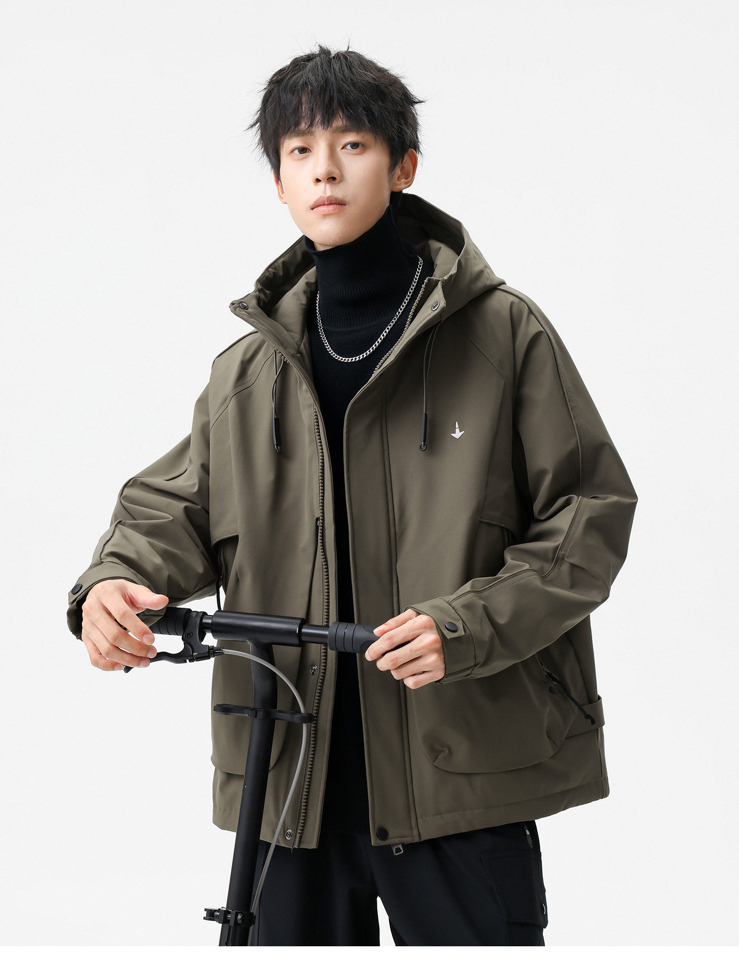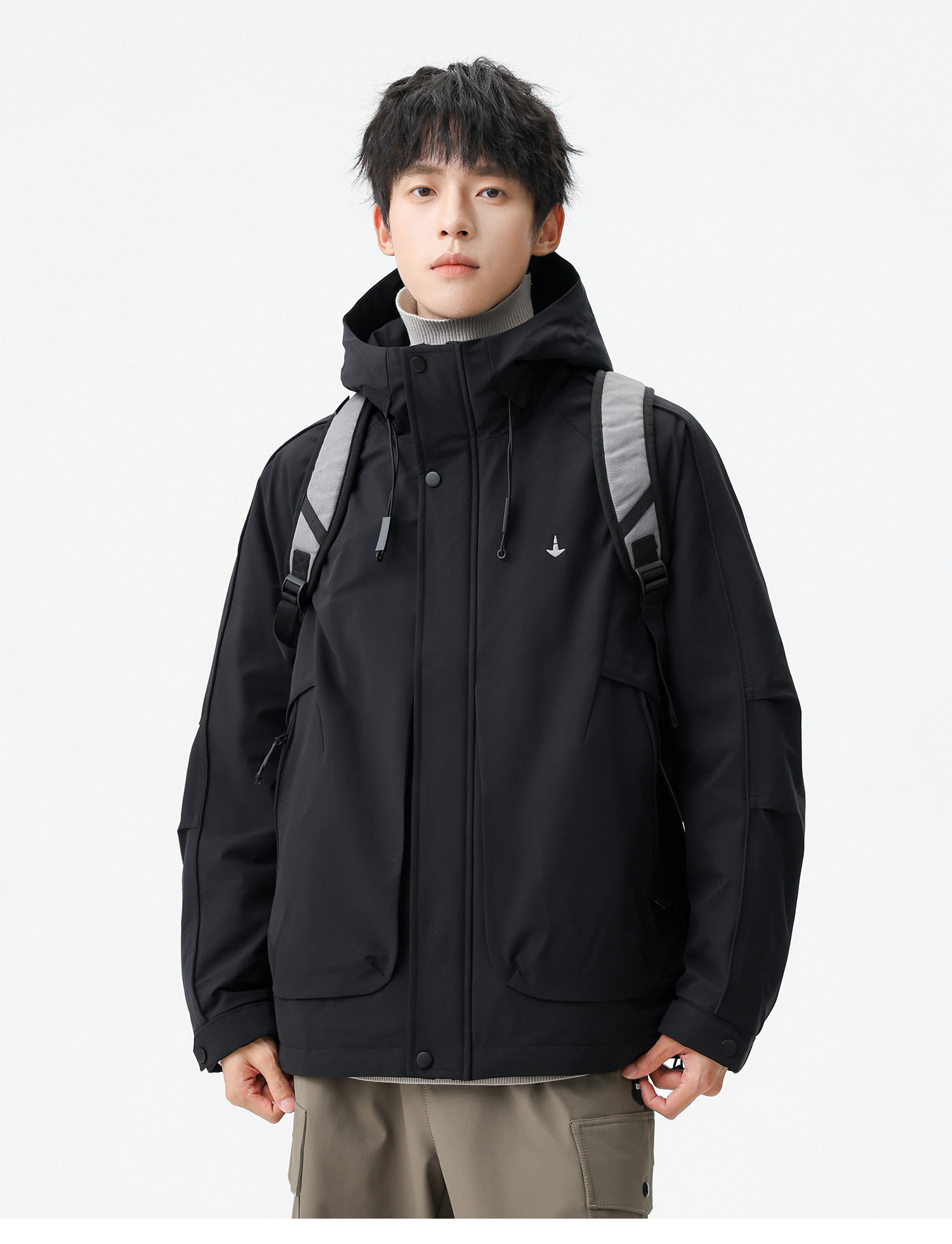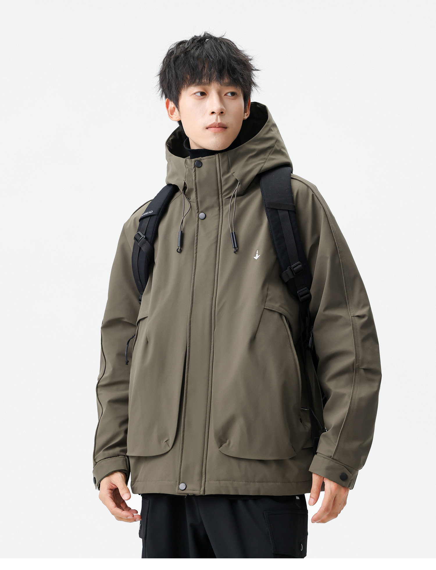 Men's Short Hooded Cotton Jacket in Workwear Style, Functional and Trendy Brand Clothing
