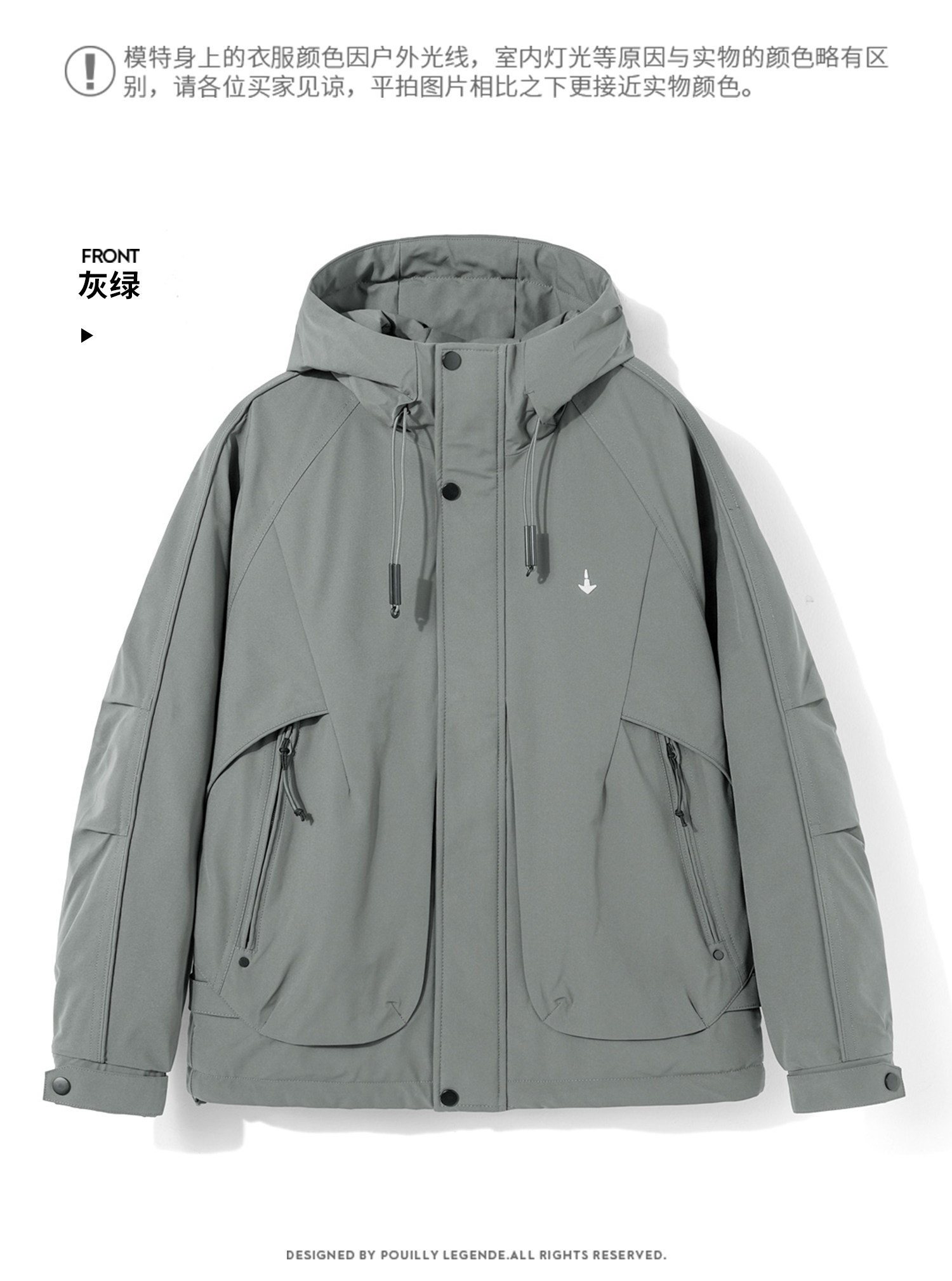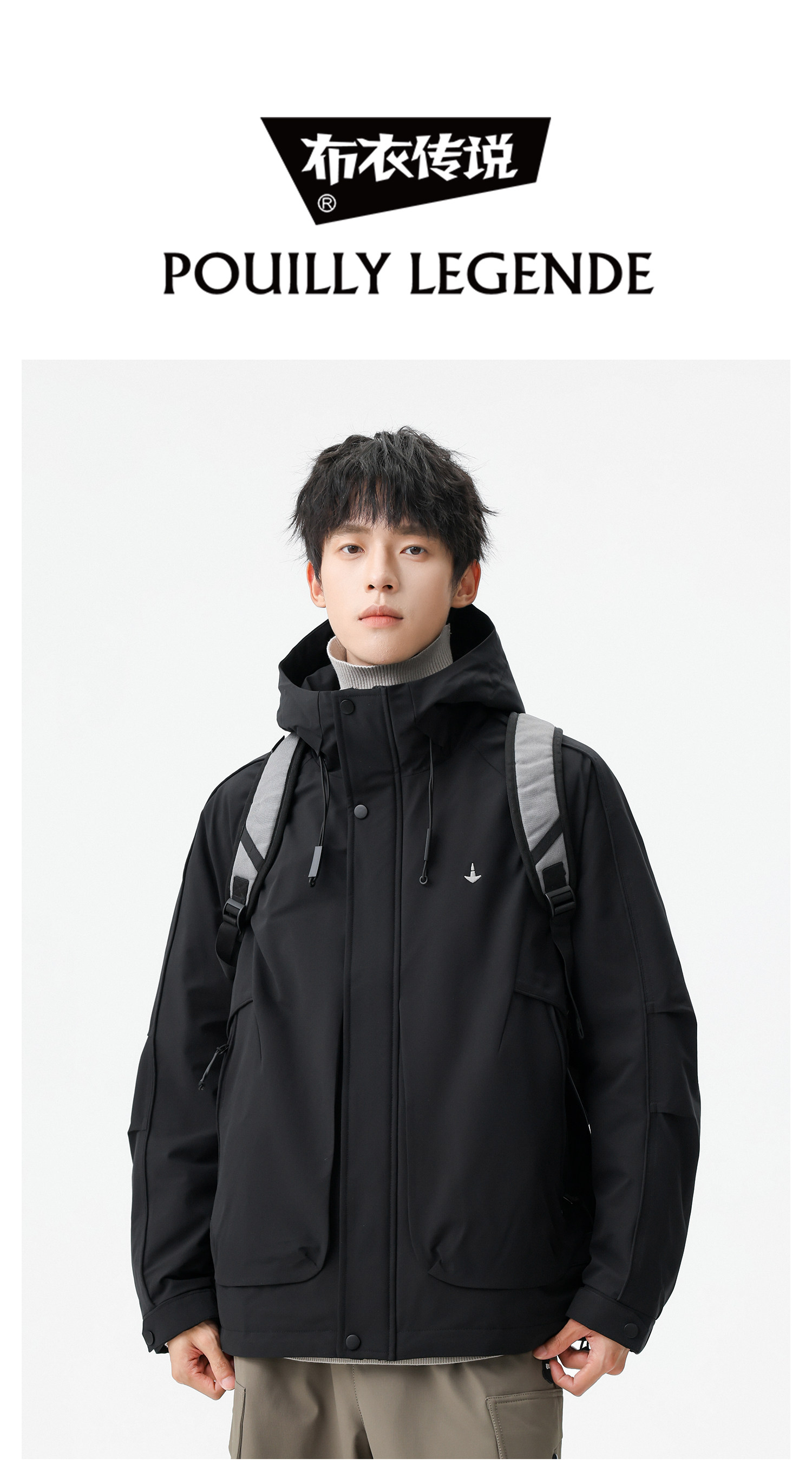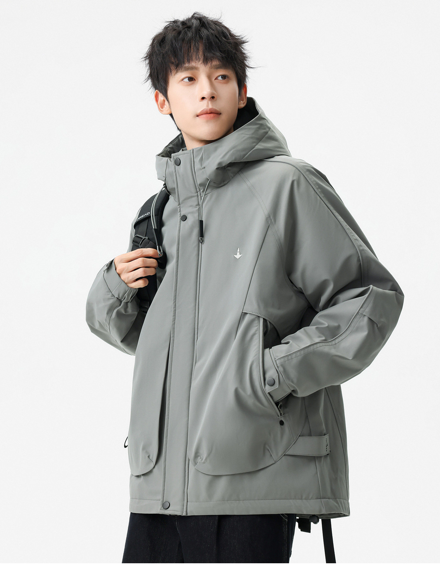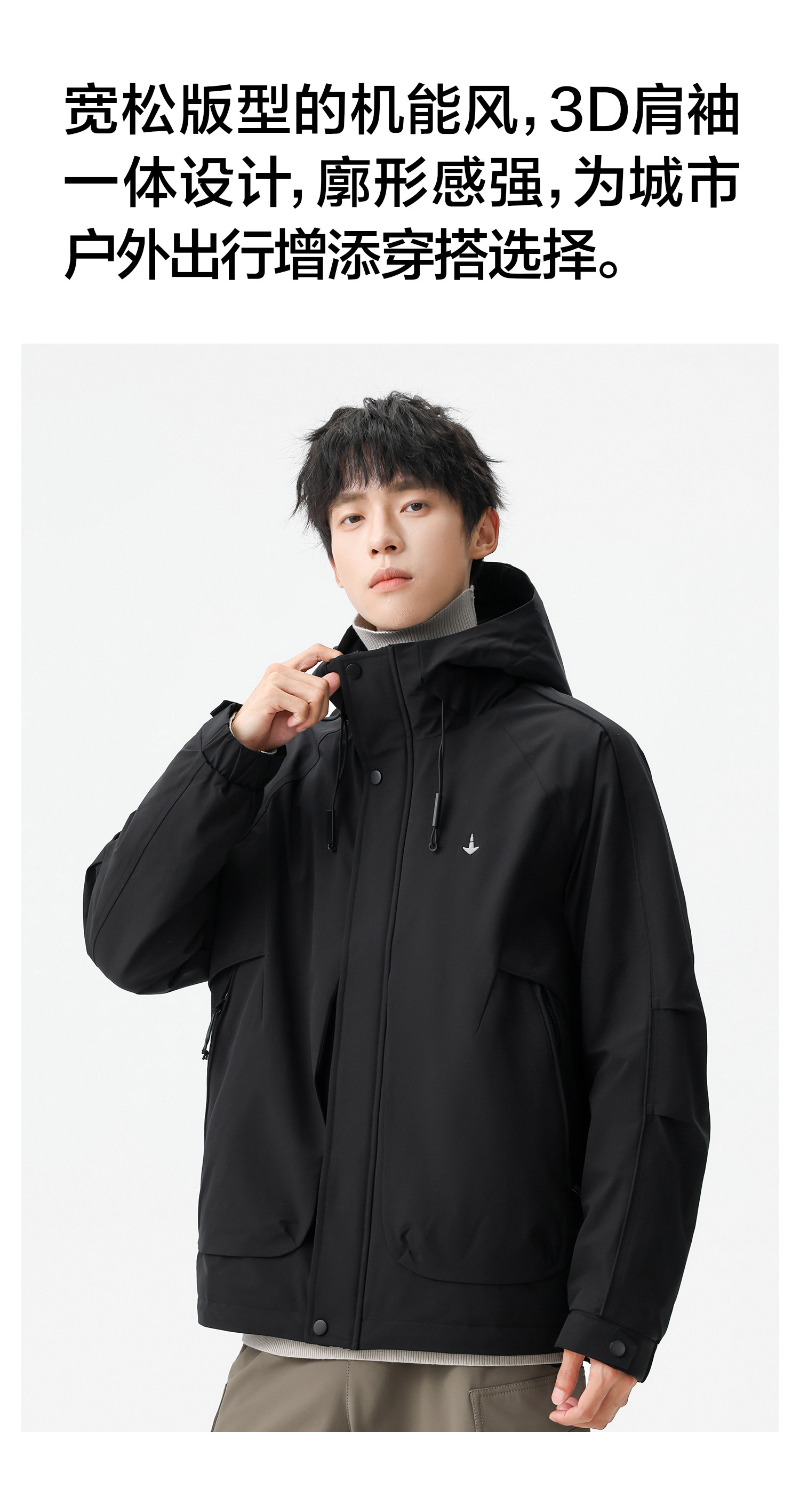 Men's Short Hooded Cotton Jacket in Workwear Style, Functional and Trendy Brand Clothing
