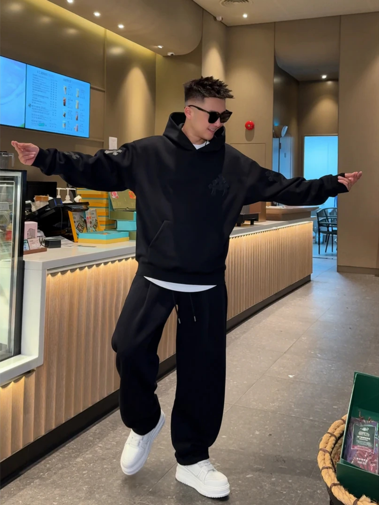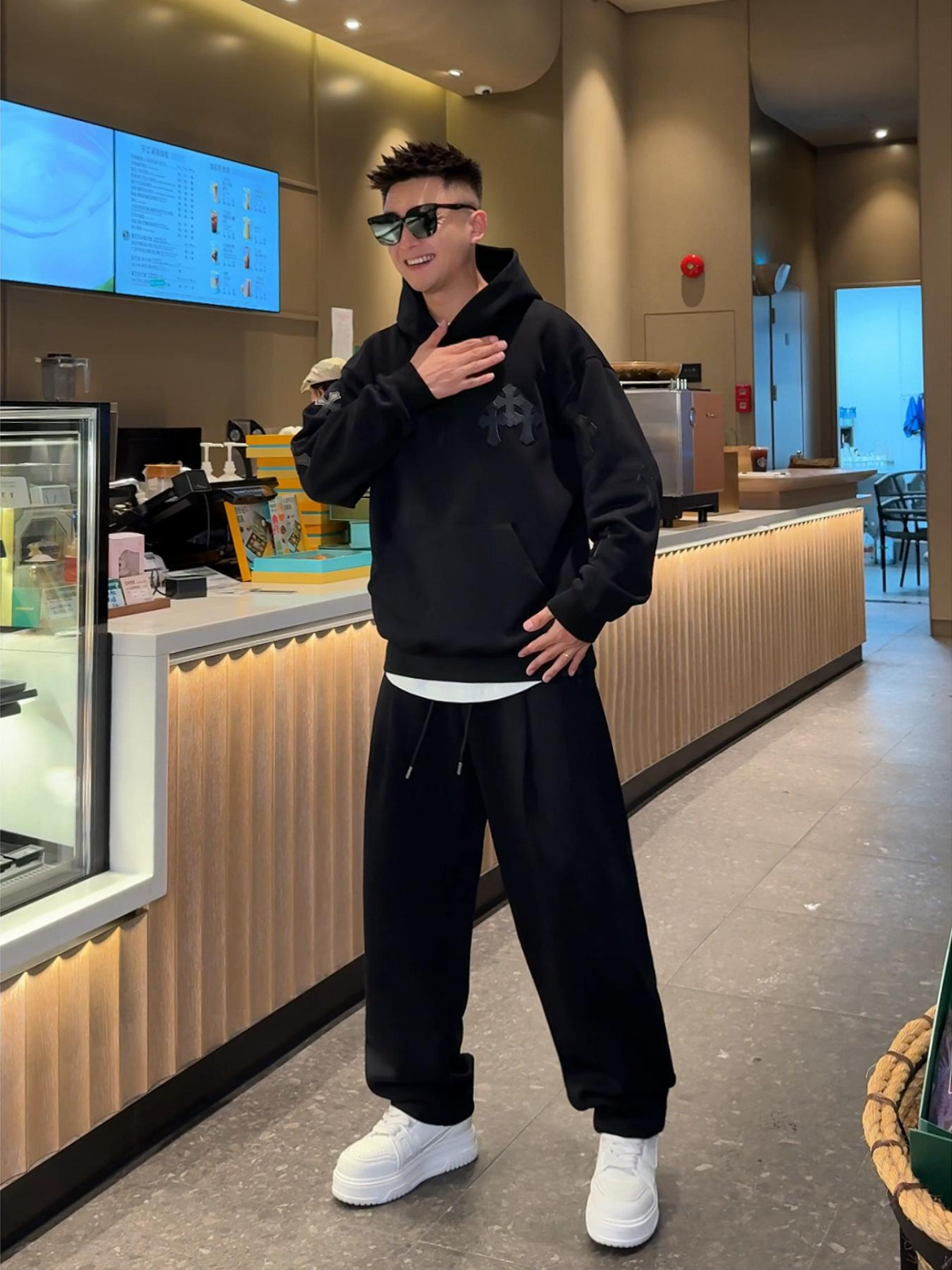 Autumn High-Quality Men's Suit Casual Hooded Sweatshirt High Street Cross Pattern Design Scimitar Sweatpants Two-Piece Set Trendy
