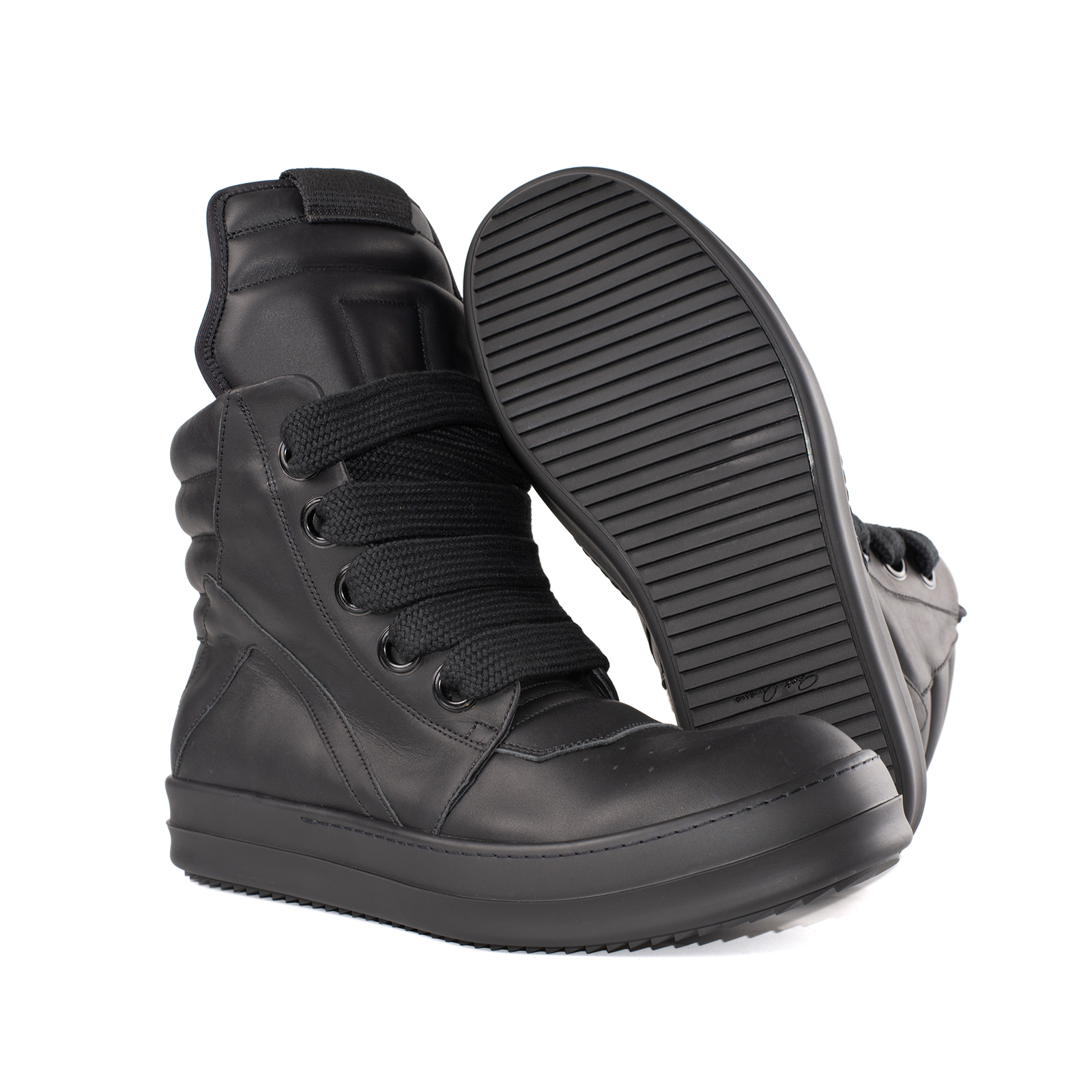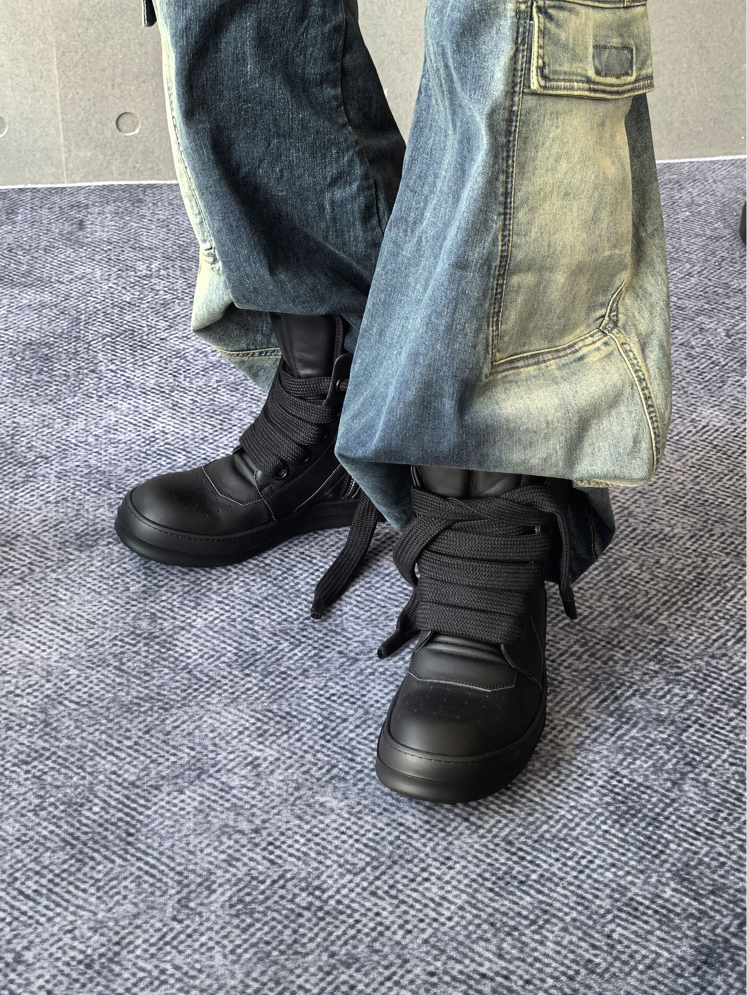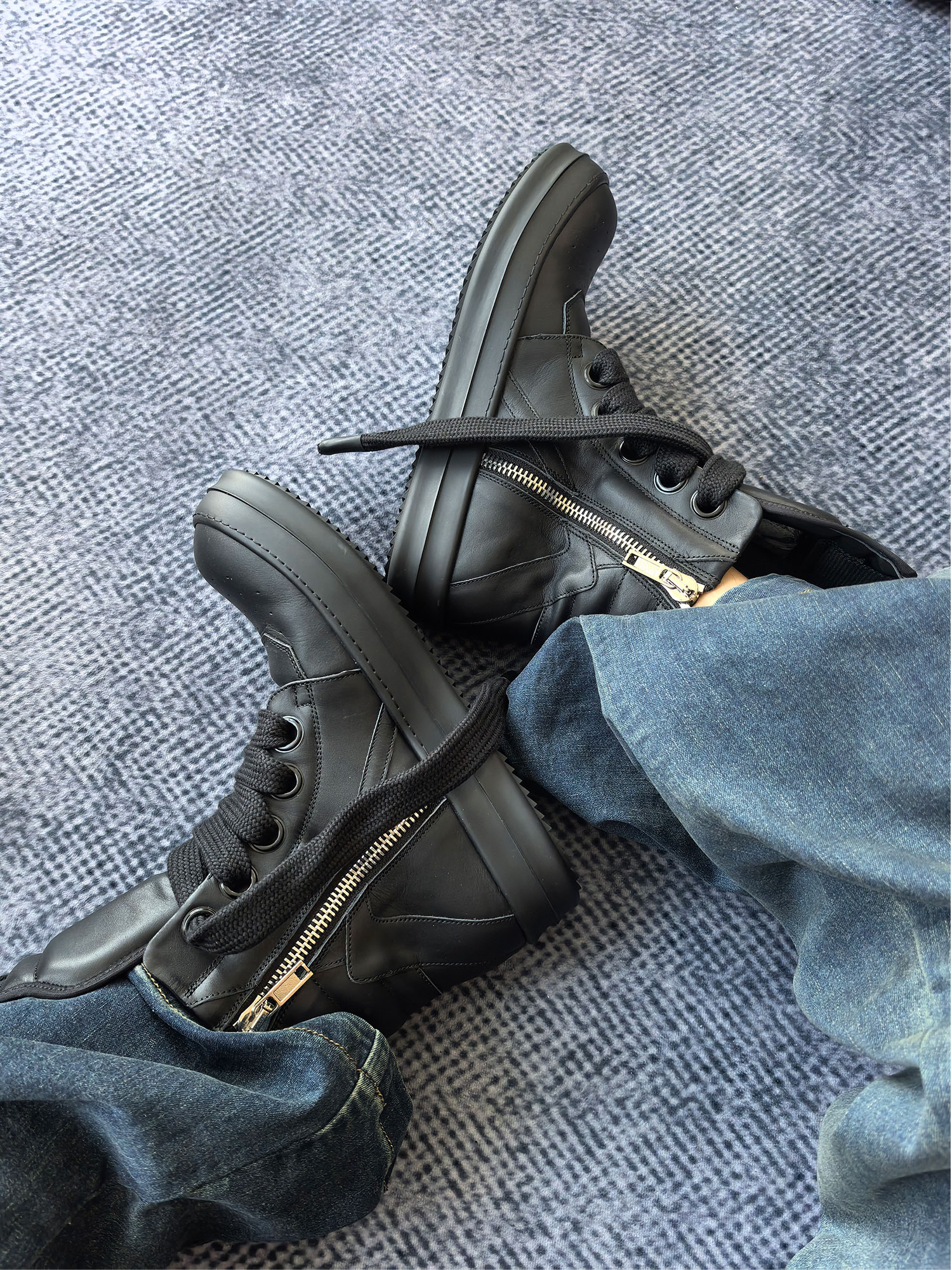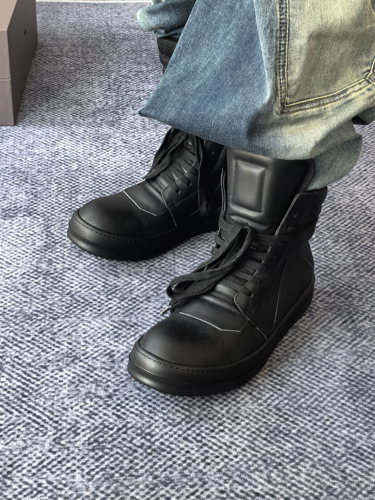 Rog Ro New High-Top Thick-Soled Triangular Leather Upper High-Top Unisex Shoes Black Warrior