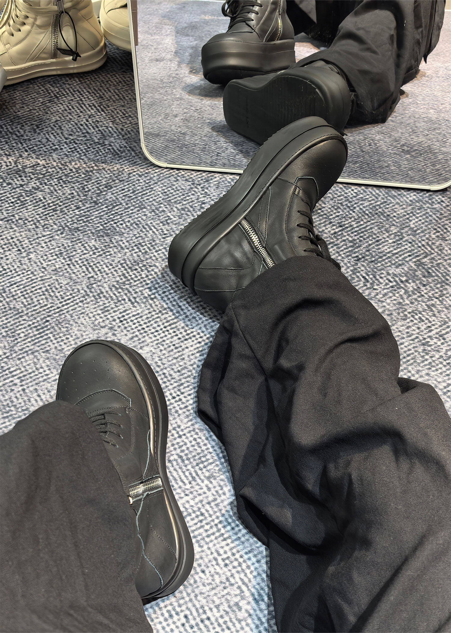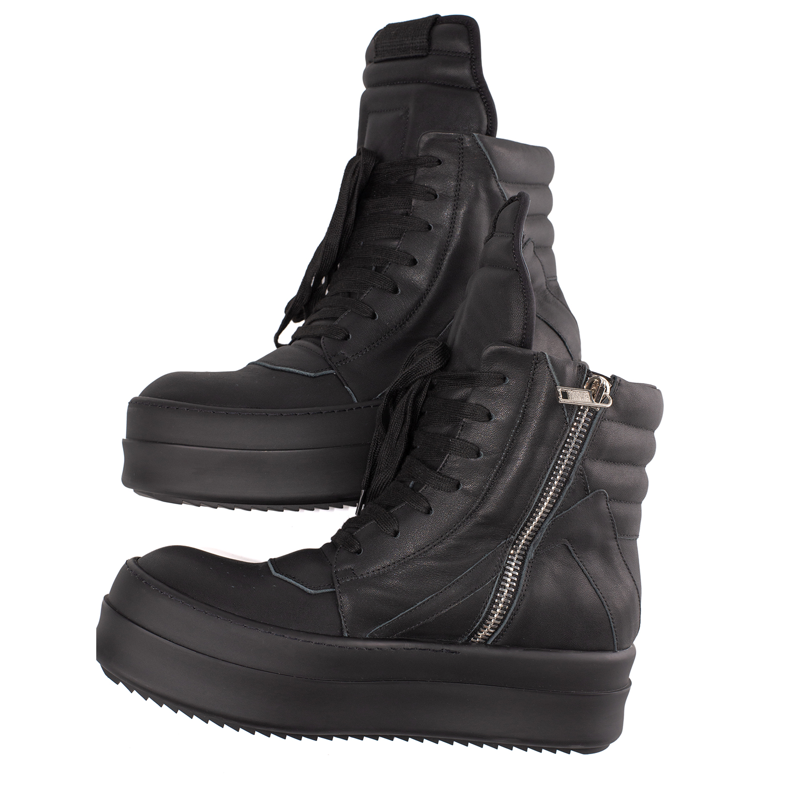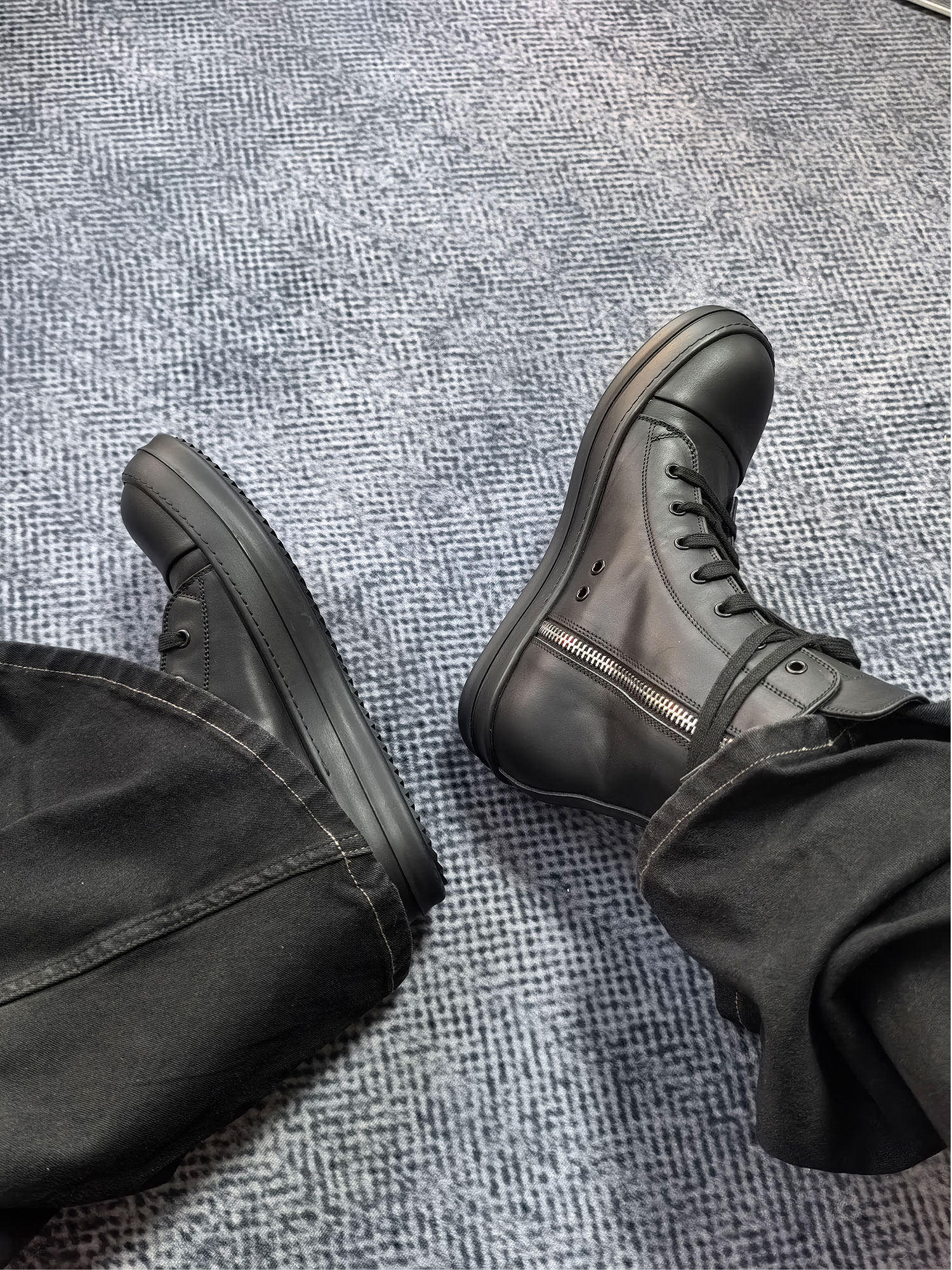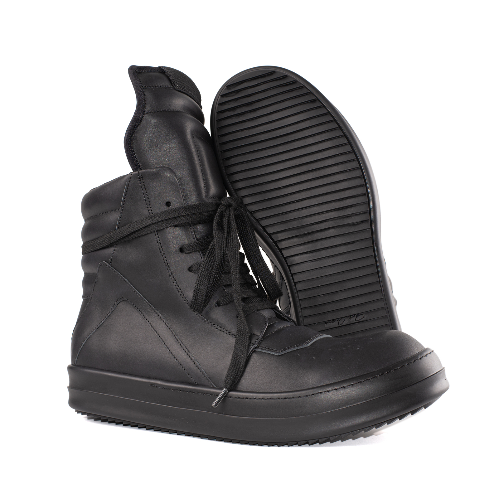 Rog Ro New High-Top Thick-Soled Triangular Leather Upper High-Top Unisex Shoes Black Warrior
