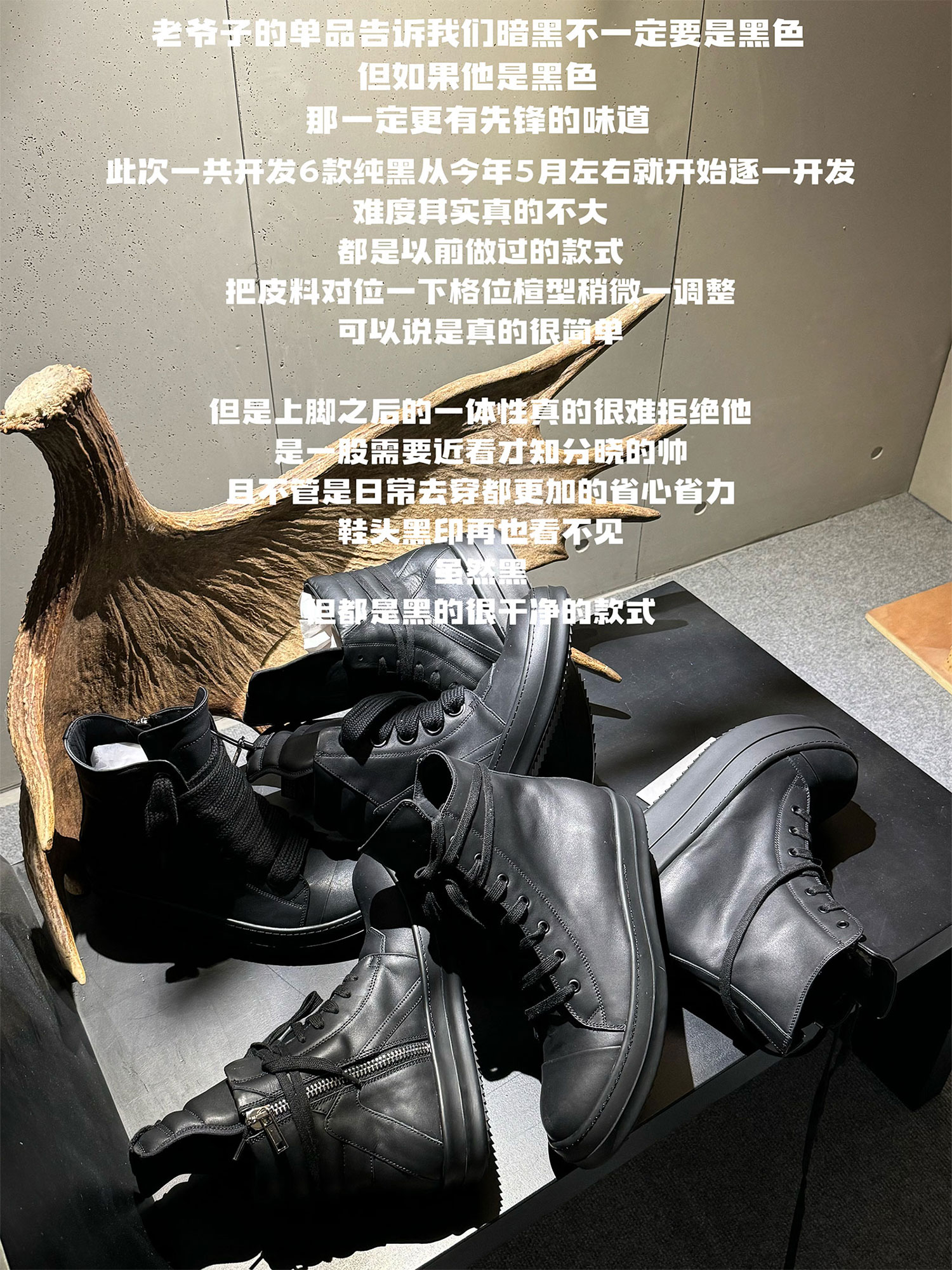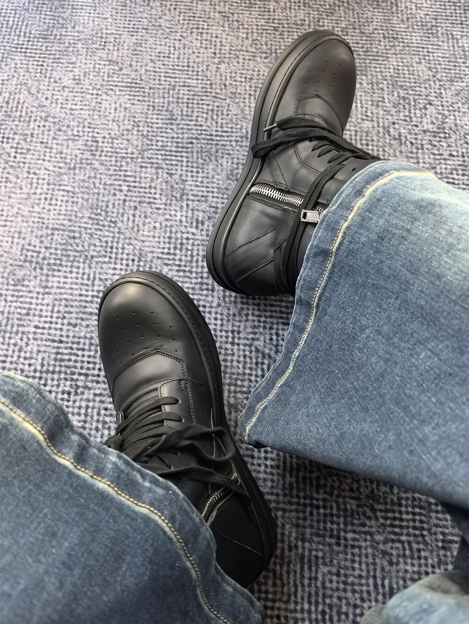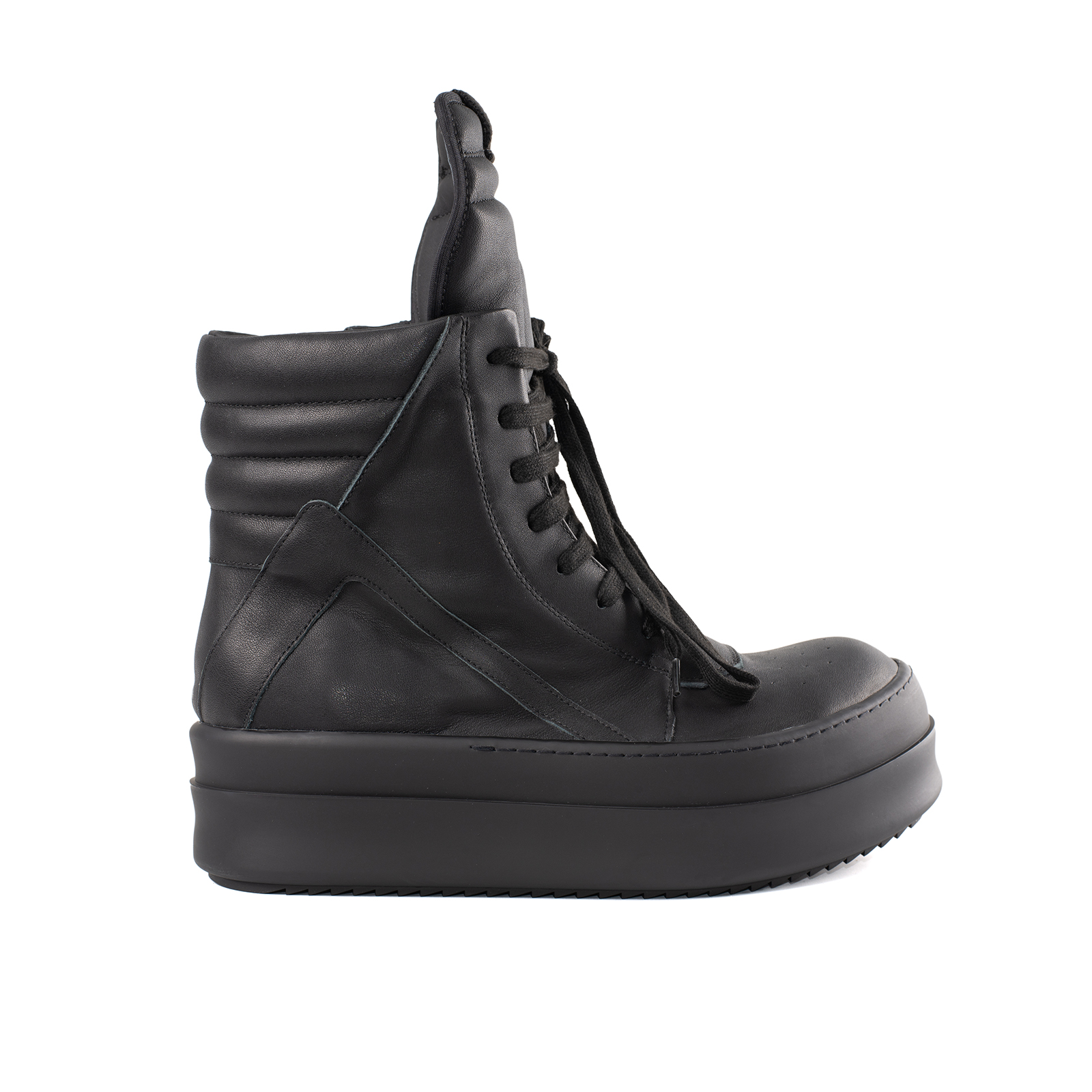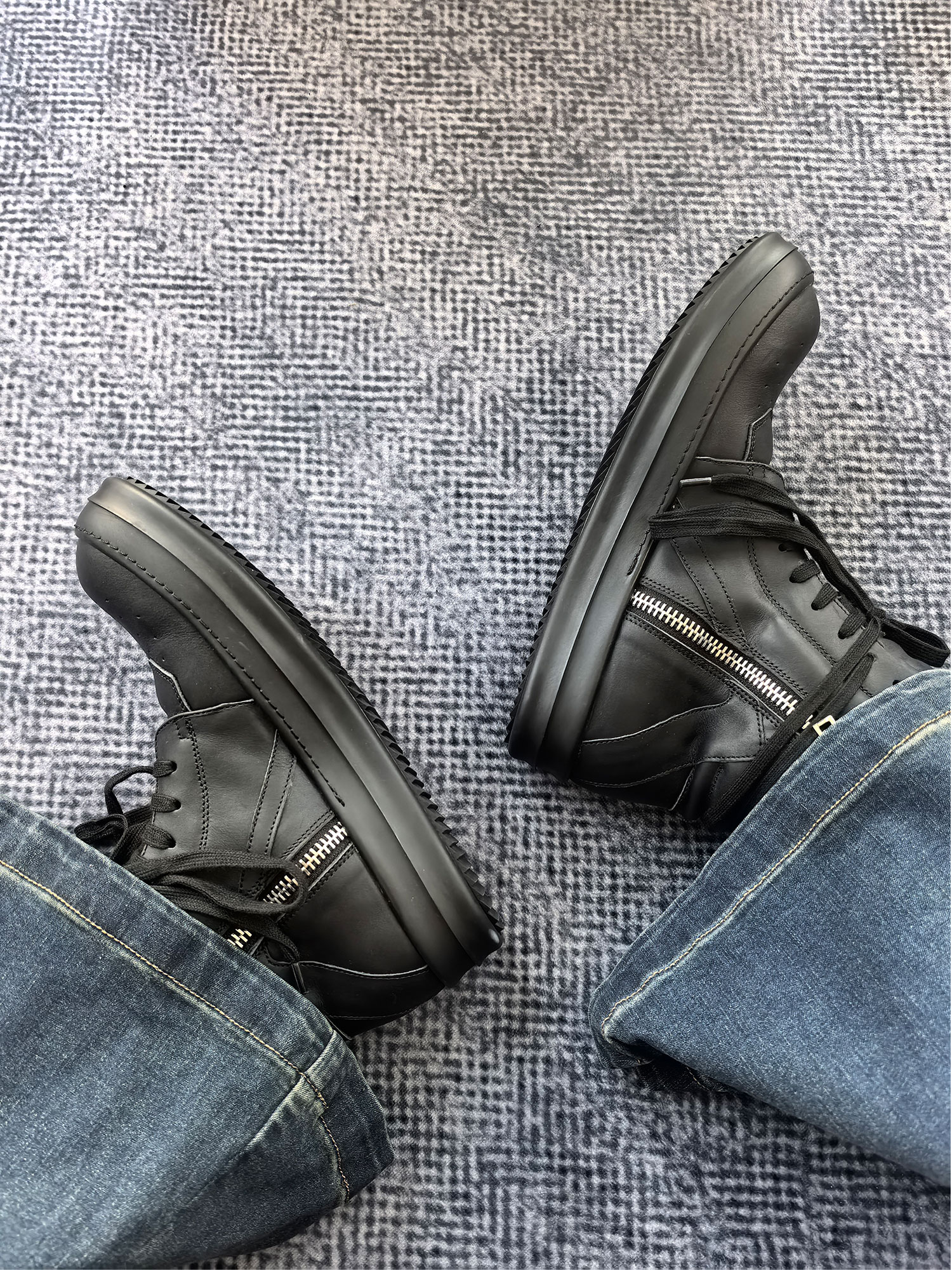 Rog Ro New High-Top Thick-Soled Triangular Leather Upper High-Top Unisex Shoes Black Warrior
