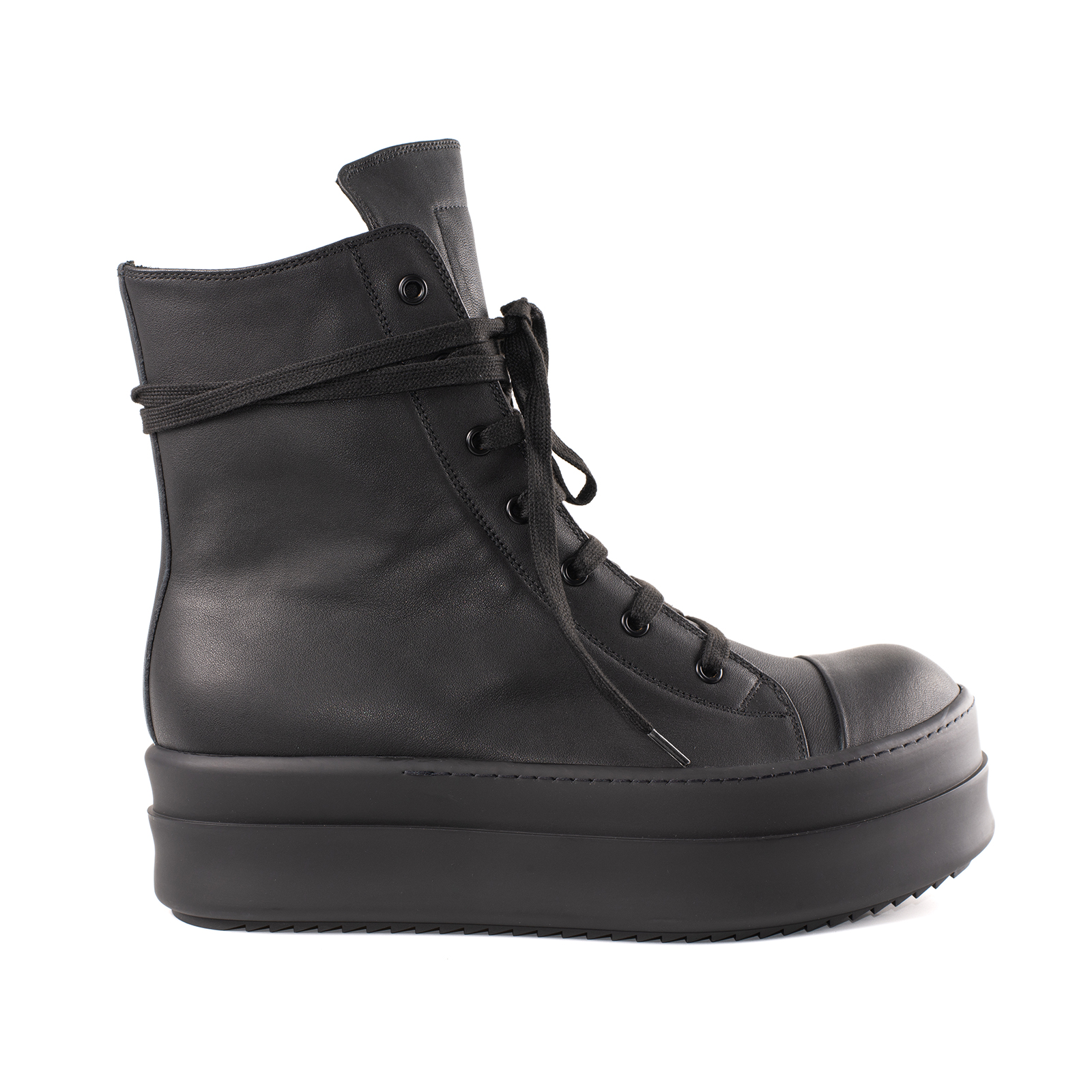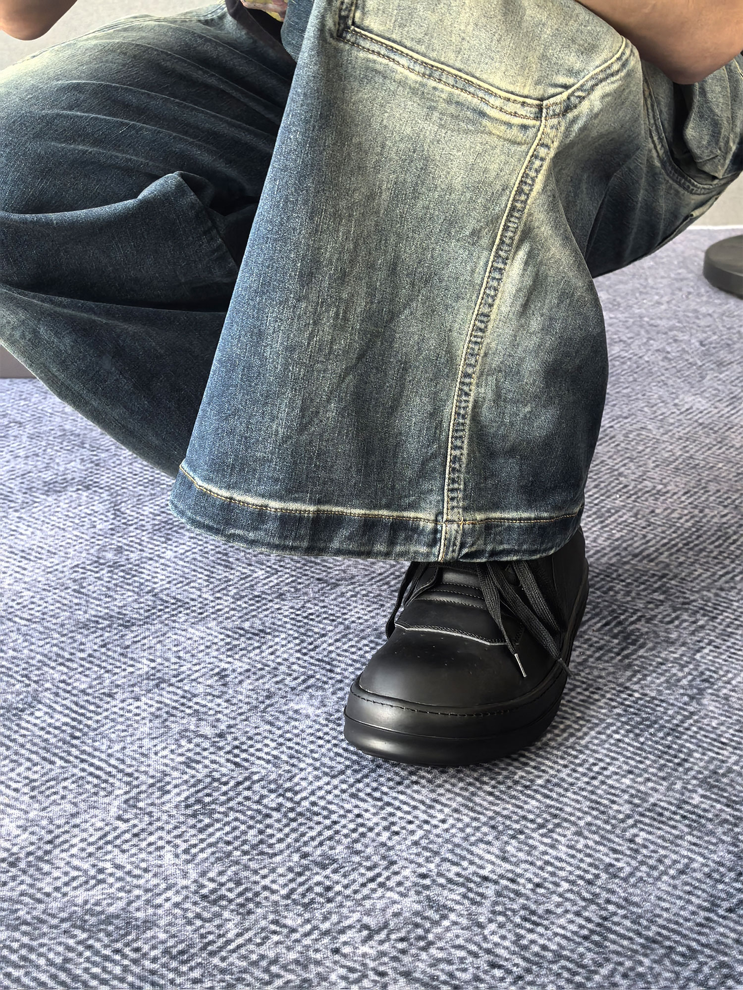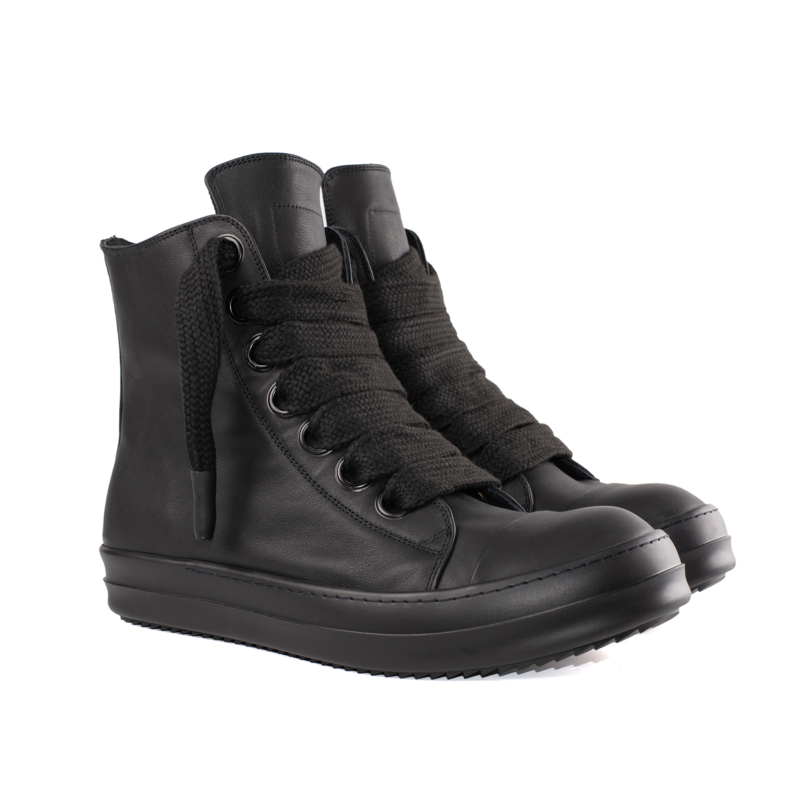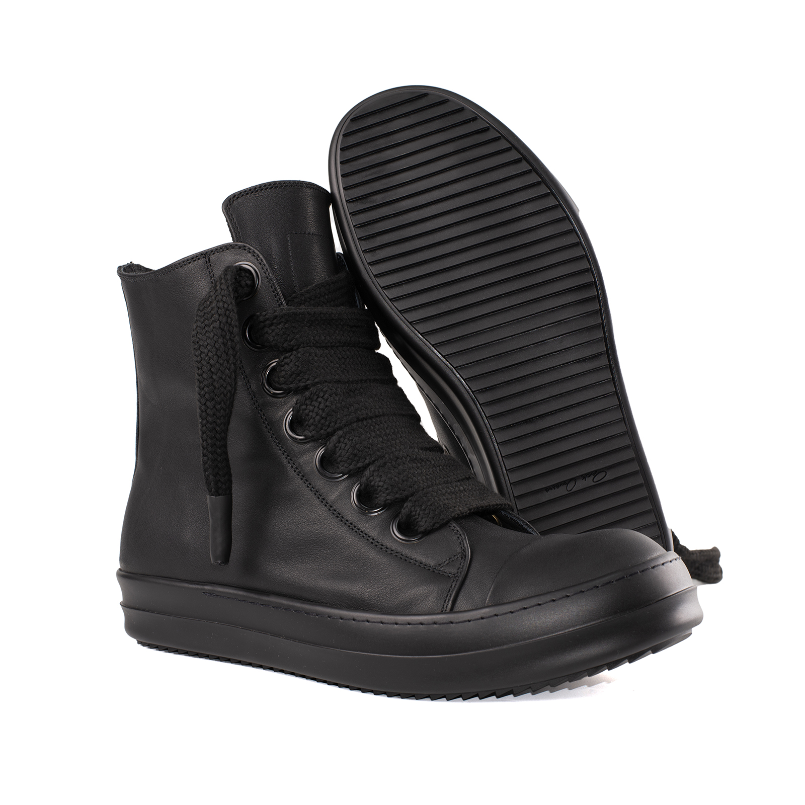 Rog Ro New High-Top Thick-Soled Triangular Leather Upper High-Top Unisex Shoes Black Warrior