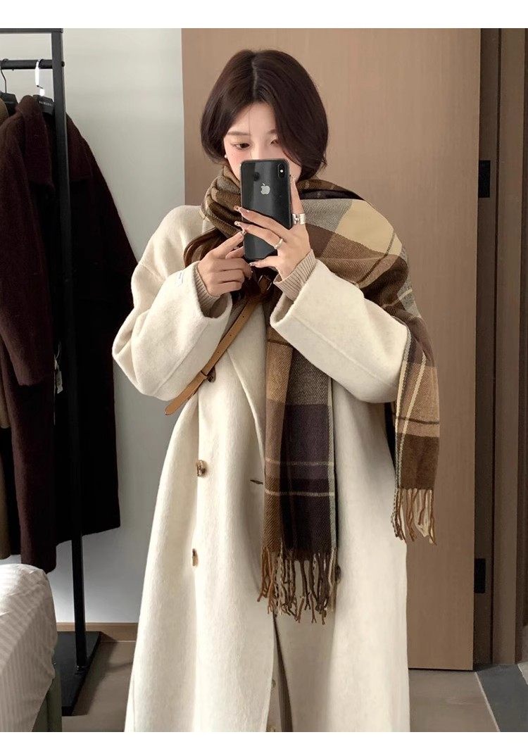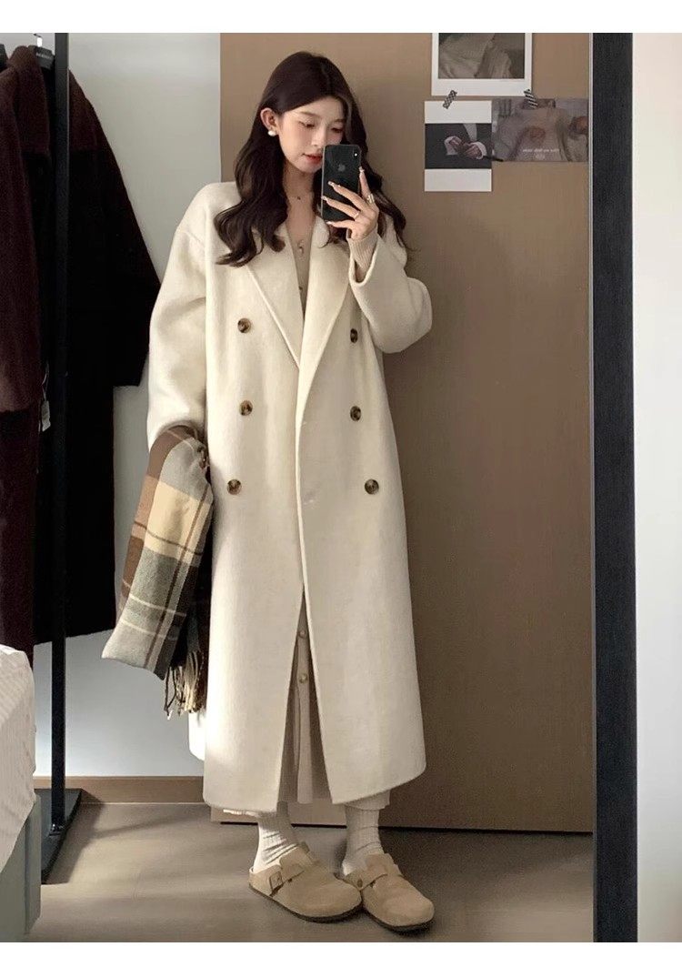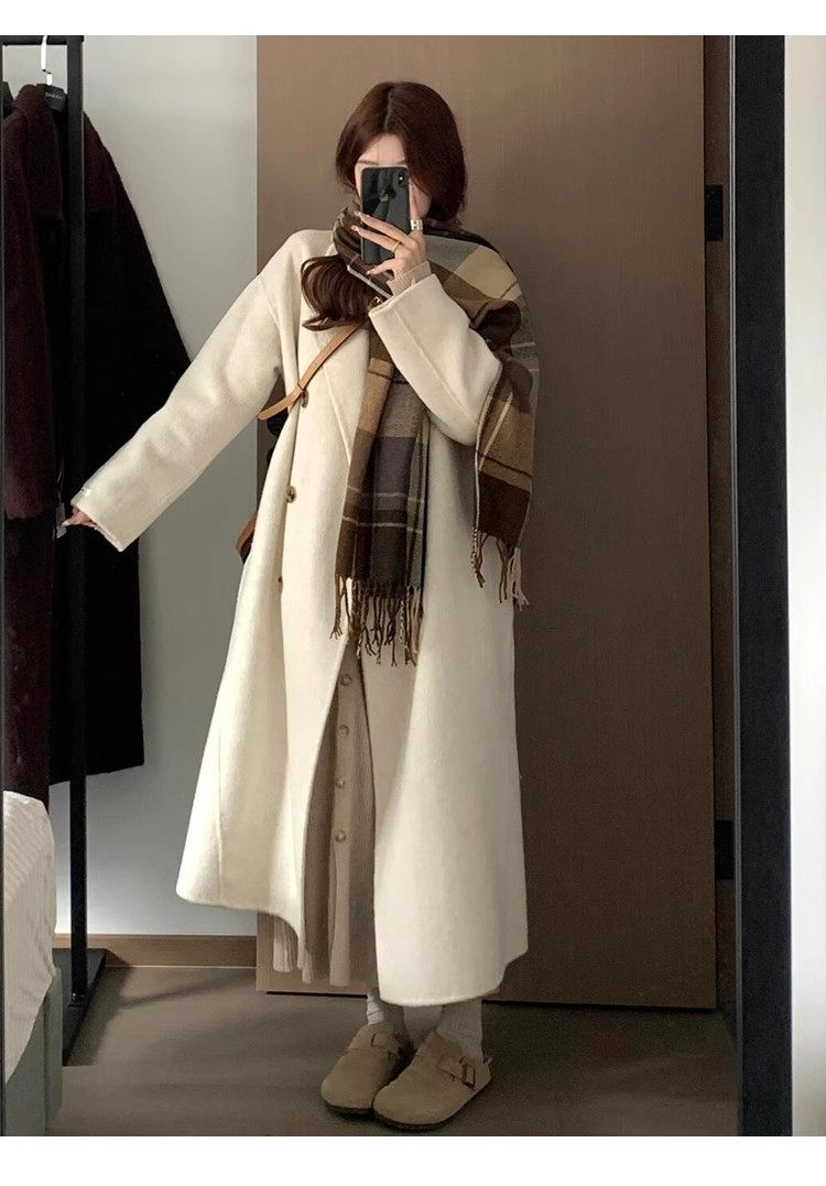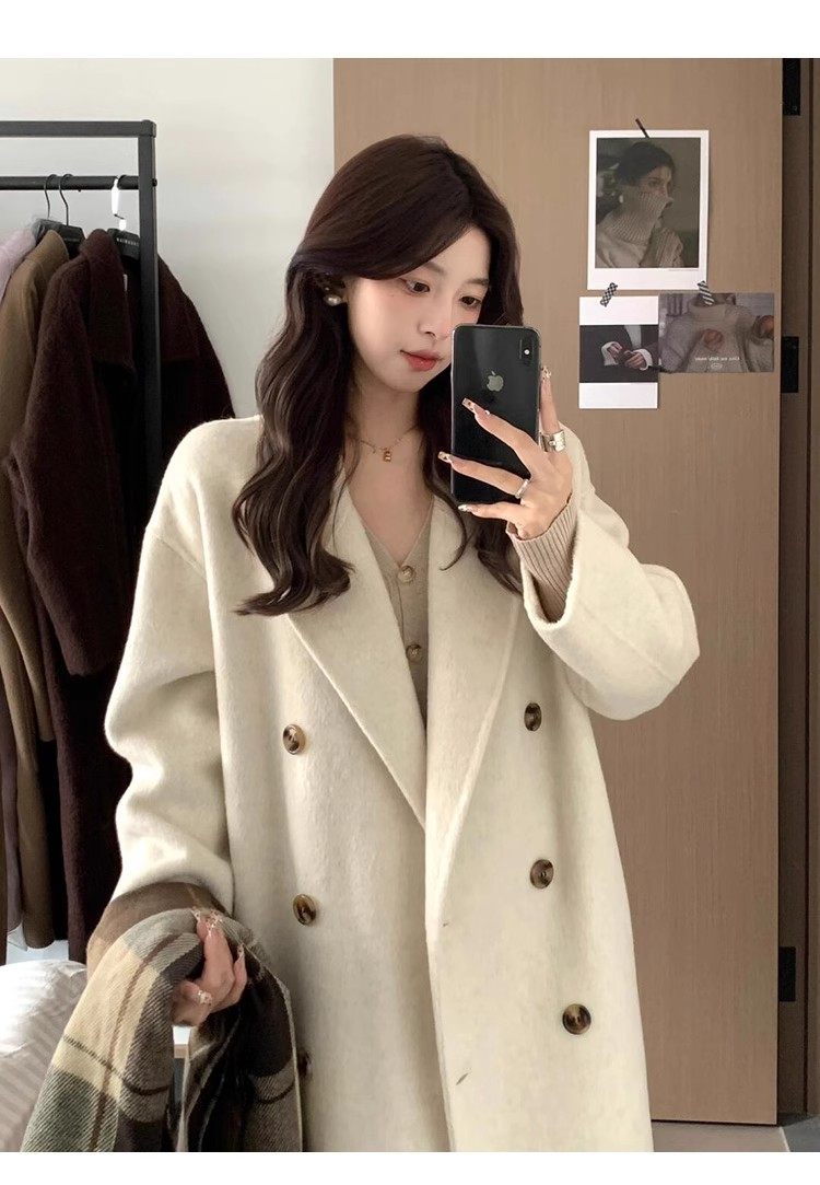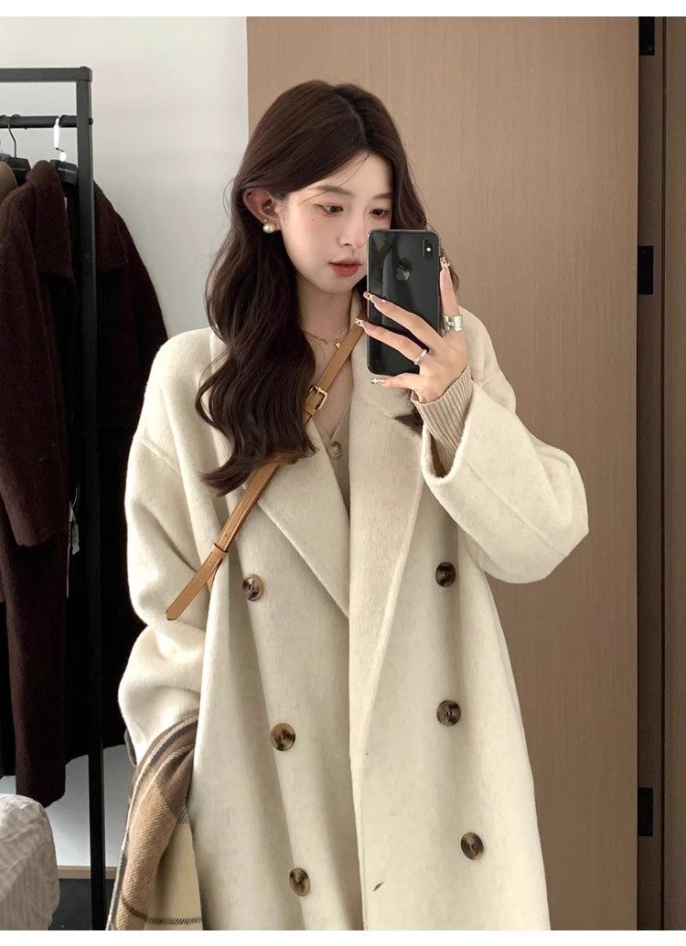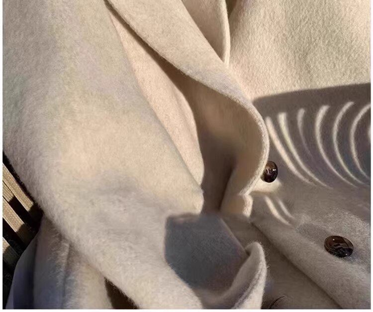 High-End White Wool Cashmere Coat for Women 2025 New Autumn and Winter Thickened Petite Woolen Coat