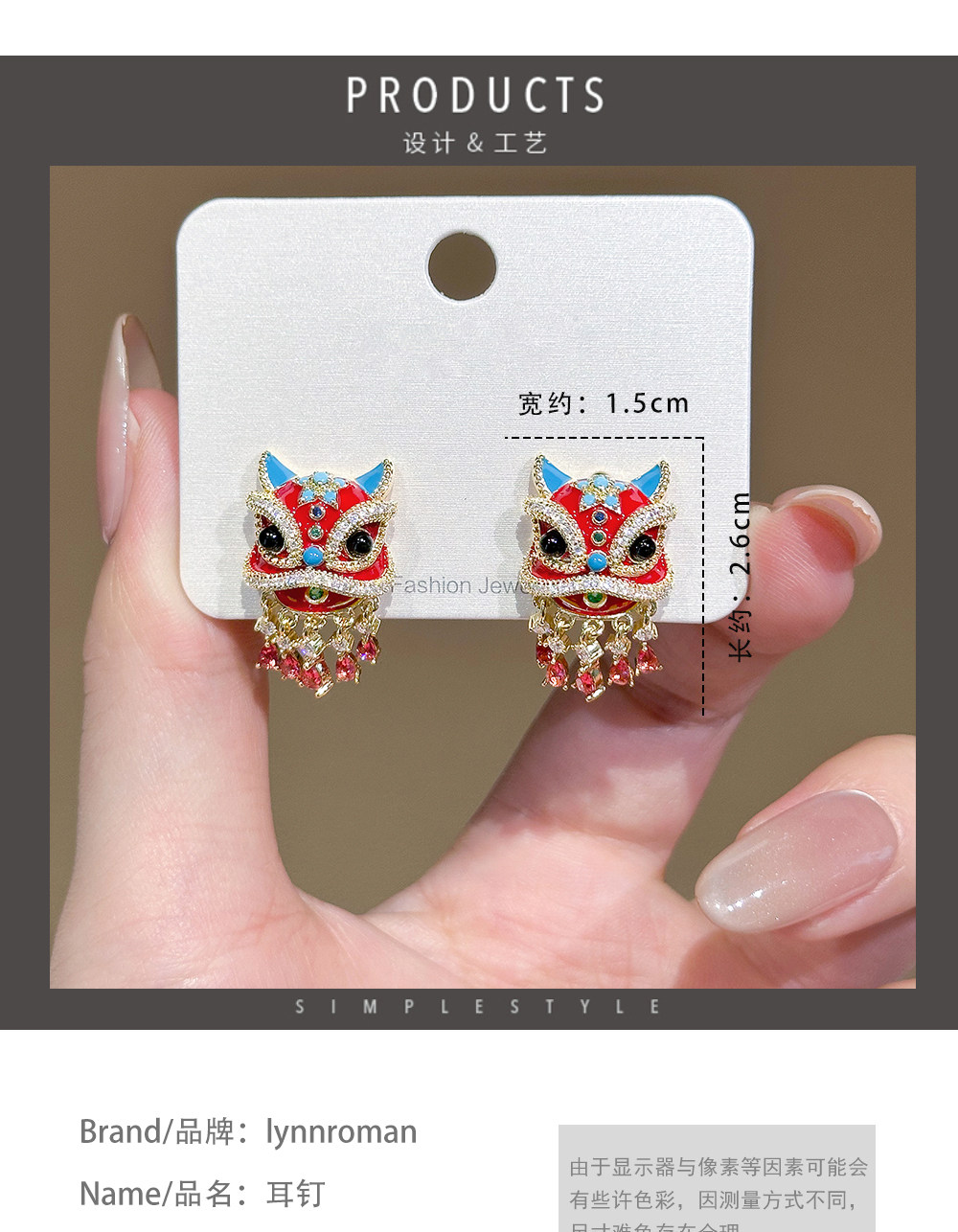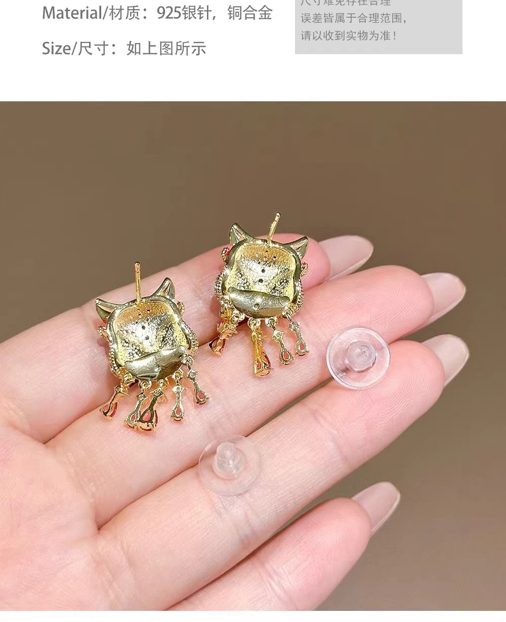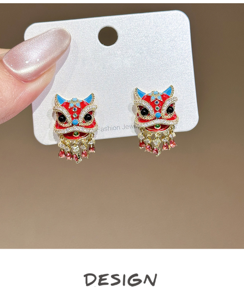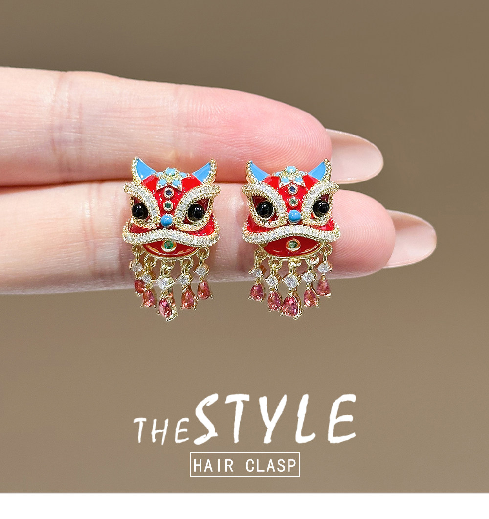 Lynnroman Lion Dance Earrings for Women, High-End Chinese Style, Exquisite, Fashionable, Versatile, Niche Design Earrings