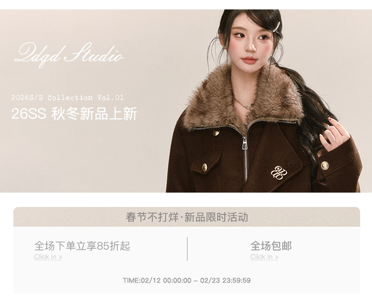 Qdqd Retro High-End Style Stand-Collar Woolen Coat, New Winter Model with Tie Waist for a Slimming Look, Elegant Brown Coat