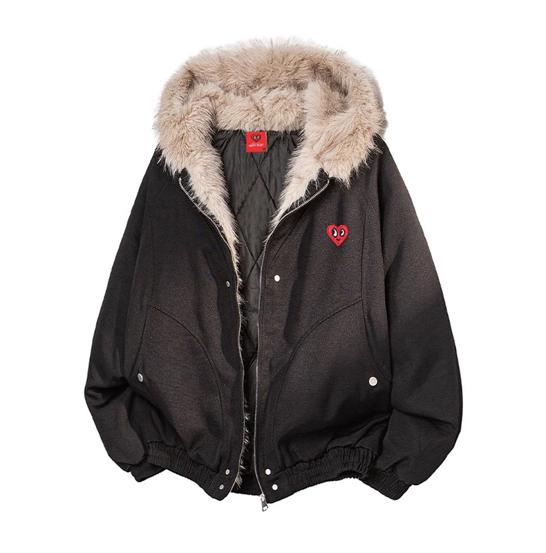 Charles Peach Heart American-Style Mountain Carving Cotton Coat for Men, Winter Cold-Proof Thickened Hooded Trendy Brand Versatile Couple Cotton Jacket