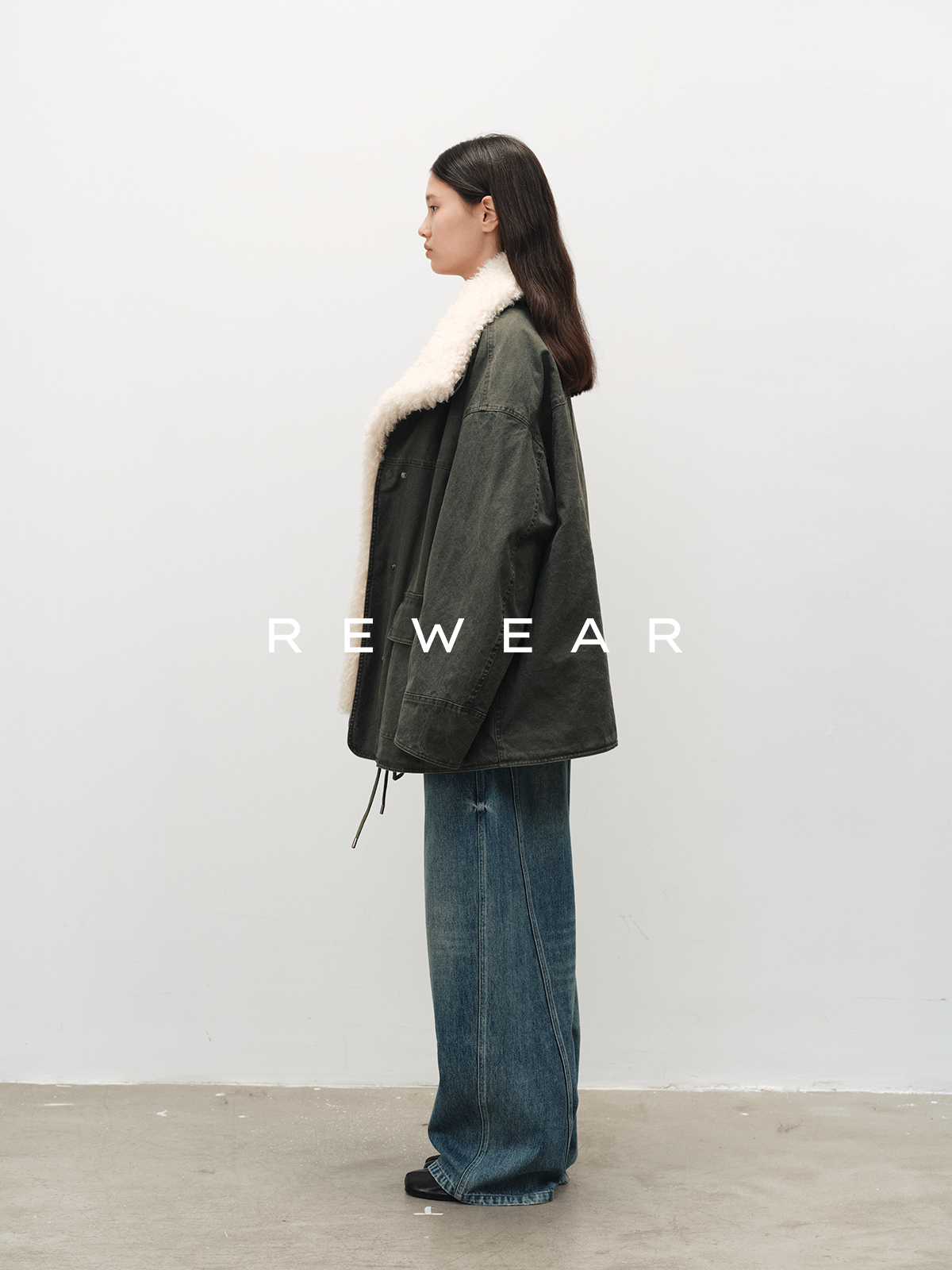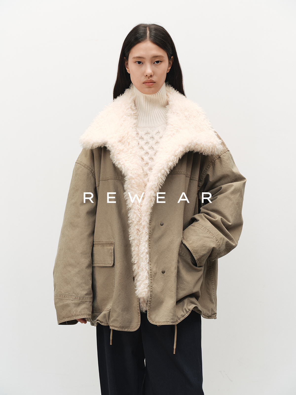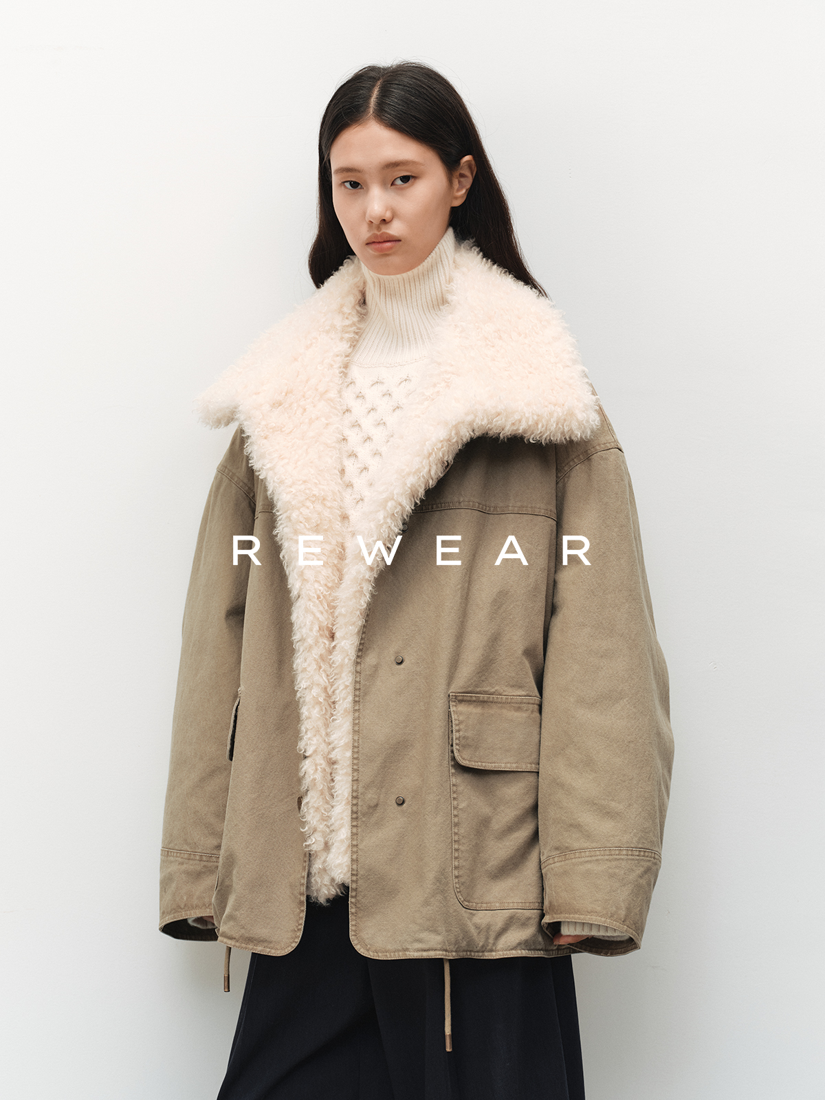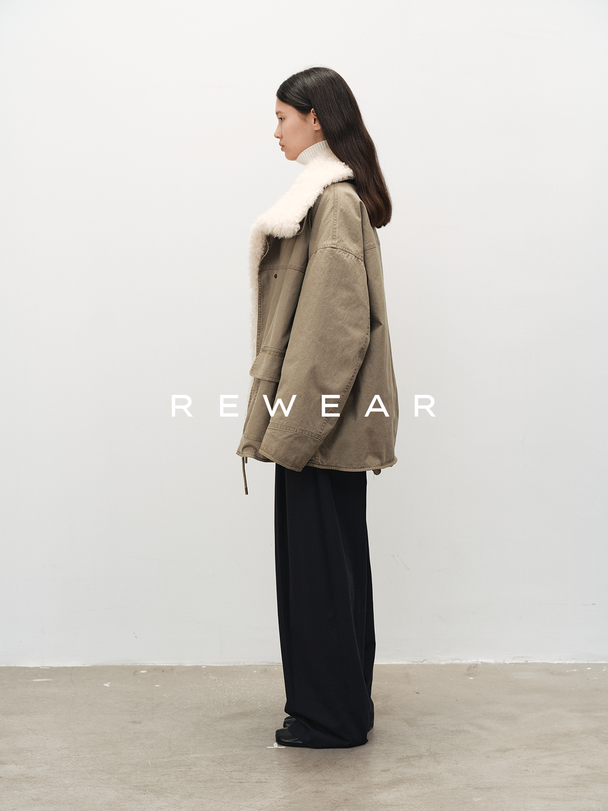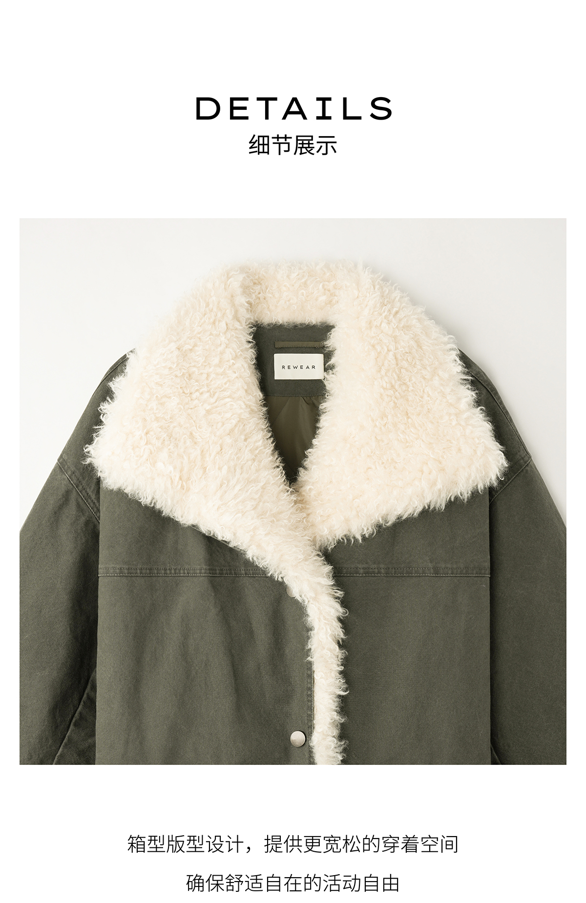 Rewear/Heavy-Duty Enzyme-Washed Cotton Pearl-Sail Wash Faded Detachable Faux Shearling Collar Workwear Parka Cotton Jacket 11355
