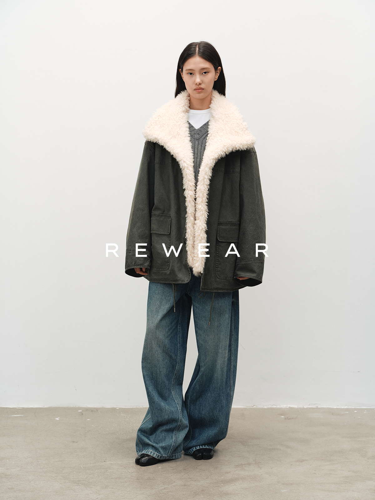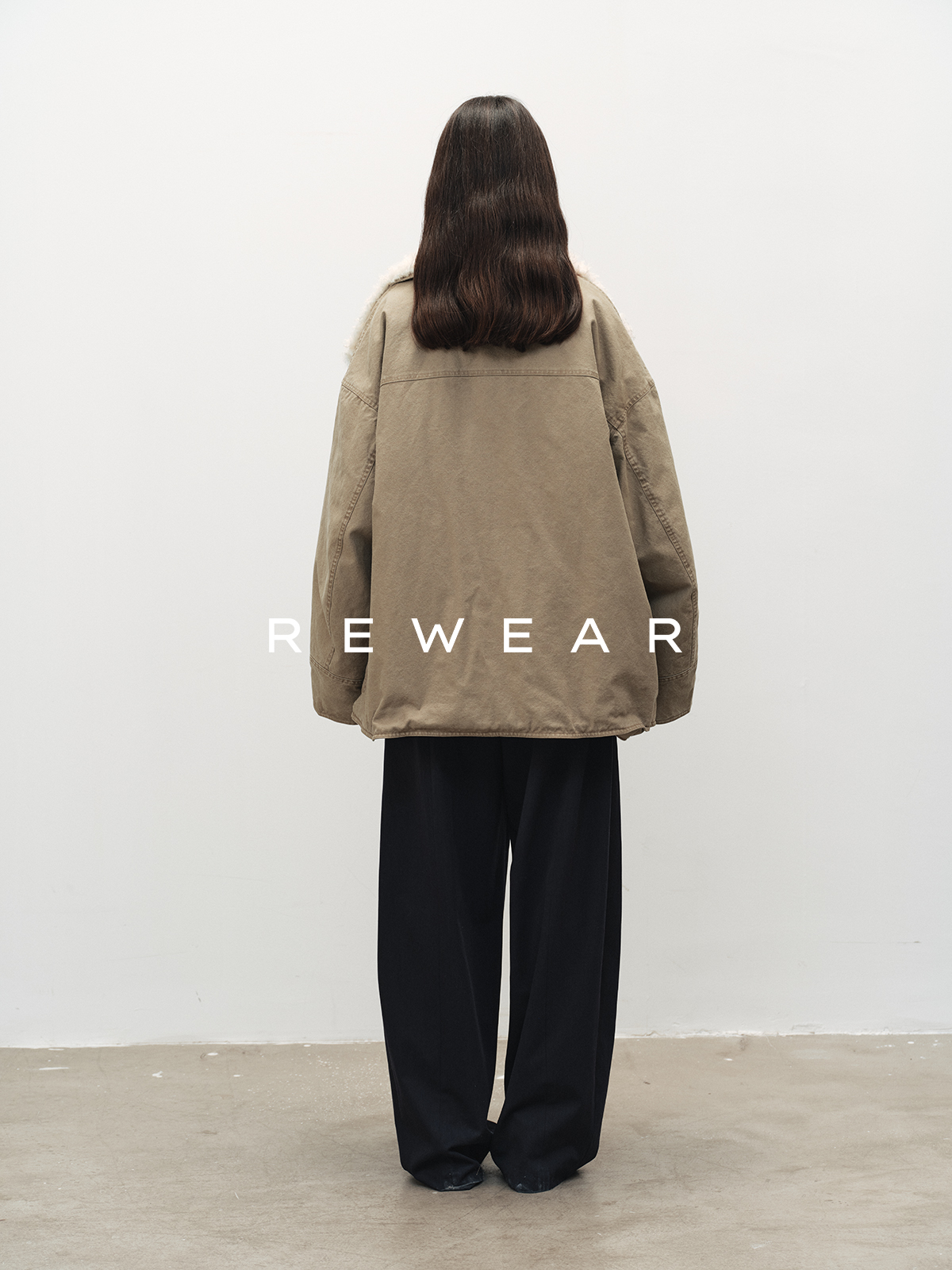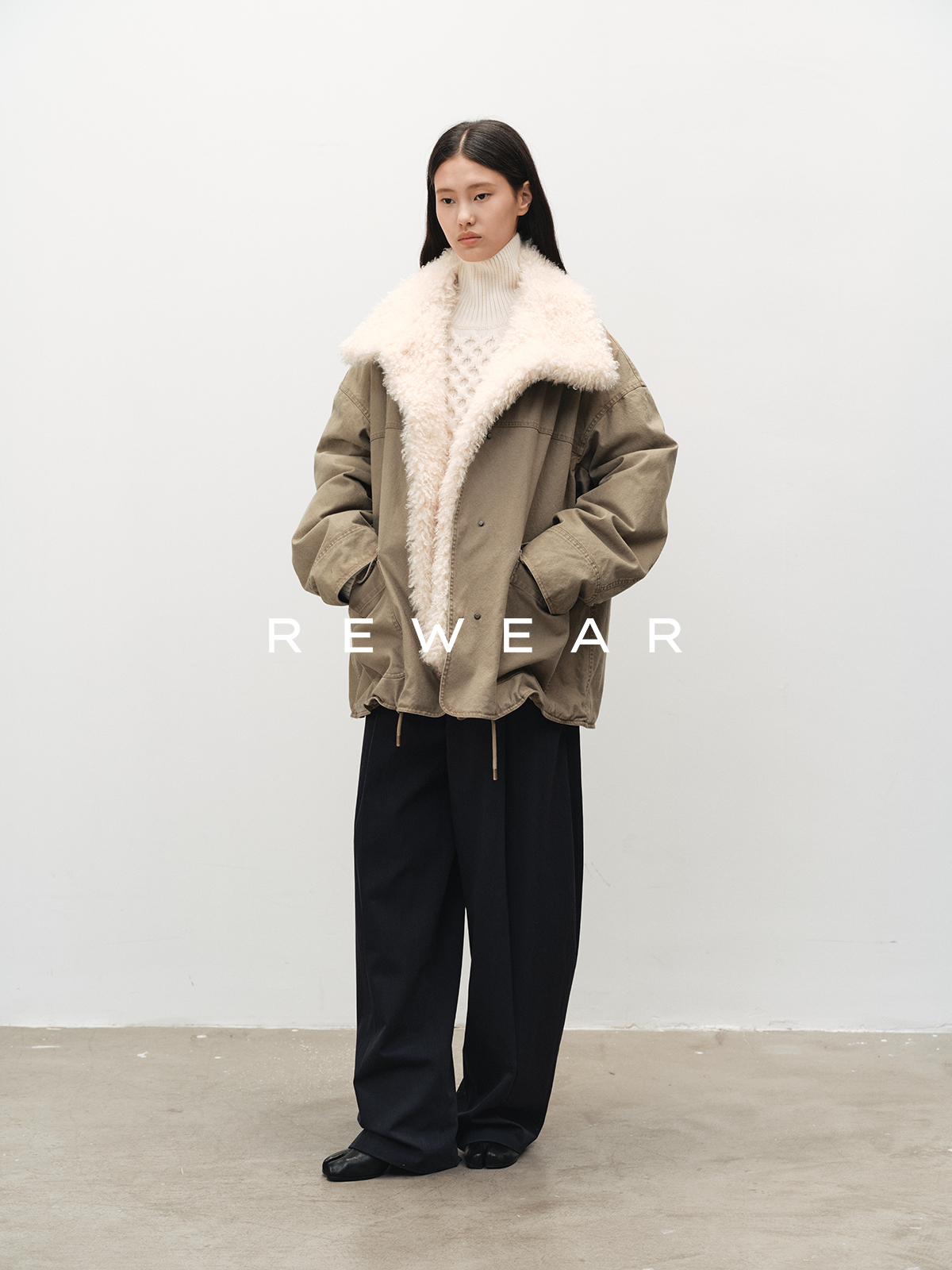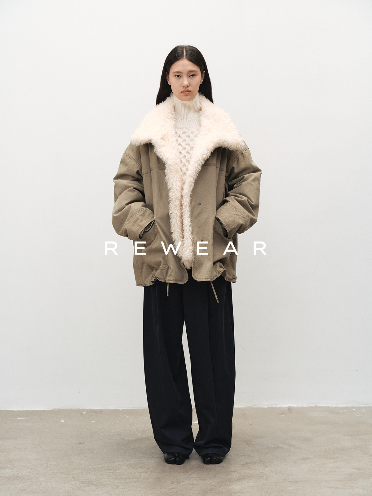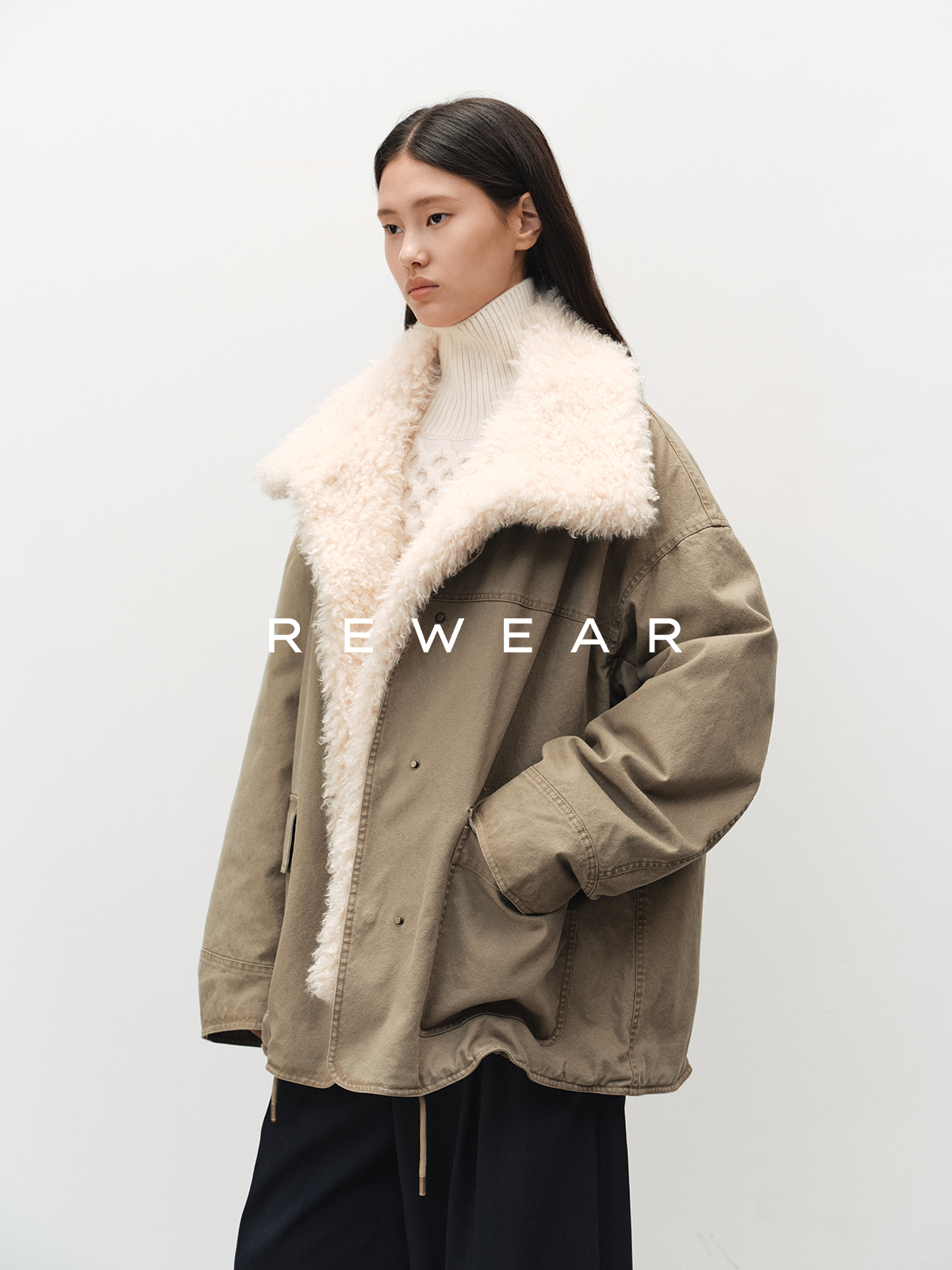 Rewear/Heavy-Duty Enzyme-Washed Cotton Pearl-Sail Wash Faded Detachable Faux Shearling Collar Workwear Parka Cotton Jacket 11355