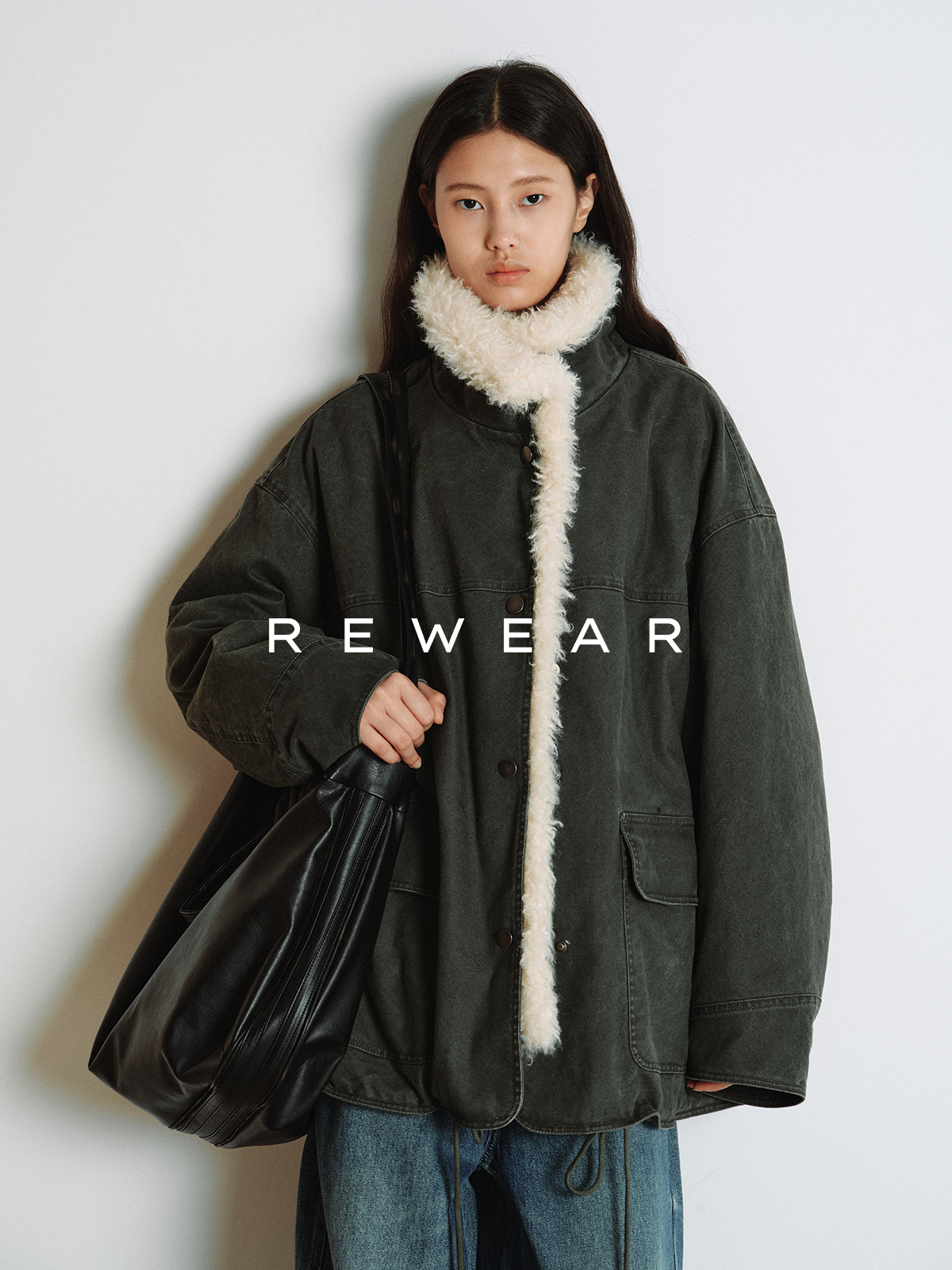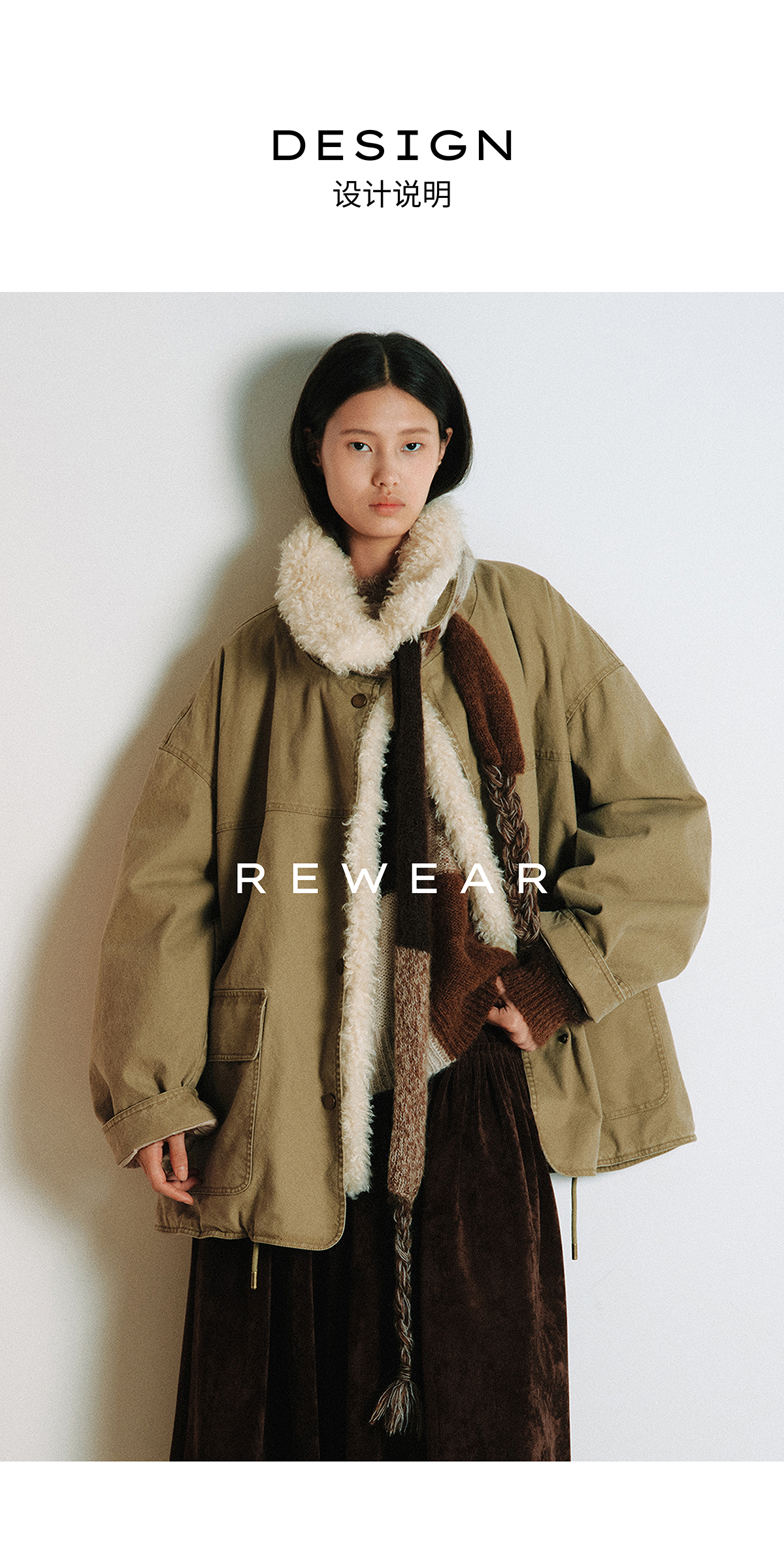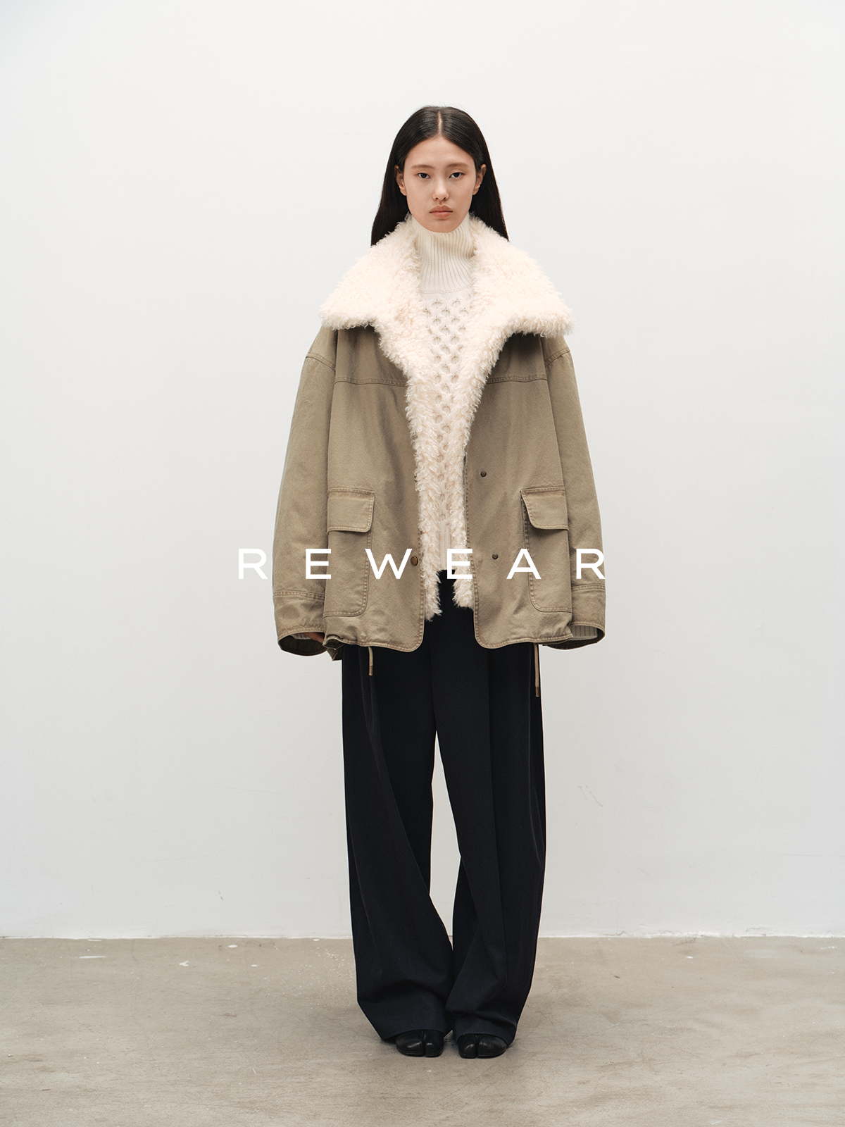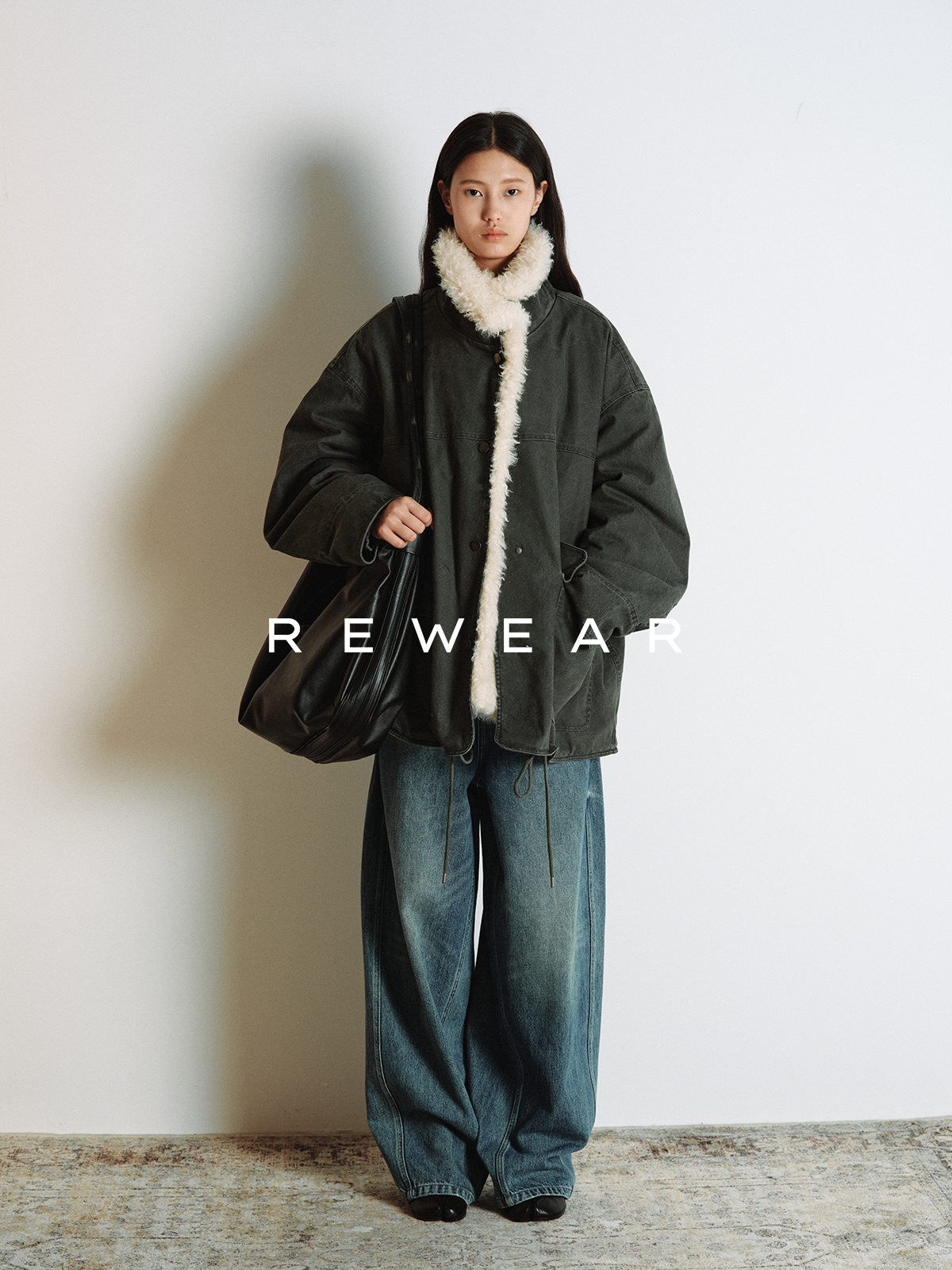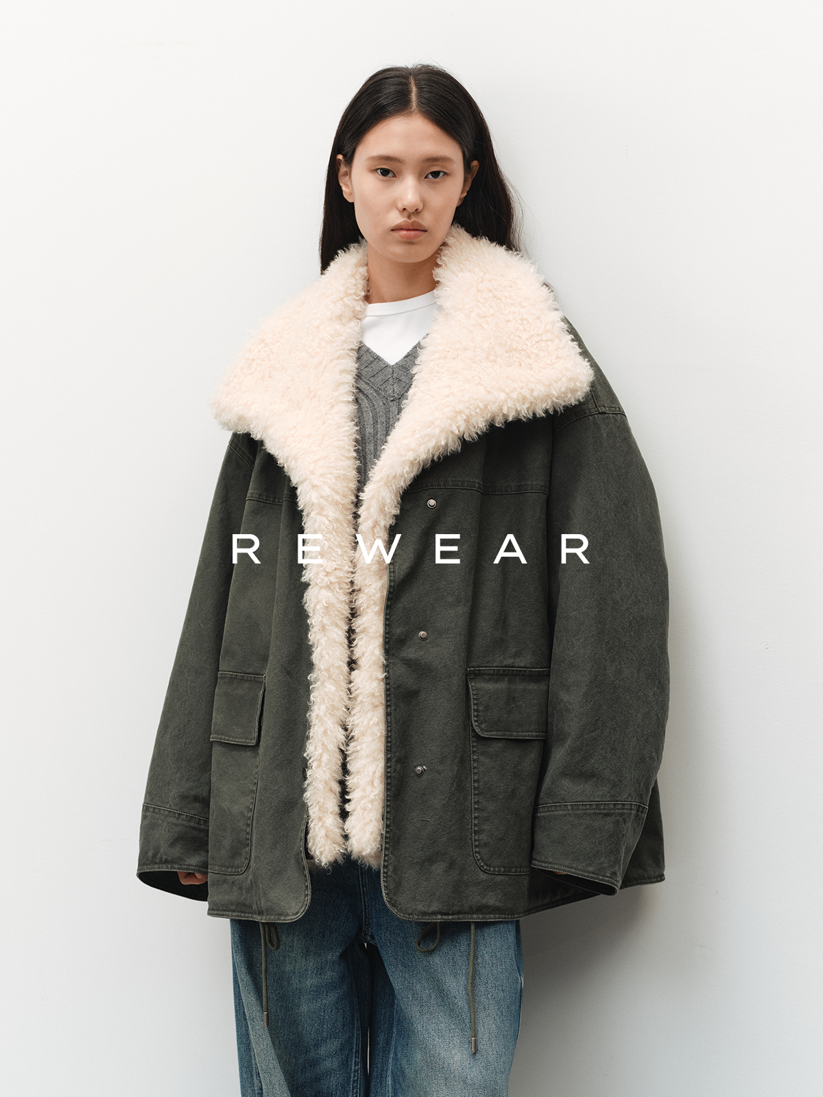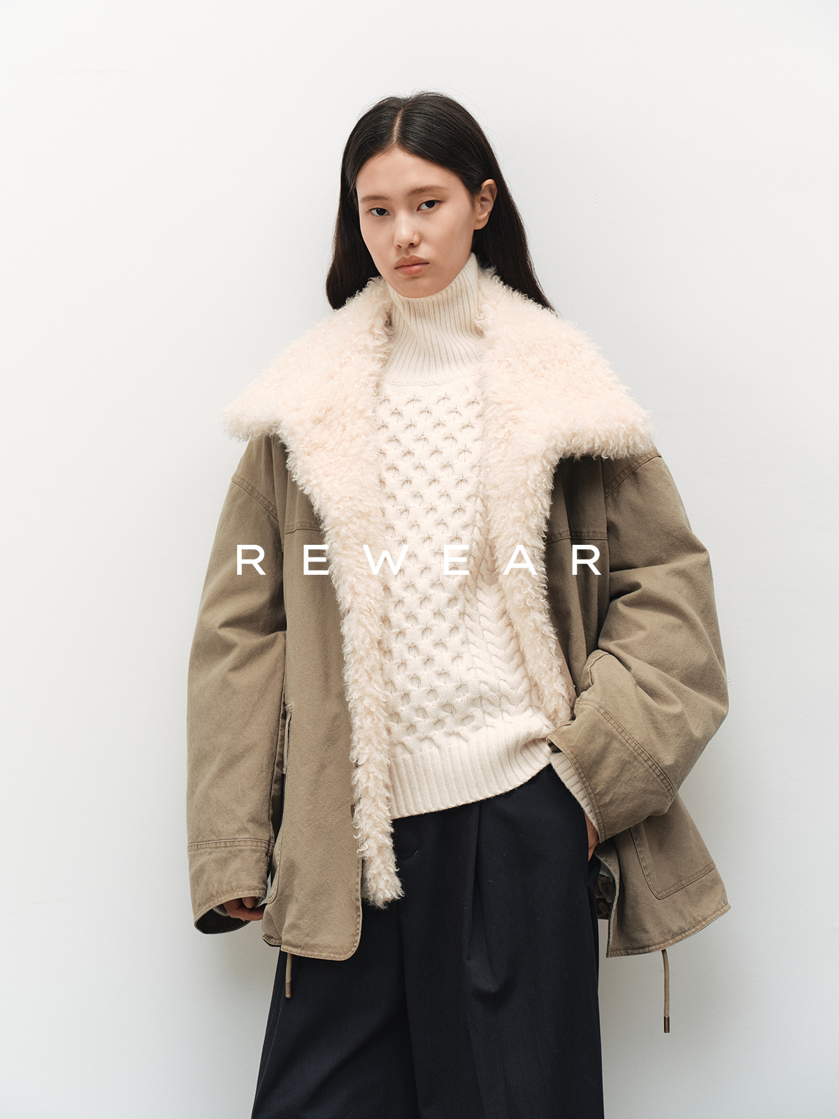 Rewear/Heavy-Duty Enzyme-Washed Cotton Pearl-Sail Wash Faded Detachable Faux Shearling Collar Workwear Parka Cotton Jacket 11355