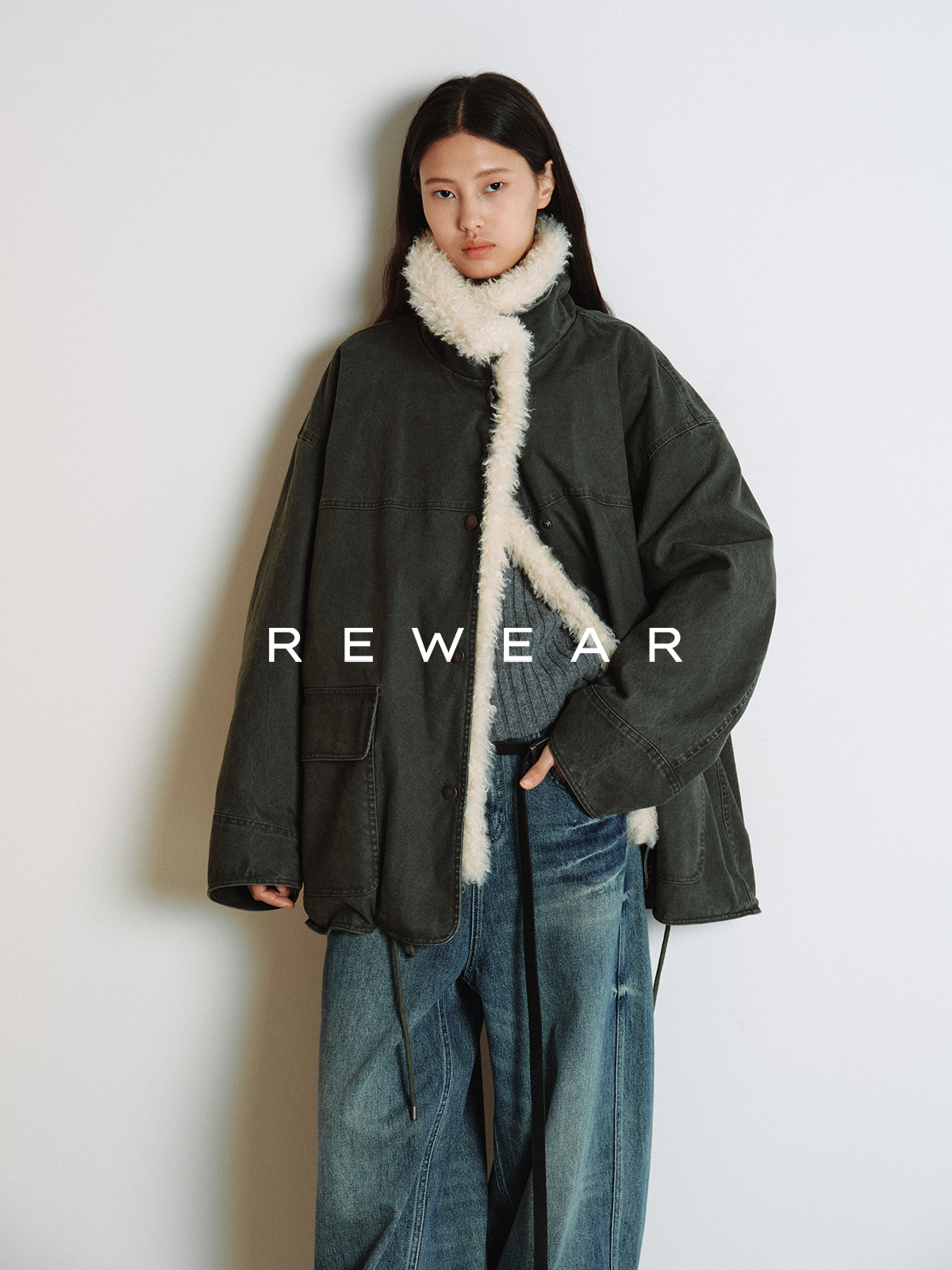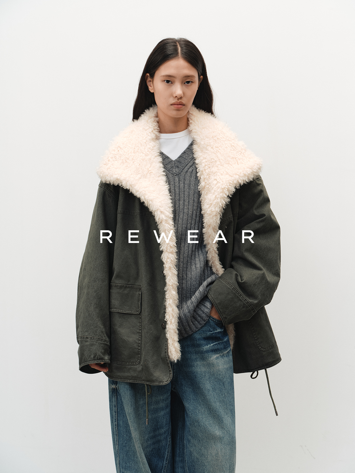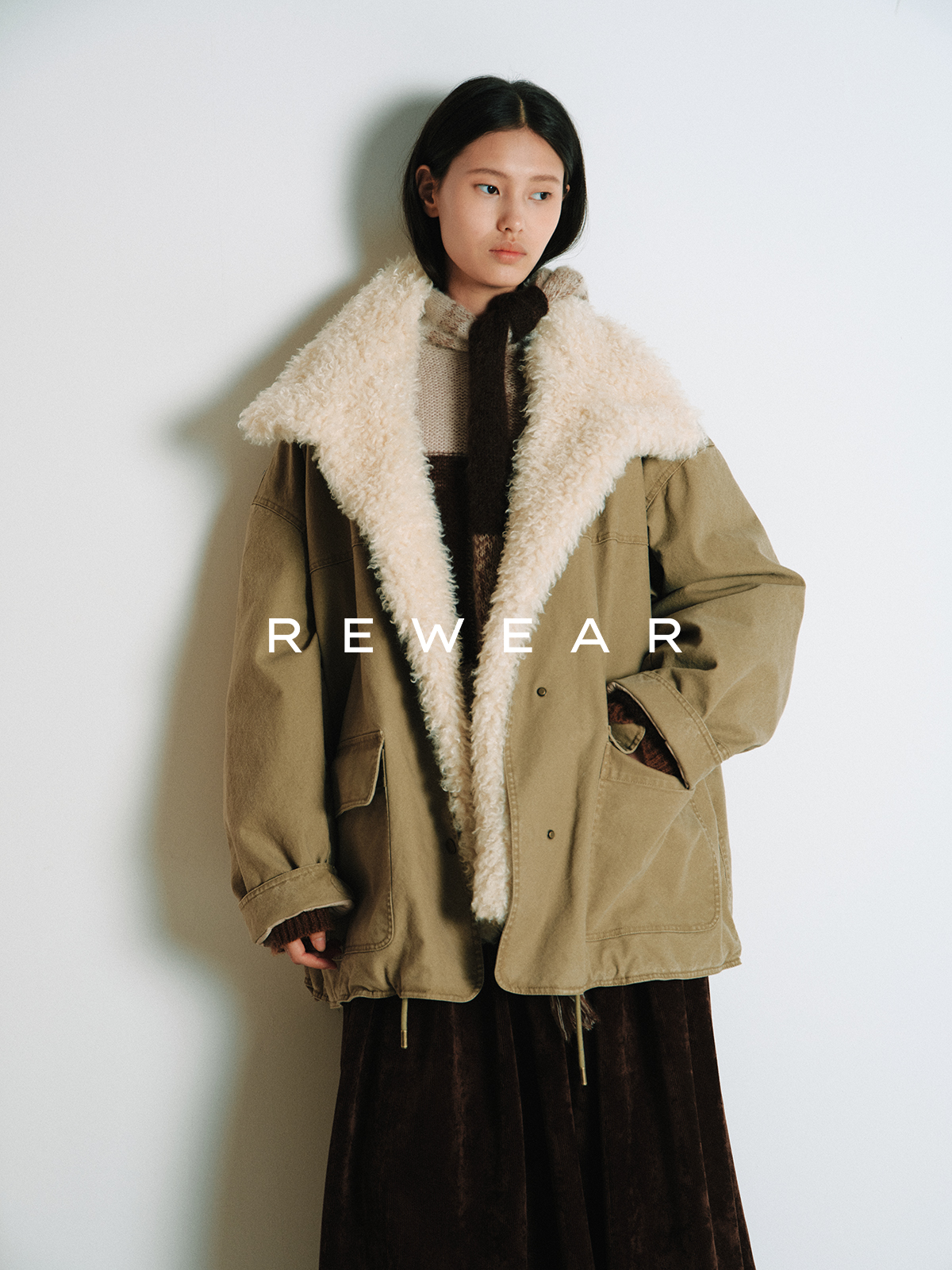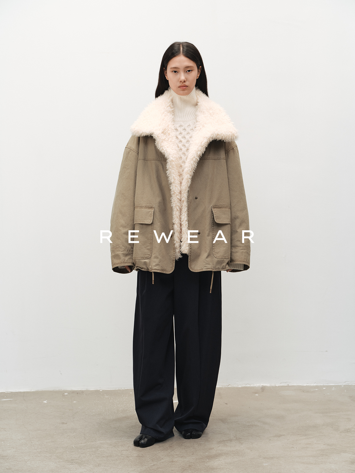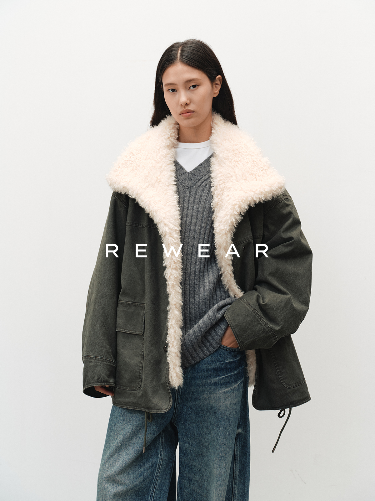 Rewear/Heavy-Duty Enzyme-Washed Cotton Pearl-Sail Wash Faded Detachable Faux Shearling Collar Workwear Parka Cotton Jacket 11355