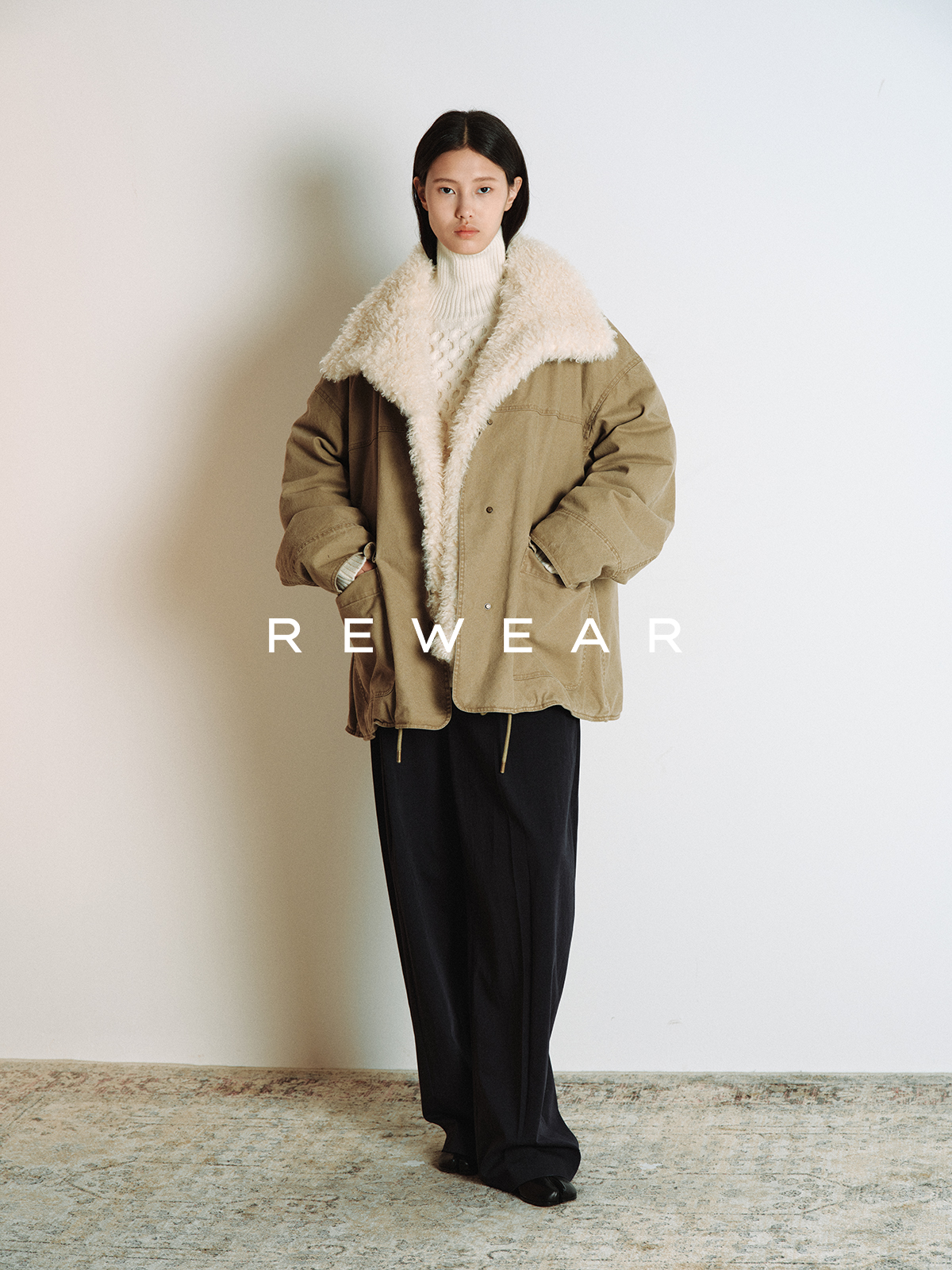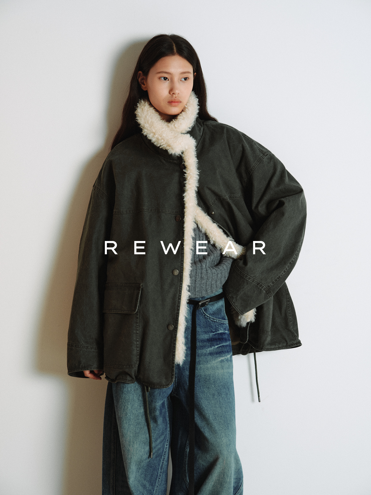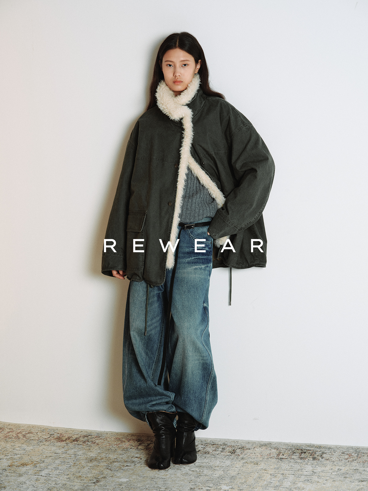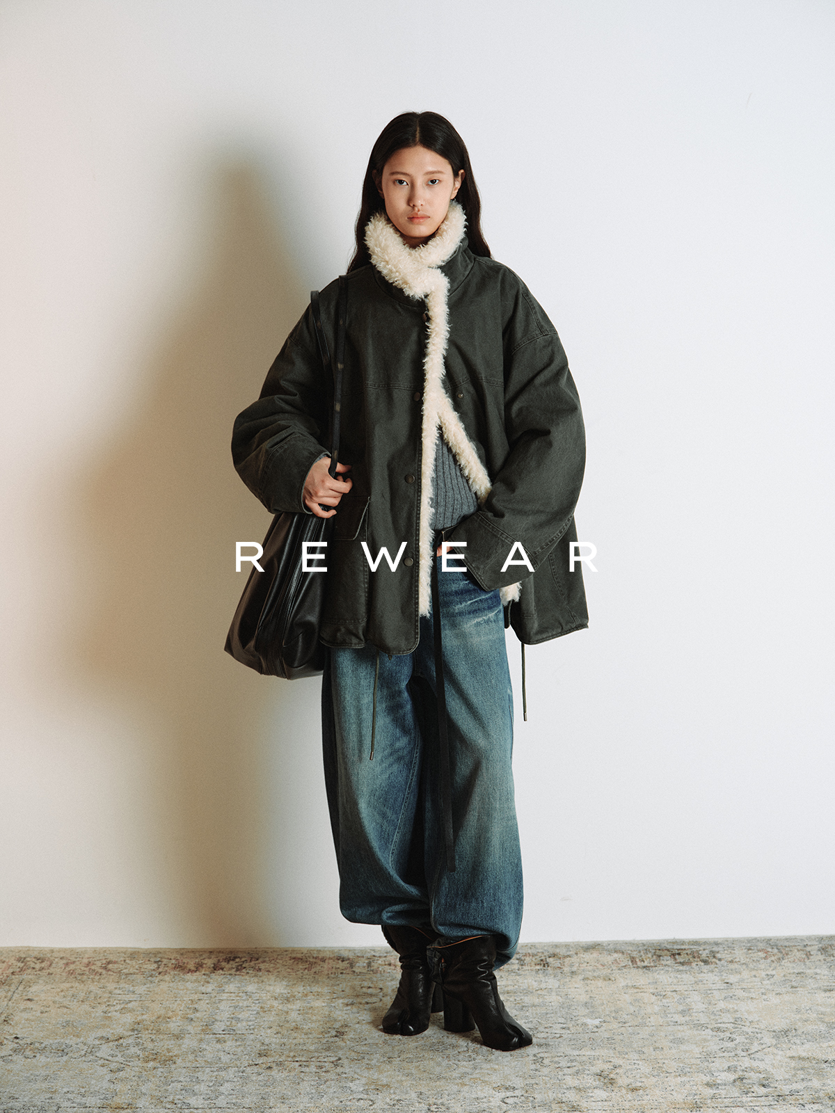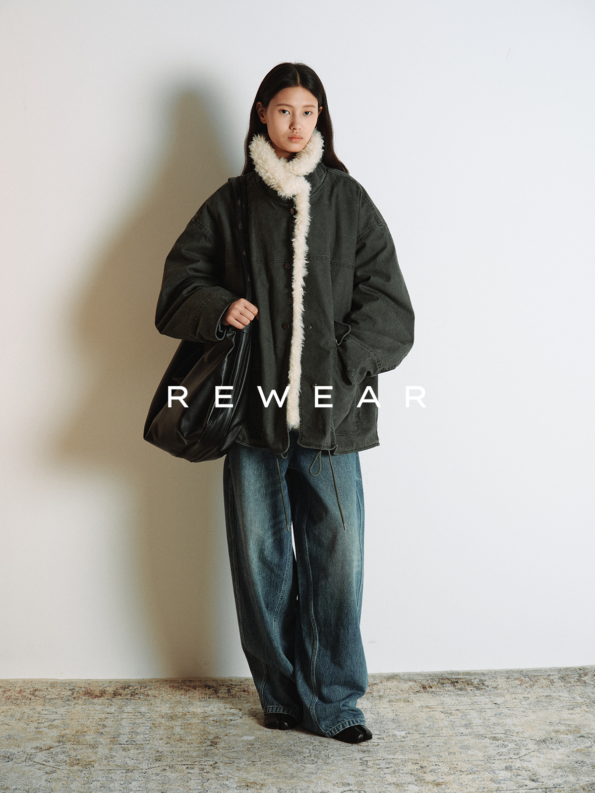 Rewear/Heavy-Duty Enzyme-Washed Cotton Pearl-Sail Wash Faded Detachable Faux Shearling Collar Workwear Parka Cotton Jacket 11355