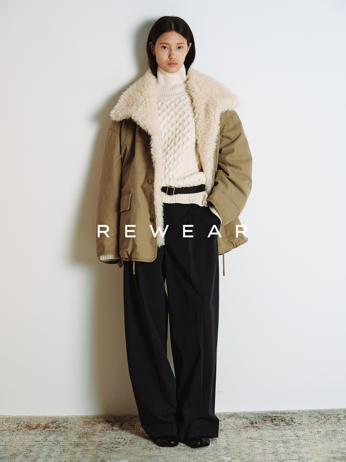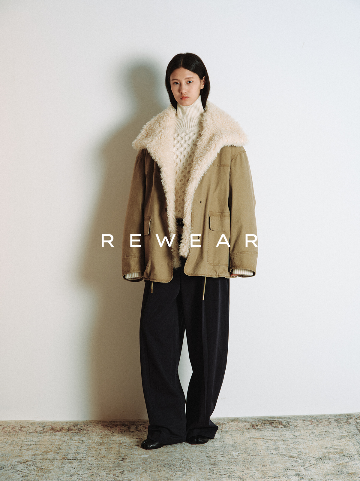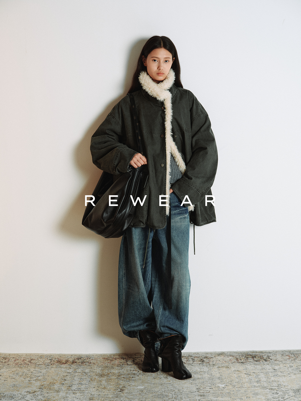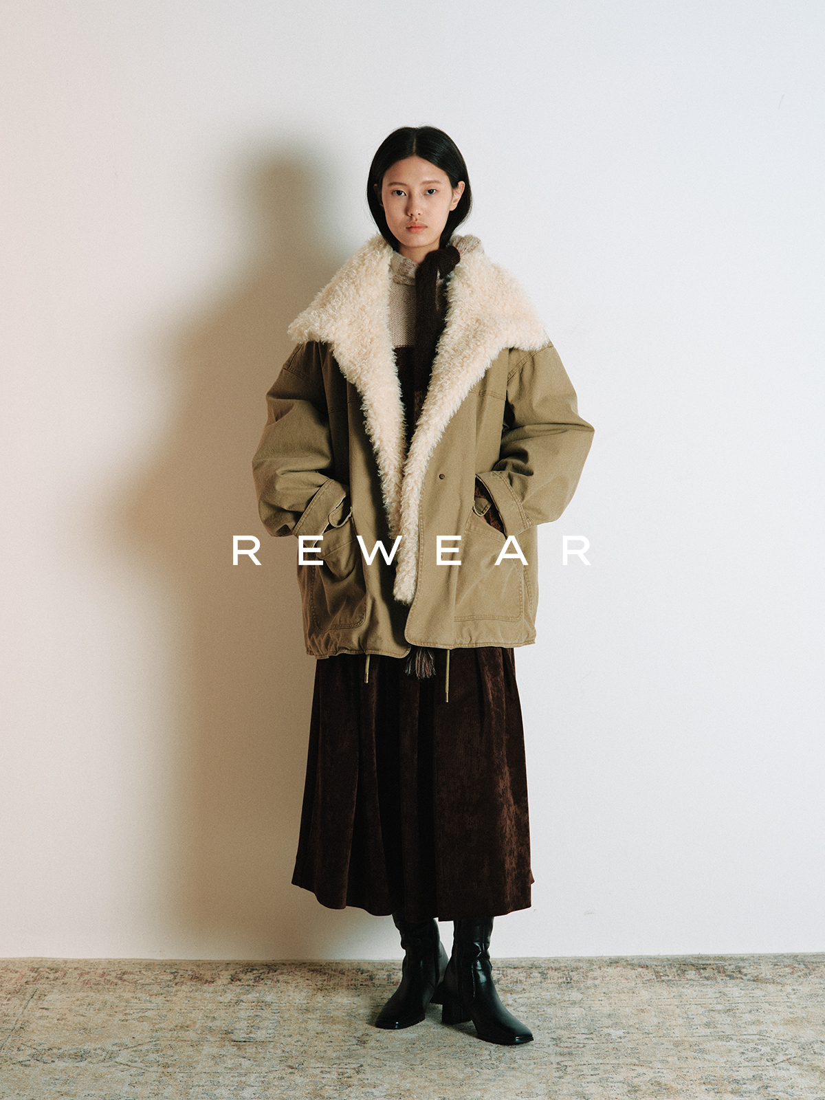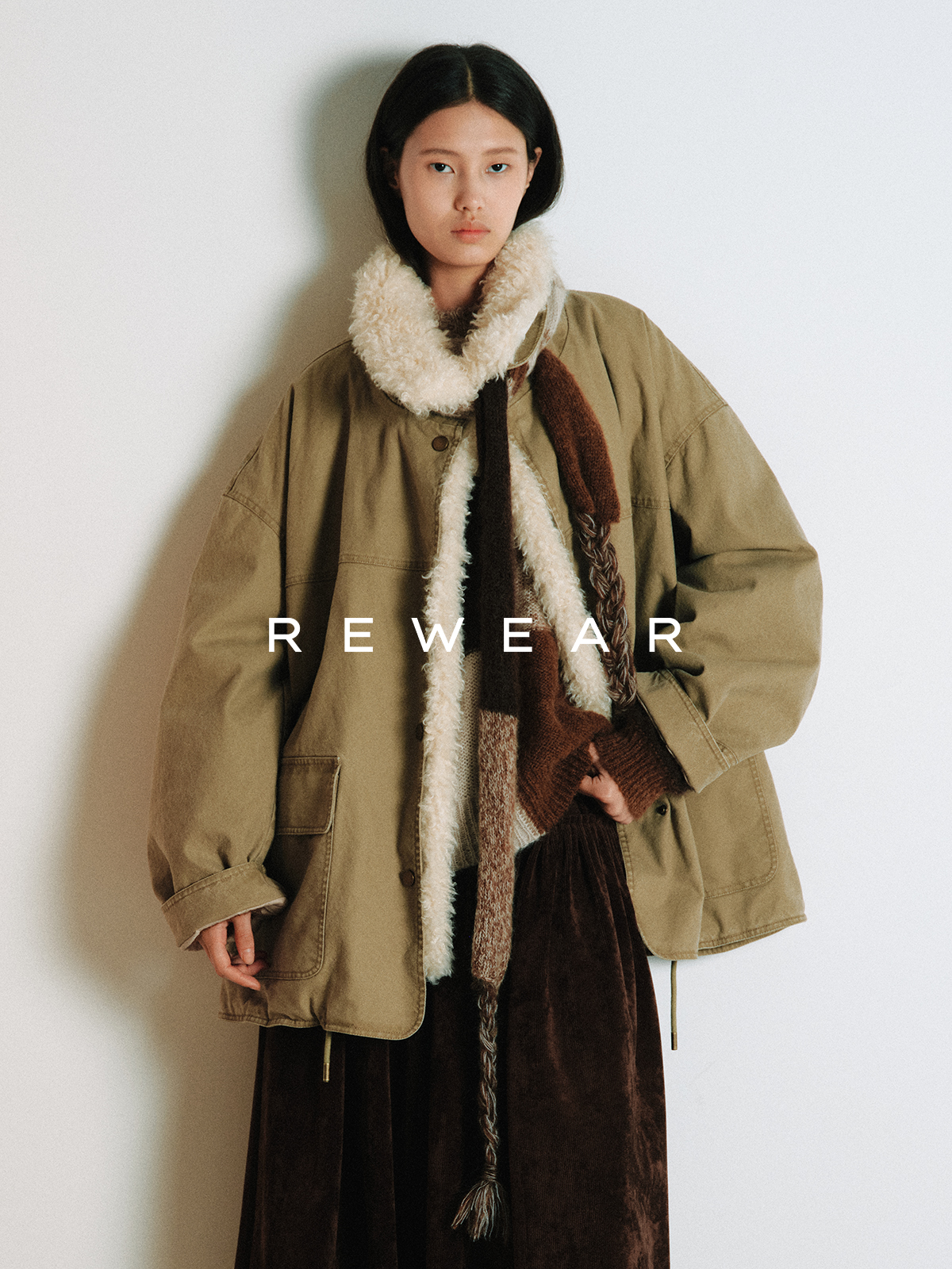 Rewear/Heavy-Duty Enzyme-Washed Cotton Pearl-Sail Wash Faded Detachable Faux Shearling Collar Workwear Parka Cotton Jacket 11355