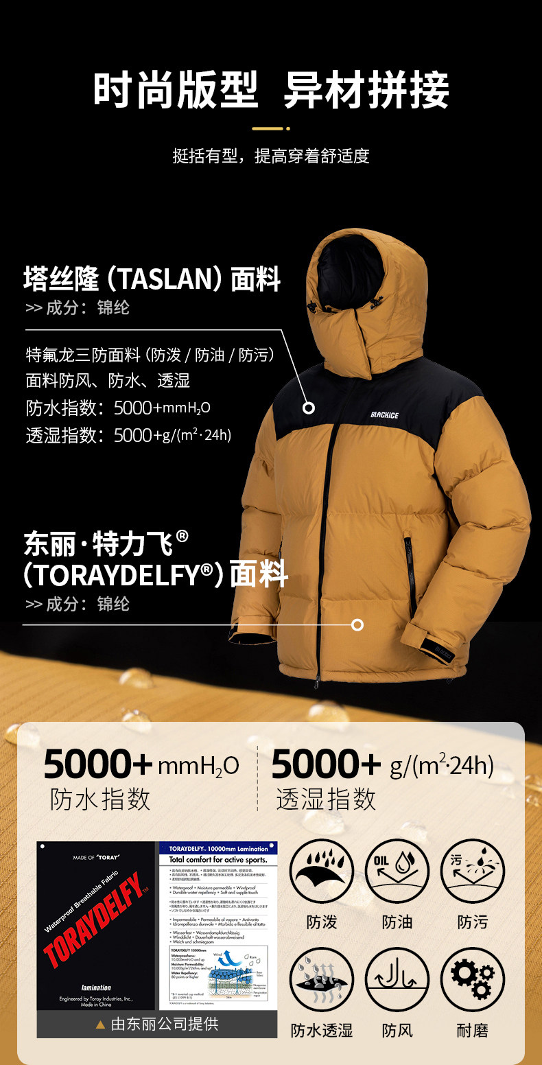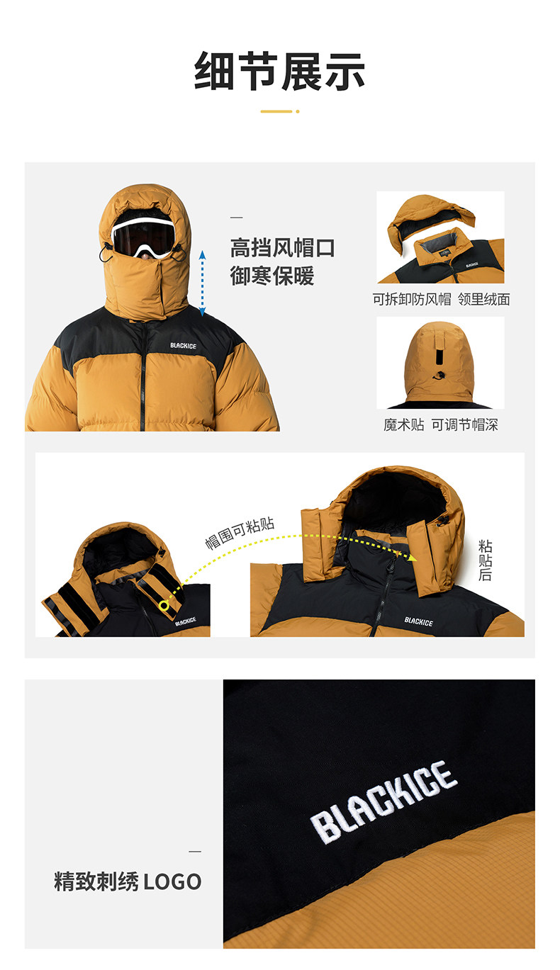 Black Ice Outdoor Windproof and Warm down Jacket, Unisex, Wear-Resistant, Thickened, 700 Fill Power Goose down 8536