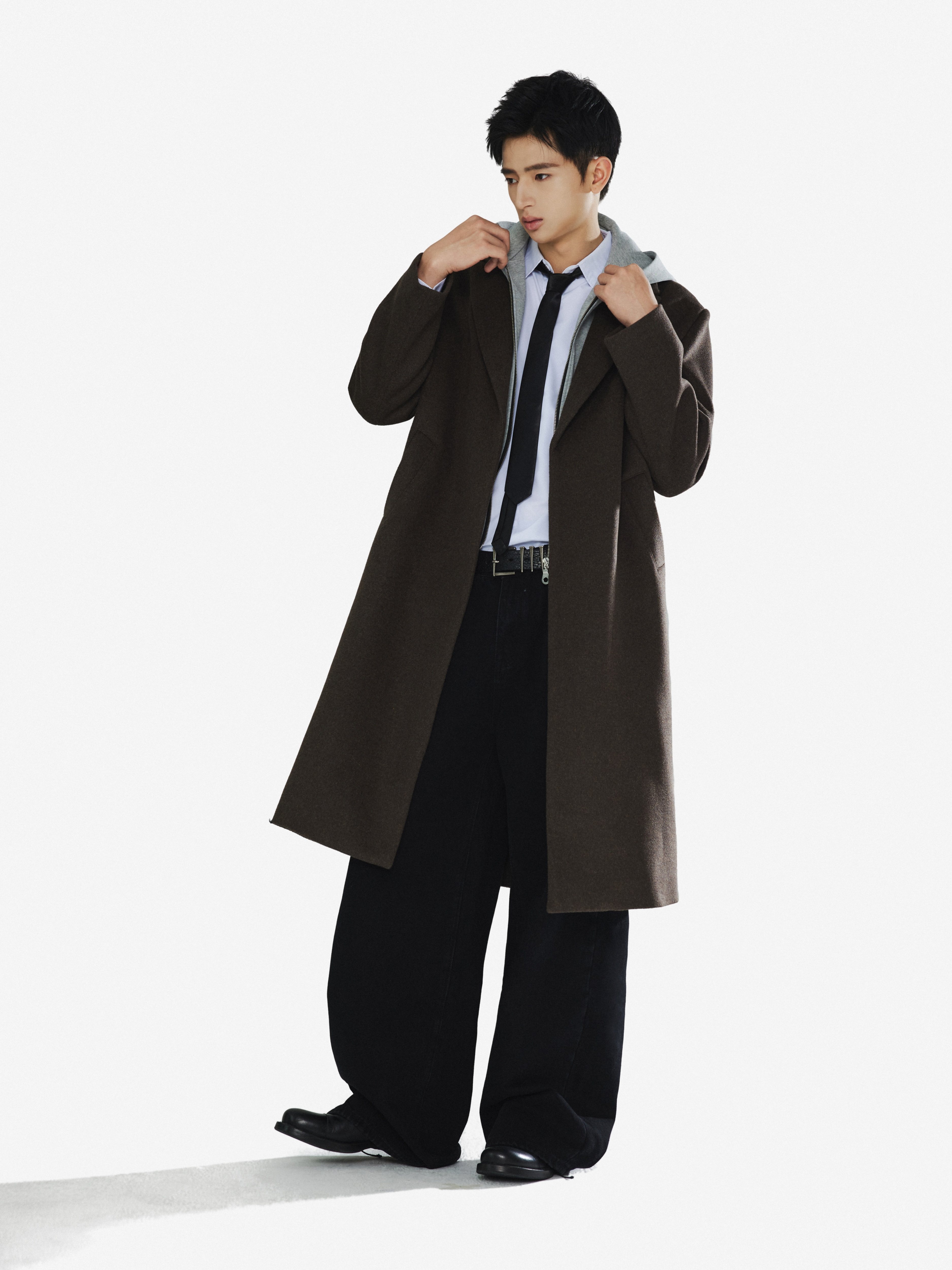 Dert Barn Style Wool Detachable Two-Piece Hooded Coat, Old Money Brown, Heavyweight and Warm