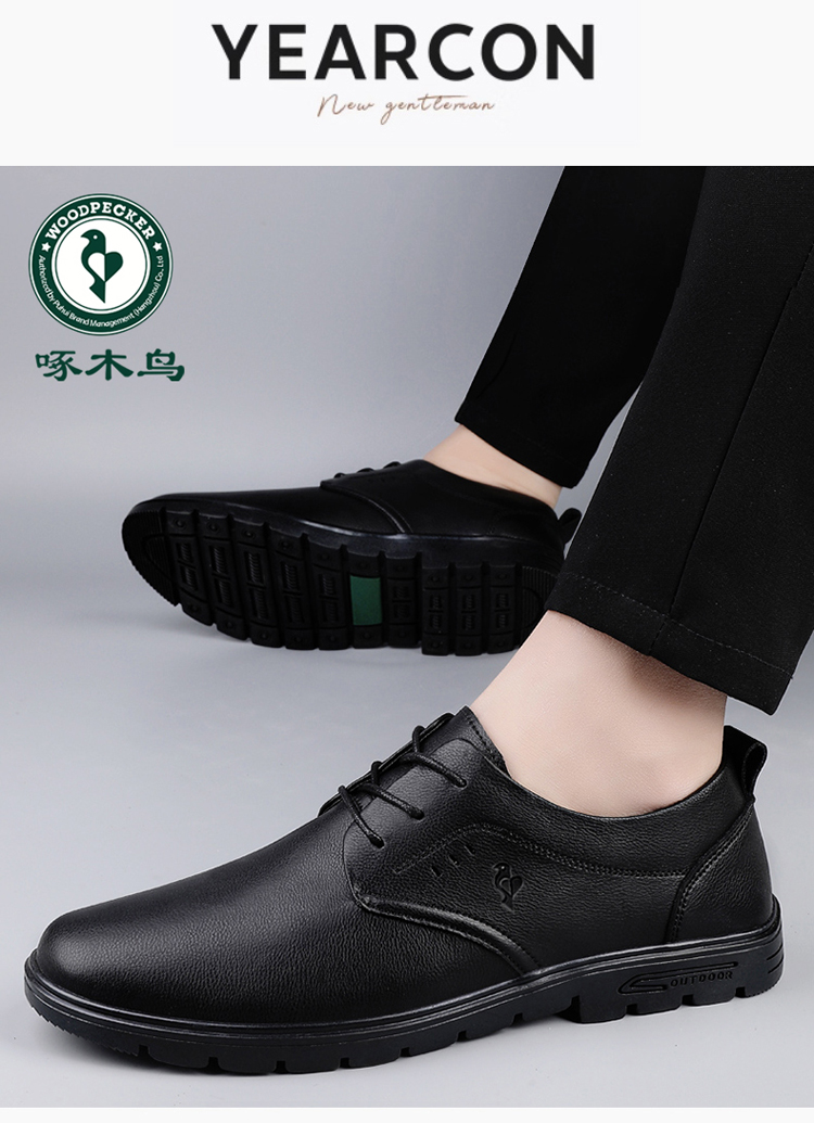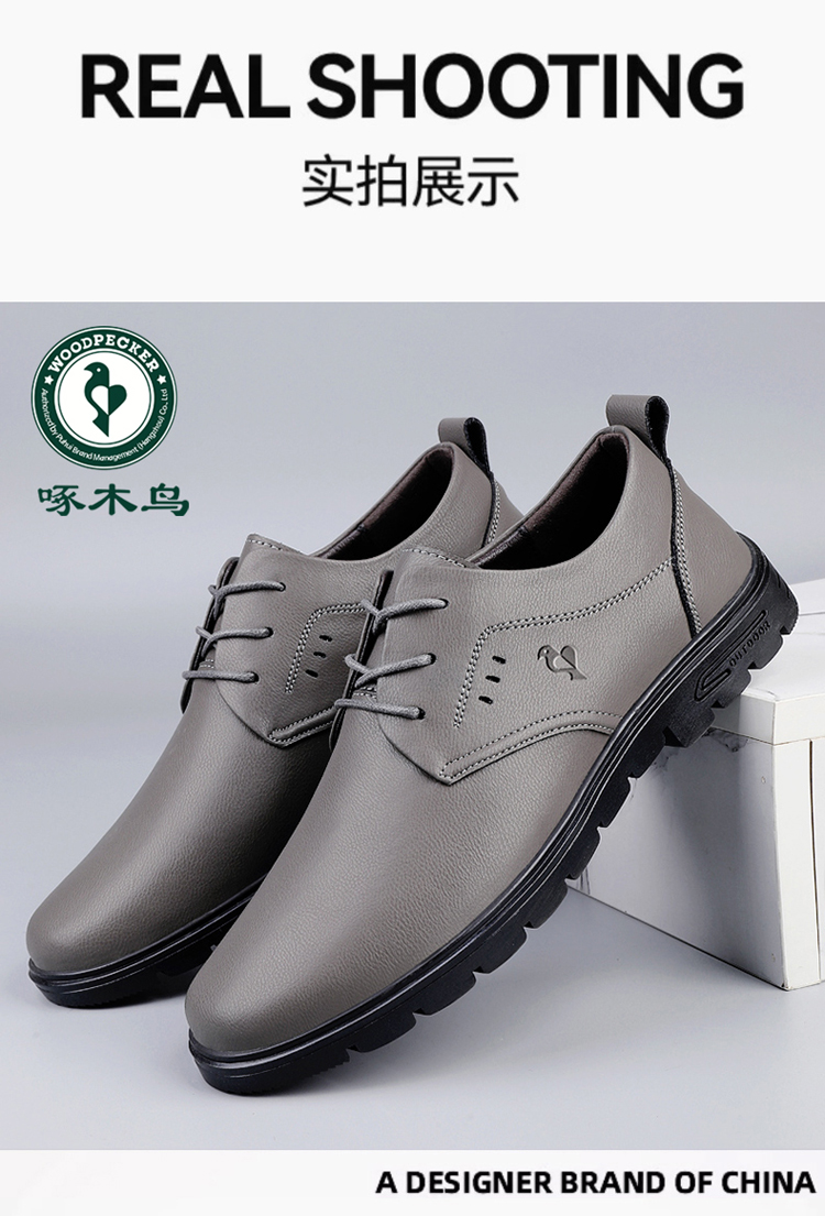 Woodpecker Genuine Men's Shoes, Autumn Breathable Men's Business Casual Leather Shoes, Genuine Leather Soft Sole Lace-Up Cowhide Shoes for Men