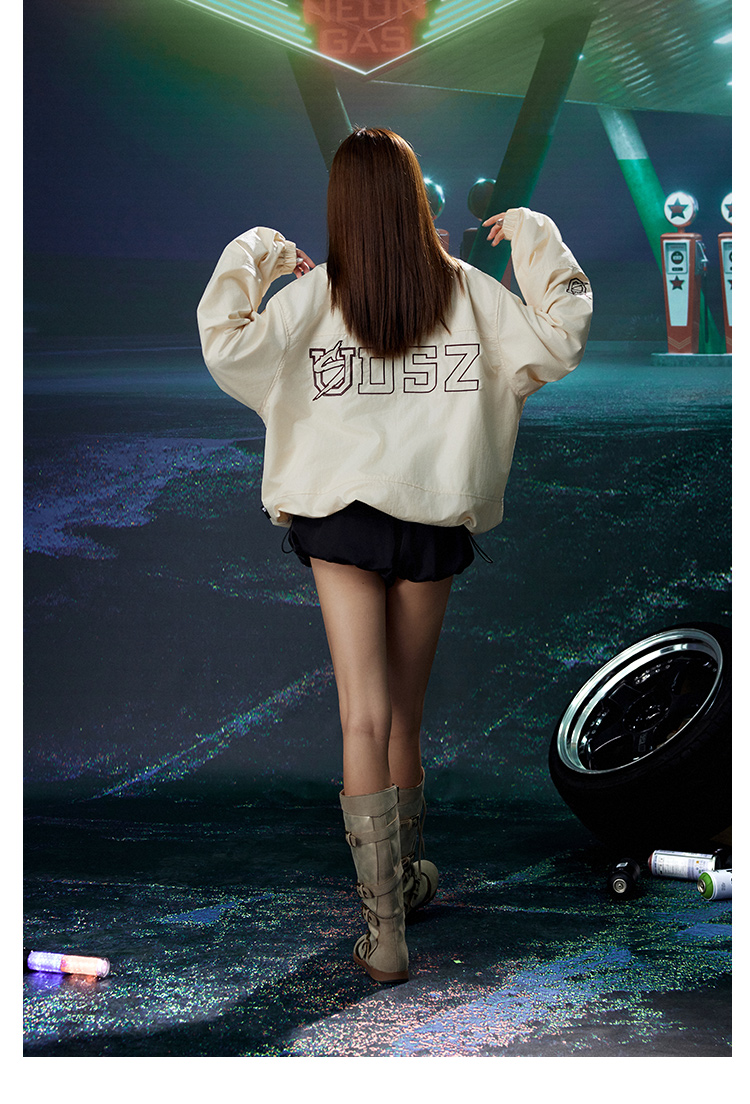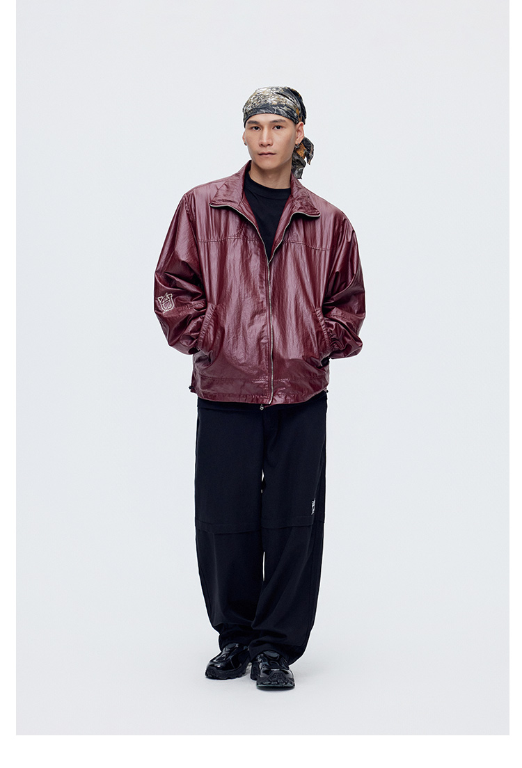 Us Federal Street Brand Stand-Up Collar Biker Leather Jacket Street Dance Hip-Hop Autumn and Winter Embroidered Cool Windproof Textured Pu Jacket