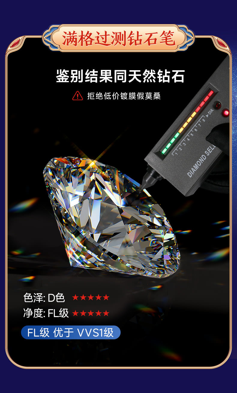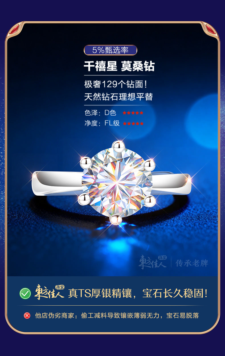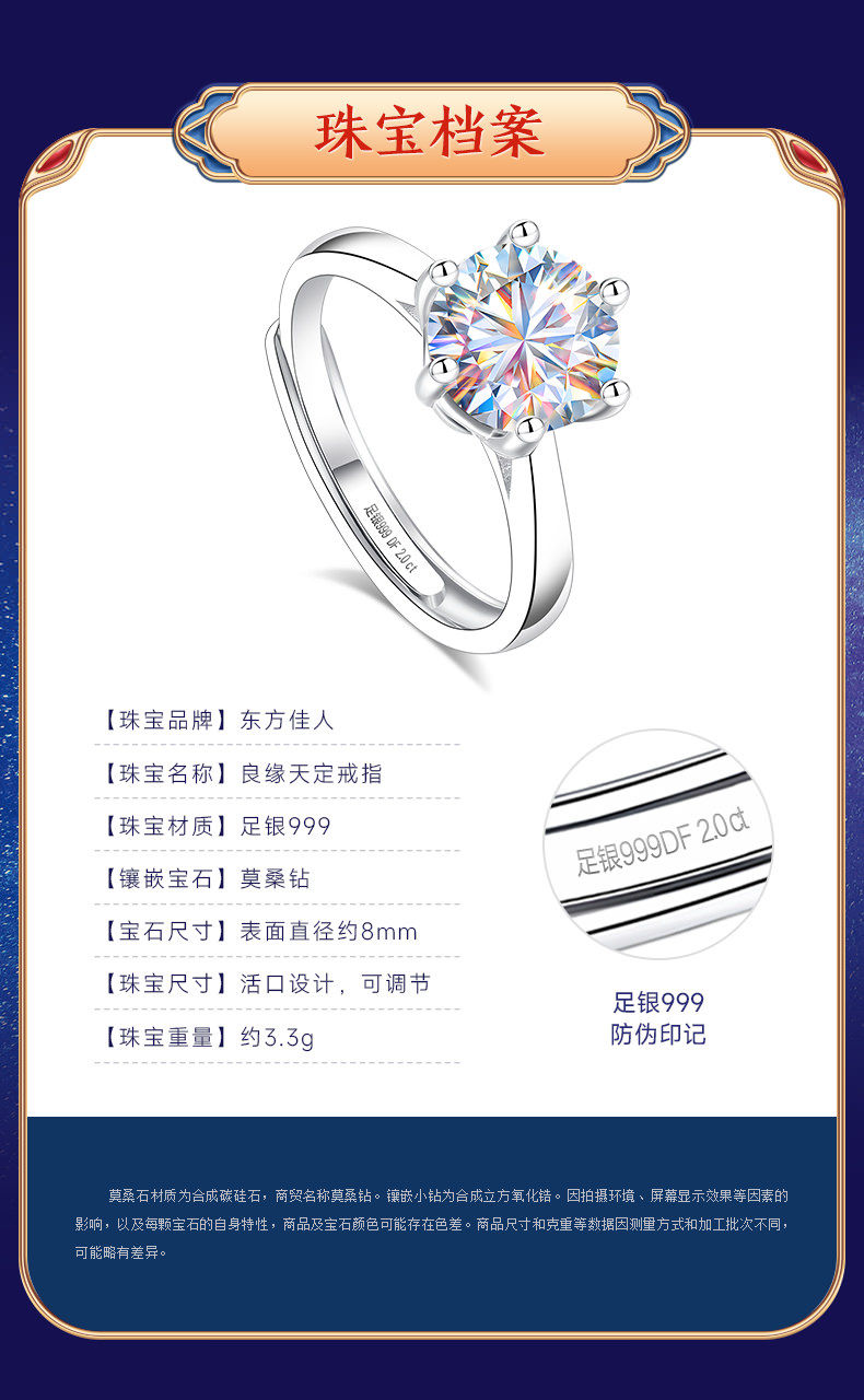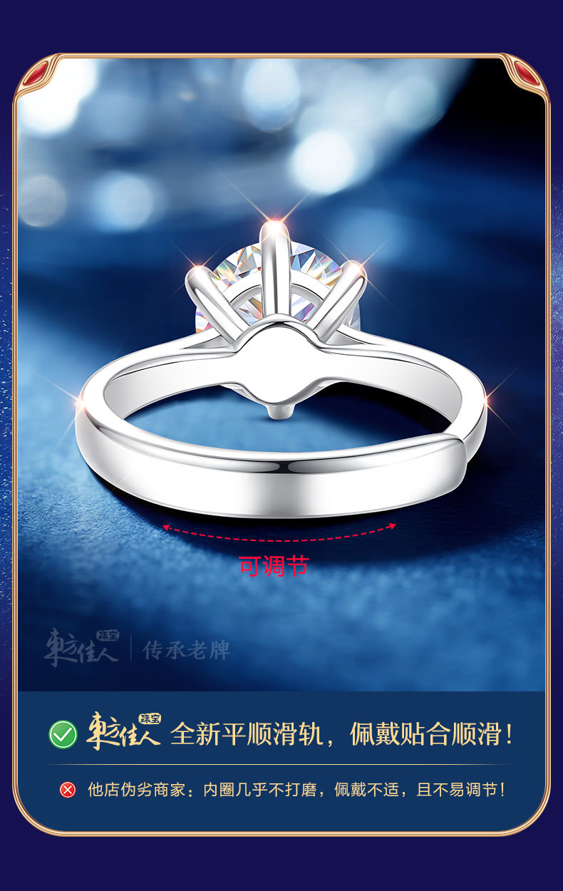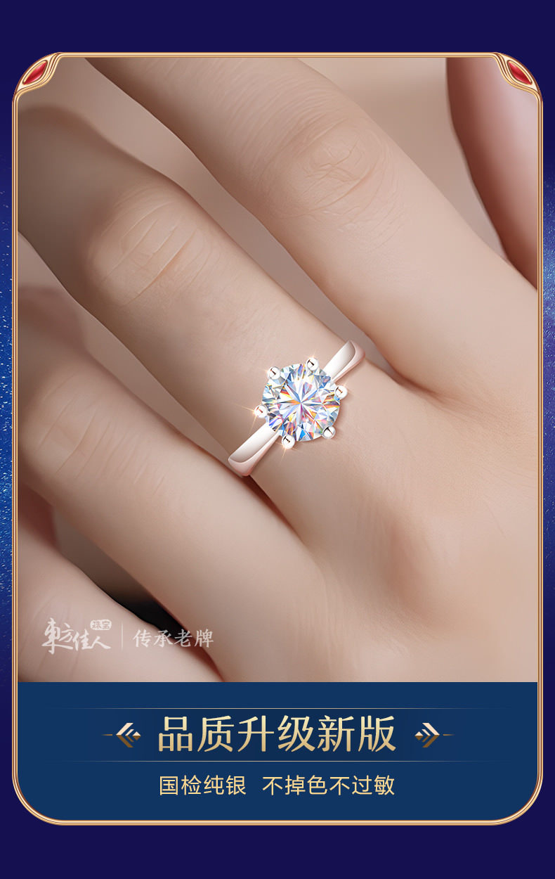 2 Carat Moissanite Diamond Ring, Silver 999 Pure Silver Six-Claw Diamond Ring, Women's Couple's Ring, Wedding Ceremony Ring for Women