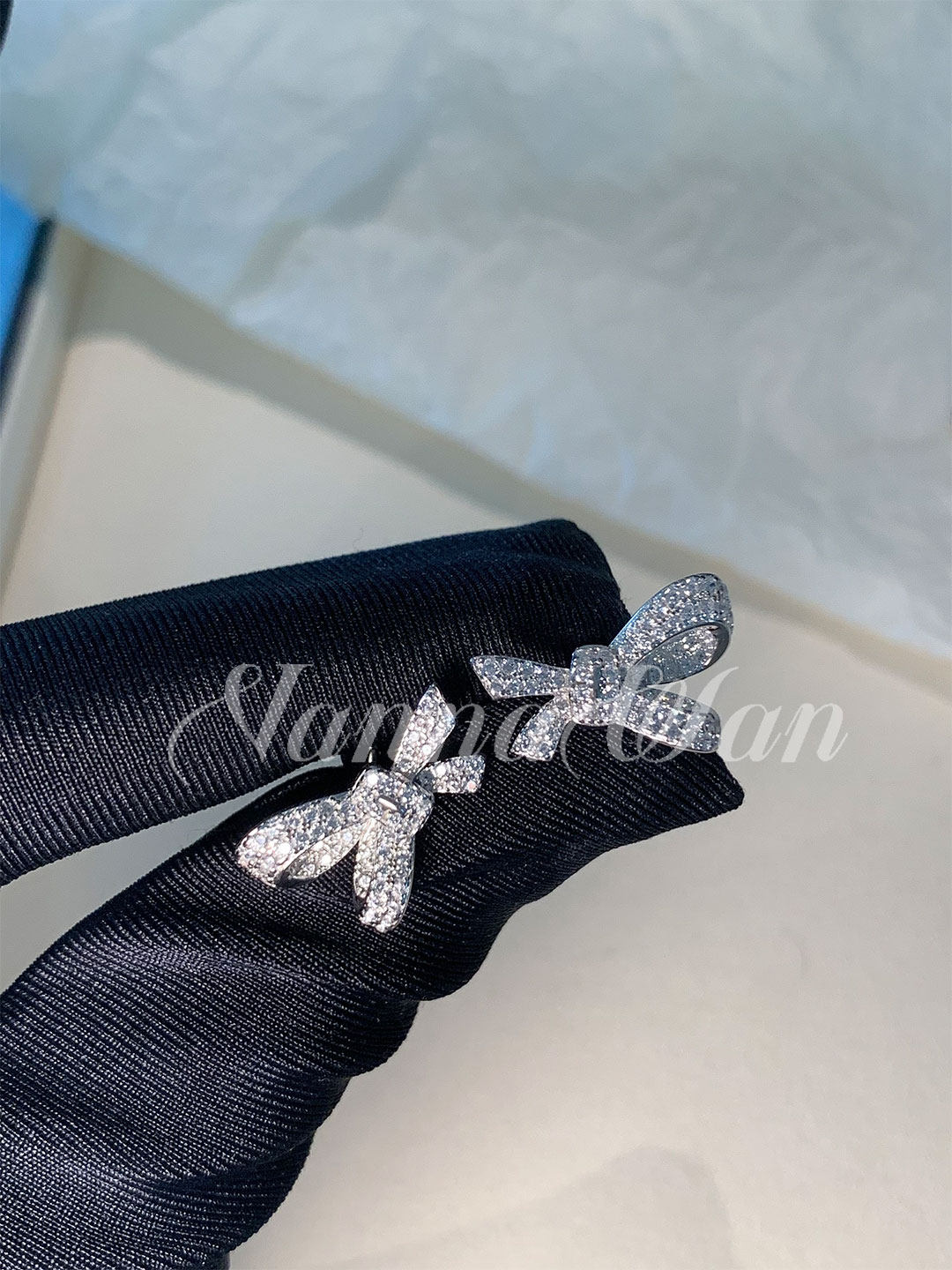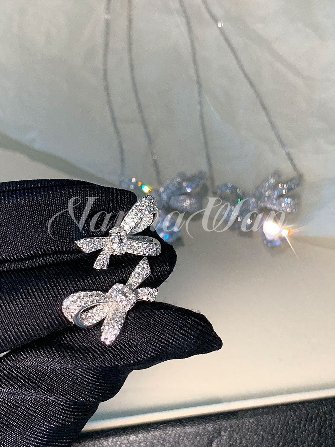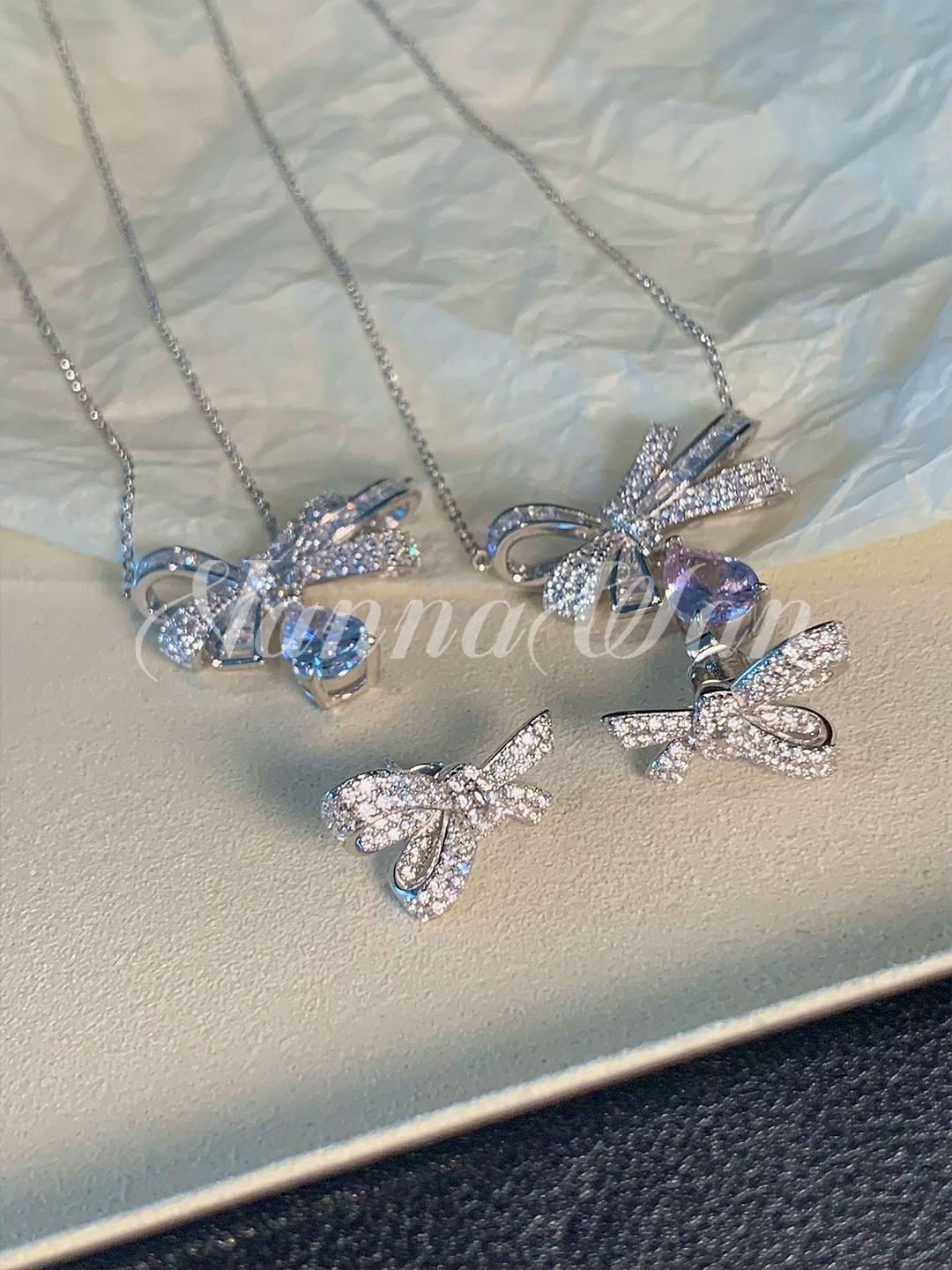 Vanwan Pure Silver Jewelry Grade! 【Bow】 Water Drop Bow Necklace 925 Sterling Silver Platinum-Plated Butterfly Earrings