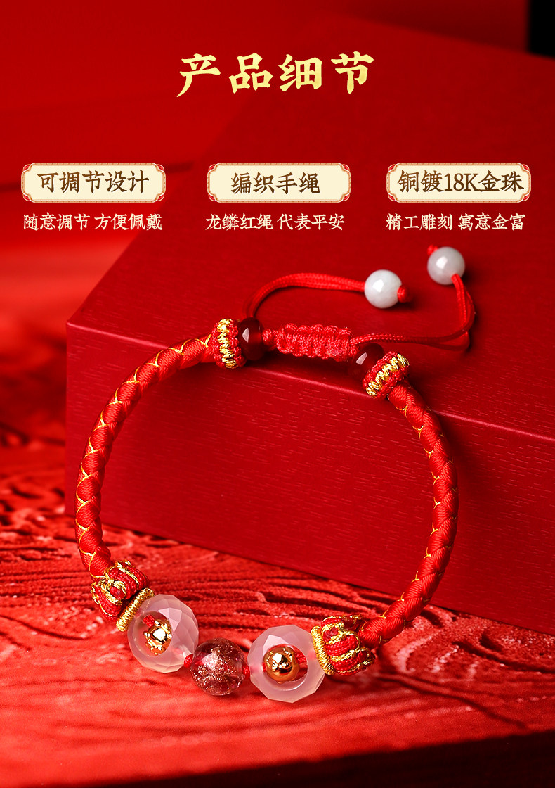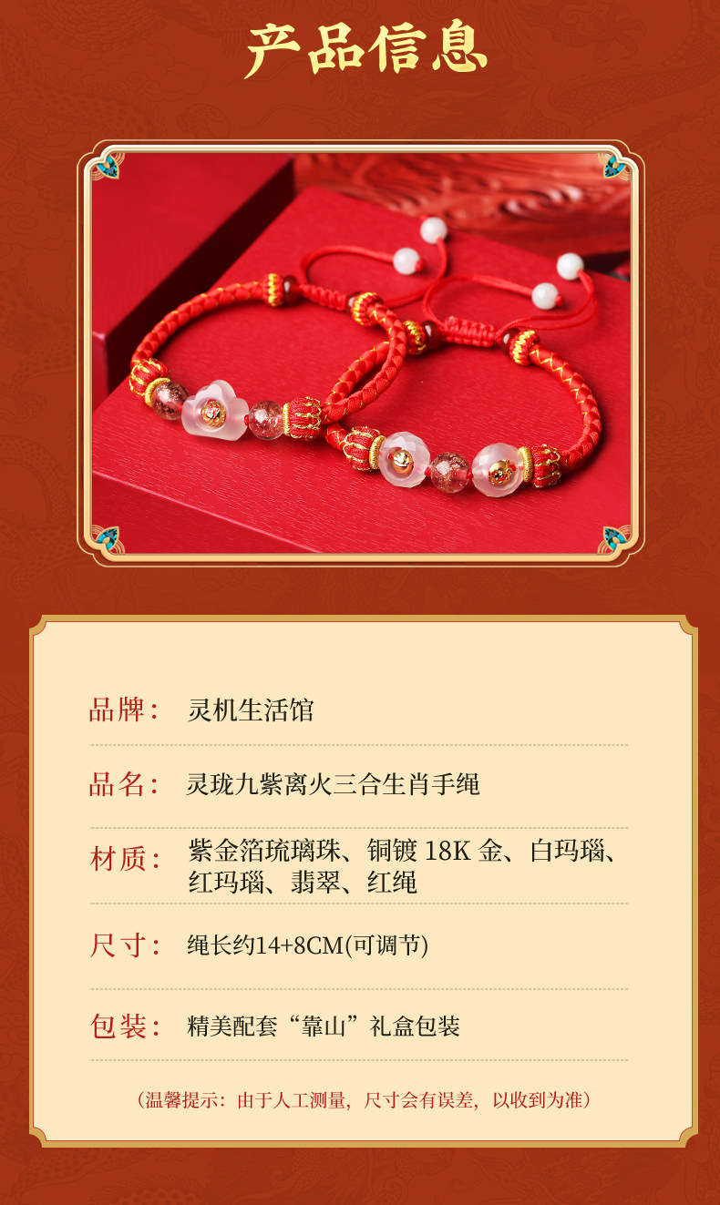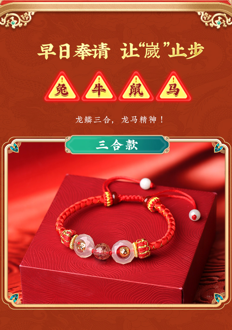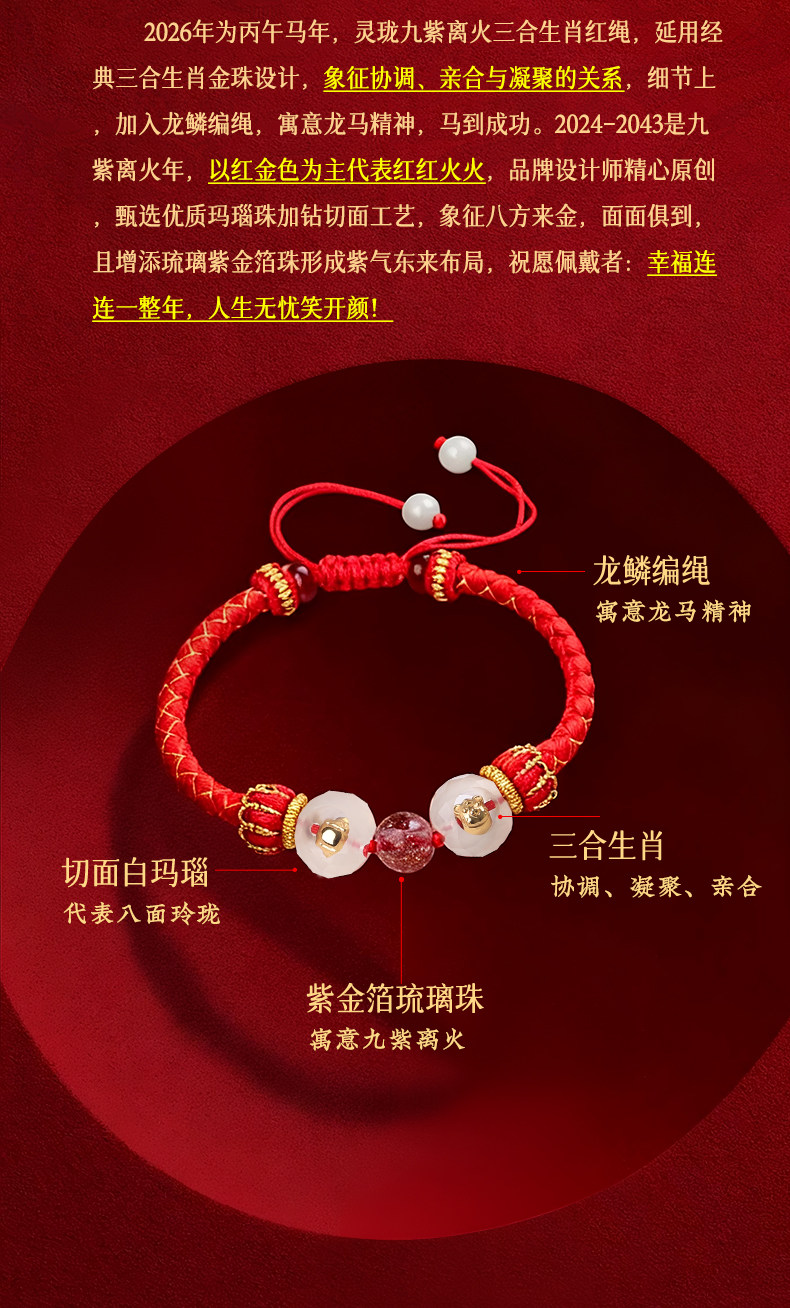 Lingji Mai Lingling 2026 Lucky Three Harmonies Zodiac Red String Bracelet for the Year of the Horse, Zodiac Year Bracelet for Ox, Rabbit, Rat, Tai Sui Bracelet