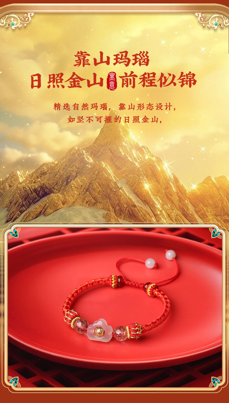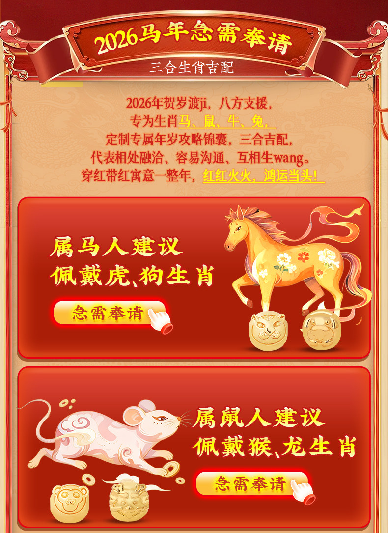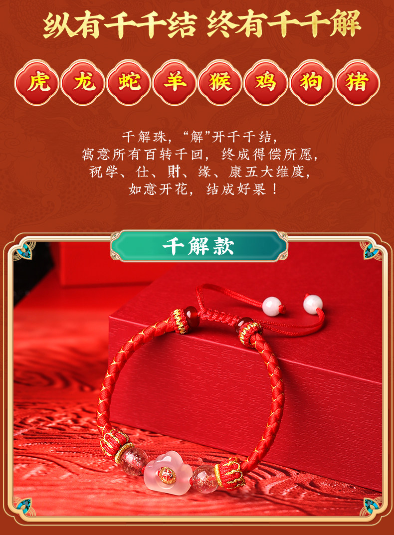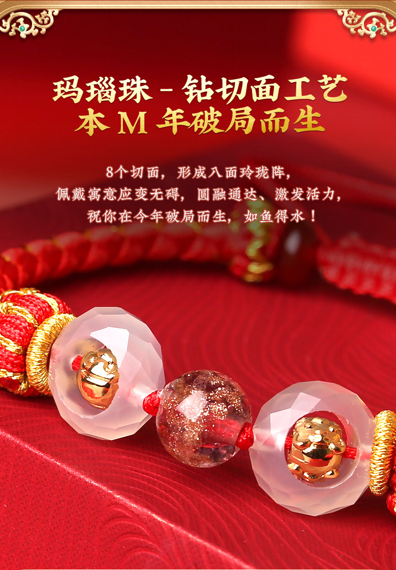 Lingji Mai Lingling 2026 Lucky Three Harmonies Zodiac Red String Bracelet for the Year of the Horse, Zodiac Year Bracelet for Ox, Rabbit, Rat, Tai Sui Bracelet